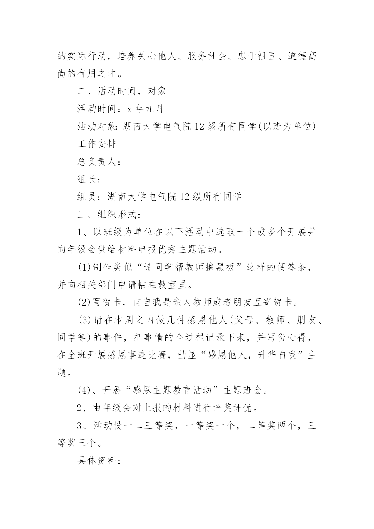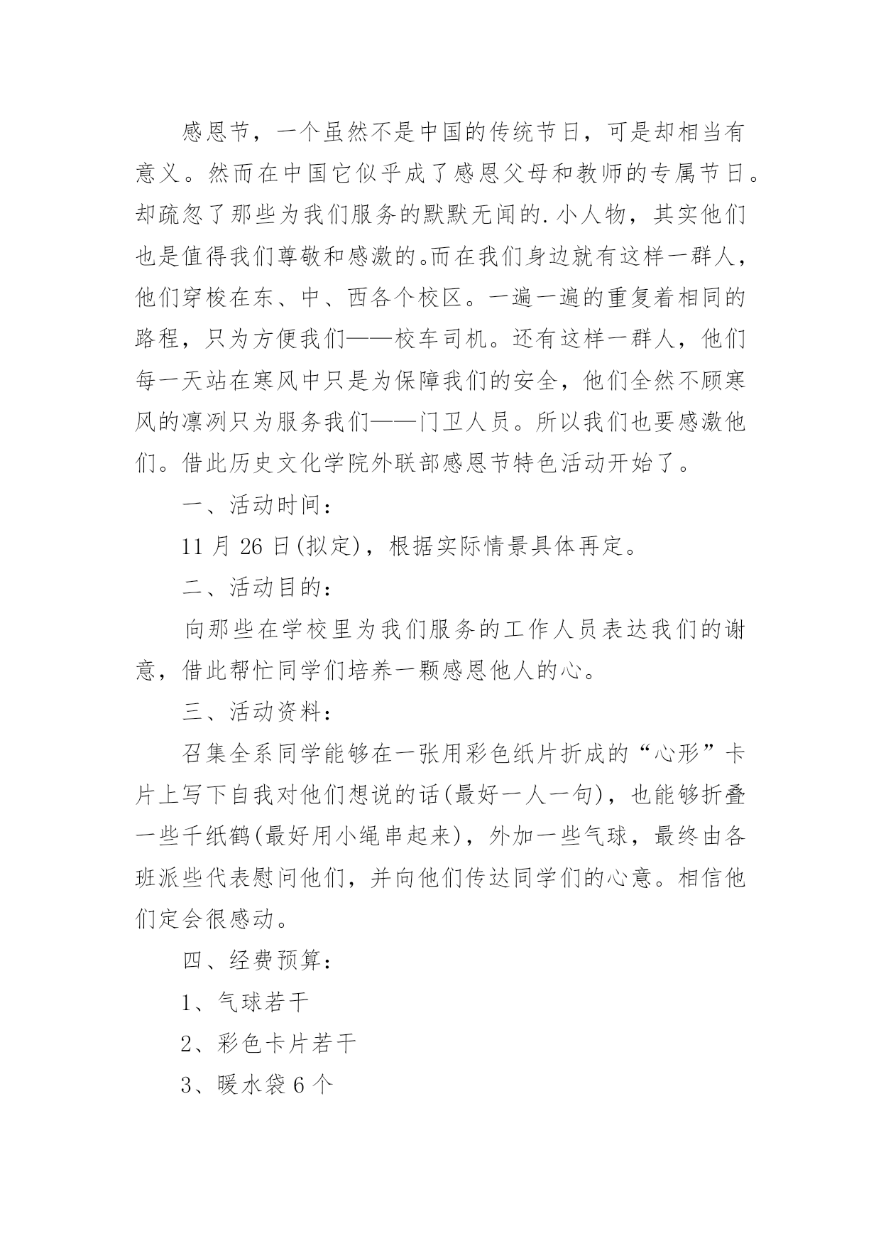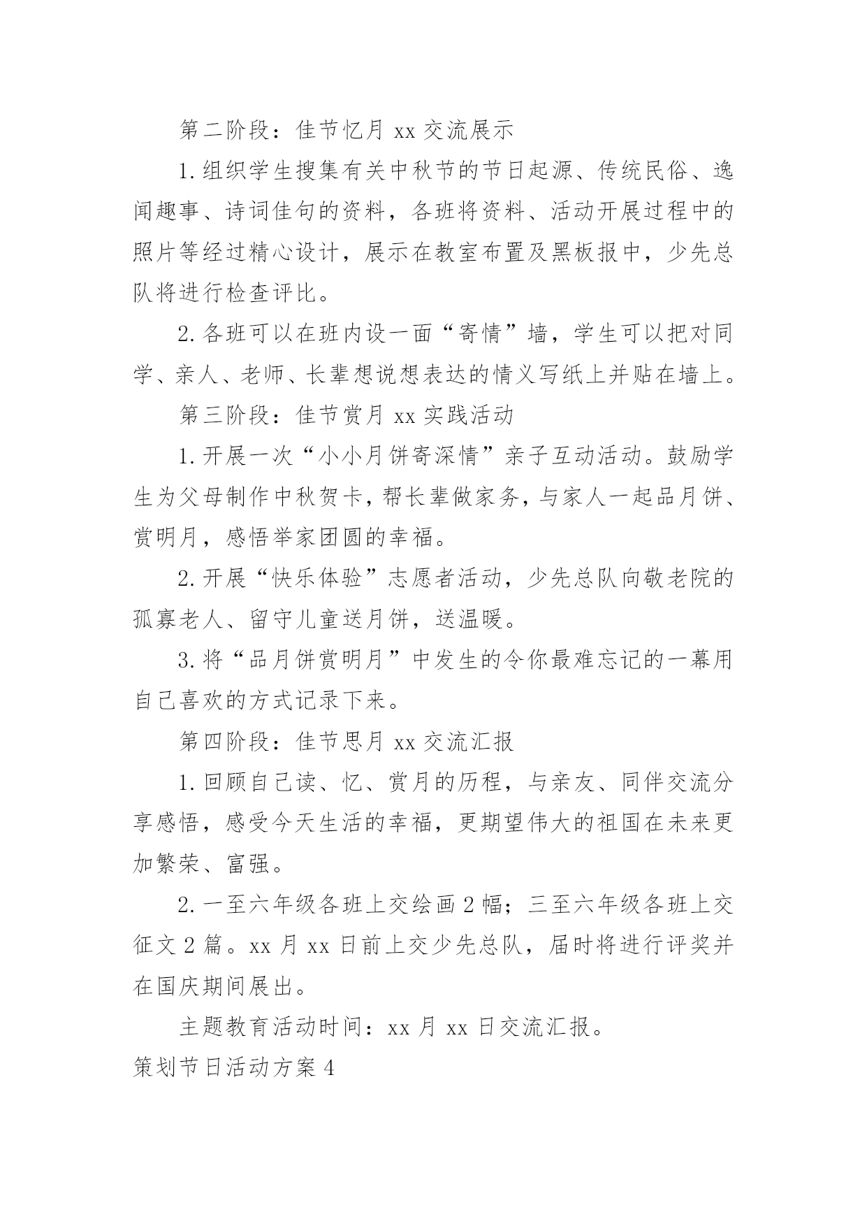 策划节日活动方案策划节日活动方案为了确保事情或工作扎实开展,常常需要提前制定一份优秀的方案,方案一般包括指导思想、主要目标、工作重点、实施步骤、政策措施、具体要求等项目。那要怎么制定科学的方案呢?以下是小编为大家收集的策划节日活动方案,仅供参考,希望能够帮助到大家。策划节日活动方案1即将过去的一年,我们的师生、家人、朋友或许志得意满,更上一层楼,也可能历经坎坷,遭遇暂时的挑战,这都是现实生活的赋予。但无论怎样每个人都会有值得回味的事和温暖瞬间。新的`一年,也会有新的愿望和期待。让我们一起在20xx回味述说中,再启程20xx。一、活动宗旨讲述温暖故事记录难忘历程展现师生风采祝福明年更好二、活动内容与形式1、内容以“我的20xx”为主题,题目自拟,字数、形式不限,或讲述发生在我们师生、亲人、朋友身边的事,或赞美学校的发展、家乡的巨变、祖国的变迁,或瞻望未、祝福明天更出彩。2、形式有奖征。评选出的优秀稿将在学校网站、校报、官方微信、微博媒体刊登。三、截稿时间:20xx年12月2日四、投稿邮箱:xx五、投稿要求:各年级教师投稿至少10篇,学生投稿至少每班1篇。学生稿要写上姓名、班级、辅导教师。由各年级收交后集中投稿。六、奖励办法:分教师类、学生类评选,届时评选一等奖、二等奖、优秀辅导教师若干名,并根据各年级获奖情况评选优秀组织奖1名。凡获奖教师和年级将颁发证书和奖品,获奖学生将颁发证书。策划节日活动方案2一、活动背景及目的培养学生成为具有感恩意识的人,让学生懂得自我的成长离不开教师、家长的付出,社会的关爱与扶持,体会自我的成长离不开教师、家长的关爱,懂得人与人之间要相互扶持,对别人为自我的付出明白感恩。感恩活动要坚持贴近实际、贴近生活、贴近学生和知行相统一、教育管理相结合的`原则,把感恩之情化为强烈的职责感,并付之于服务社会的实际行动,培养关心他人、服务社会、忠于祖国、道德高尚的有用之才。二、活动时间,对象活动时间:x年九月活动对象:湖南大学电气院12级所有同学(以班为单位)工作安排总负责人:组长:组员:湖南大学电气院12级所有同学三、组织形式:1、以班级为单位在以下活动中选取一个或多个开展并向年级会供给材料申报优秀主题活动。(1)制作类似“请同学帮教师擦黑板”这样的便签条,并向相关部门申请帖在教室里。(2)写贺卡,向自我是亲人教师或者朋友互寄贺卡。(3)请在本周之内做几件感恩他人(父母、教师、朋友、同学等)的事件,把事情的全过程记录下来,并写份心得,在全班开展感恩事迹比赛,凸显“感恩他人,升华自我”主题。(4)、开展“感恩主题教育活动”主题班会。2、由年级会对上报的材料进行评奖评优。3、活动设一二三等奖,一等奖一个,二等奖两个,三等奖三个。具体资料:前期工作分配:1、由年级会办公室下发相关通知。2、年级会宣传股对拍摄制作宣传视频,对活动进行初步动员。活动流程:1、9月10日办公室下发通知并催促各班抓紧开展相关活动。2、9月10日~9月20,各班自行开展各项活动。3、9月21日,各班提交申报材料。4、9月22日~9月25日,年级会对活动进行验收和评奖。5、9月26日,总结大会。活动后期工作分配:1、由年级会组织股购买相关奖品并派发。2、后期宣传,由宣传股负责在各大网站进行投稿。四、经费预算节日活动策划3目标:1、了解感恩节的来历,明白感恩节是表达谢意的日子。2、明白感恩节的特色食物与象征物。3、享受感恩节的庆祝活动。4、经过为他人做事、送感恩卡等感恩行动体验感恩的完美。活动策划:1、感激信:全园发放感恩信,告诉家长感恩节来临、我们要做什么、以及对家长的感激。2、大厅:a.制作大火鸡,标识语:happythanksgivingday感恩节欢乐;b.摆放每班制作的小人(风格各异,幼儿参与,和幼儿一样高,站立起来)(各班负责)3、班级:a.各班级制作感恩节海报贴到醒目处b.装饰班级环境,如手印火鸡、爆米花吊饰、羽毛等c.感恩节的相关教育,如感恩节故事欣赏、感恩节标志性词汇学习d.制作感恩贺卡4、感恩周:a.每一天的晨间接待教师化装成印第安人B.感恩行动:周一宝贝为您捶捶背;周二宝贝为您洗洗脚;周三宝贝给您端杯水;周四宝贝送您一个吻;周五宝贝秀一下。当天活动前的准备:a.全体师幼学习《感恩的心》手语表演b.请家长帮忙准备水果小吃以及一串爆米花项链c.准备暖场音乐以及《感恩的心》《tenlittleIndians》音乐,主持词d.制作“金摇篮美食部落”标志,并准备大布盖上(用于揭幕仪式);准备剪彩的相关物品。e.班级的其他两位教师负责将孩子们带来的水果、小吃在各层楼道摆好(每班两个桌子,包装拆开、切成适宜大小),保证卫生并准备牙签,纸杯,纸巾等。教育幼儿学会谦让、适量品尝。F.告知食堂做少许小点心用于当日品餐活动当日活动流程:A,早上开始抱