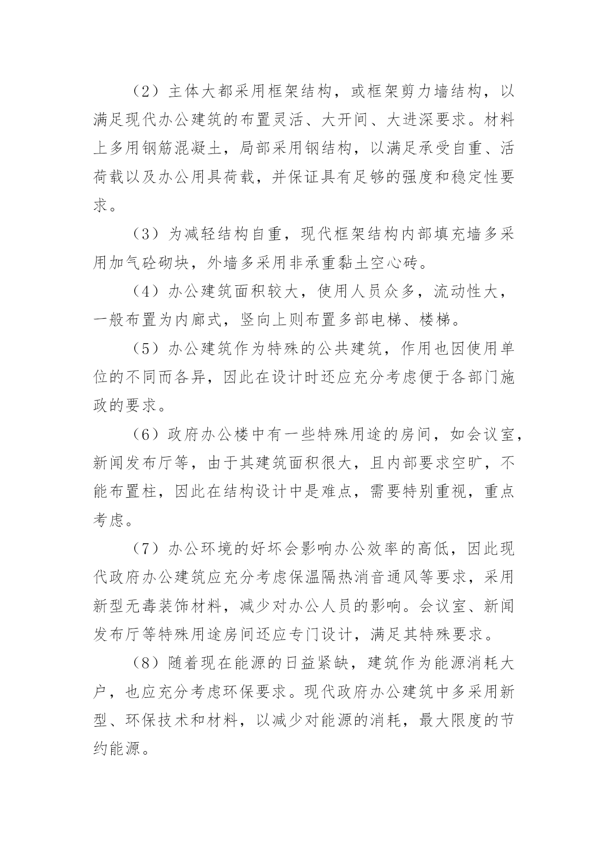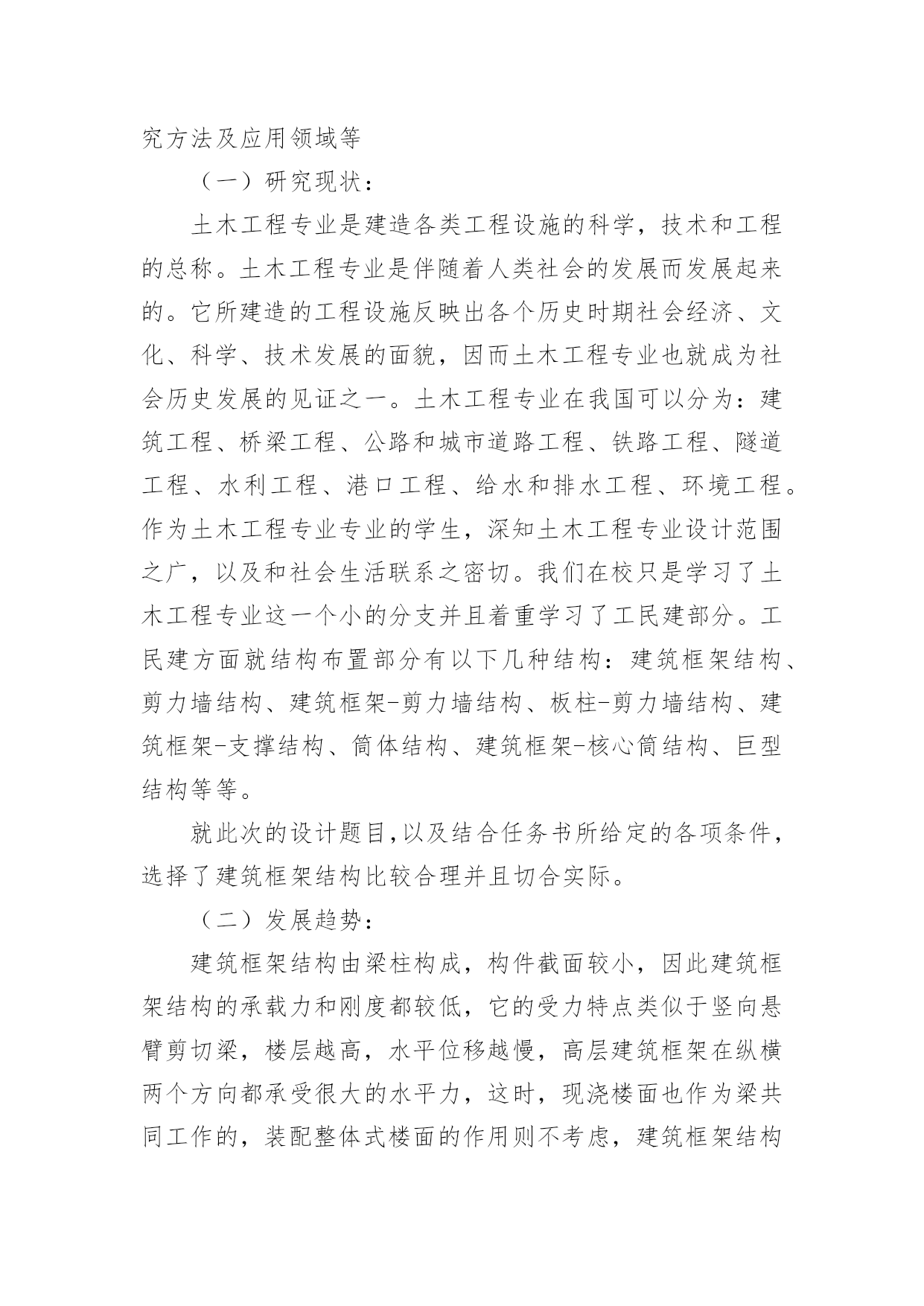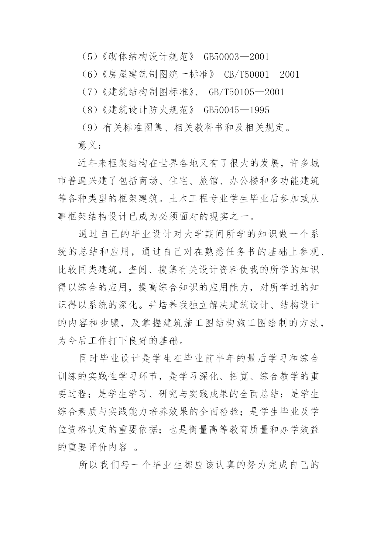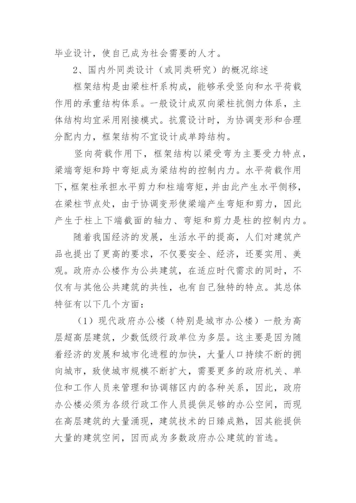 土木工程毕业设计开题报告土木工程毕业设计开题报告集锦14篇随着社会一步步向前发展,报告的使用成为日常生活的常态,通常情况下,报告的内容含量大、篇幅较长。我敢肯定,大部分人都对写报告很是头疼的,下面是小编为大家整理的土木工程毕业设计开题报告,欢迎阅读,希望大家能够喜欢。土木工程毕业设计开题报告11、设计(或研究)的依据与意义:本工程为某城区办公楼采用多层框架结构,为永久性建筑。该楼总建筑面积为8000㎡,拟建位置另行给定,抗震设防烈度为8度。根据城市城市规划。建筑规模和要求以及现有的气象条件(气温。相对湿度。主导风向。基本雪压)工程场地地质条件。及材料供应和施工条件进行设计。西城区办公楼由主楼和会议中心两部分组成,主体结构为7层,内外装修均为一般装修。相关设计依据:(1)《建筑地基设计规范》GB50007—2001(2)《混凝土结构设计规范》GB500010—2002(3)《建筑结构荷载规范》GB50009—2001(4)《建筑抗震设计规范》GB500011—2001(5)《砌体结构设计规范》GB50003—2001(6)《房屋建筑制图统一标准》CB/T50001—2001(7)《建筑结构制图标准》、GB/T50105—2001(8)《建筑设计防火规范》GB50045—1995(9)有关标准图集、相关教科书和及相关规定。意义:近年来框架结构在世界各地又有了很大的发展,许多城市普遍兴建了包括商场、住宅、旅馆、办公楼和多功能建筑等各种类型的框架建筑。土木工程专业学生毕业后参加或从事框架结构设计已成为必须面对的现实之一。通过自己的毕业设计对大学期间所学的知识做一个系统的总结和应用,通过自己对在熟悉任务书的基础上参观、比较同类建筑,查阅、搜集有关设计资料使我的所学的知识得以综合的应用,提高综合知识的应用能力,对所学过的知识得以系统的深化。并培养我独立解决建筑设计、结构设计的内容和步骤,及掌握建筑施工图结构施工图绘制的方法,为今后工作打下良好的基础。同时毕业设计是学生在毕业前半年的最后学习和综合训练的实践性学习环节,是学习深化、拓宽、综合教学的重要过程;是学生学习、研究与实践成果的全面总结;是学生综合素质与实践能力培养效果的全面检验;是学生毕业及学位资格认定的重要依据;也是衡量高等教育质量和办学效益的重要评价内容。所以我们每一个毕业生都应该认真的努力完成自己的毕业设计,使自己成为社会需要的人才。2、国内外同类设计(或同类研究)的概况综述框架结构是由梁柱杆系构成,能够承受竖向和水平荷载作用的承重结构体系。一般设计成双向梁柱抗侧力体系,主体结构均宜采用刚接模式。抗震设计时,为协调变形和合理分配内力,框架结构不宜设计成单跨结构。竖向荷载作用下,框架结构以梁受弯为主要受力特点,梁端弯矩和跨中弯矩成为梁结构的控制内力。水平荷载作用下,框架柱承担水平剪力和柱端弯矩,并由此产生水平侧移,在梁柱节点处,由于协调变形使梁端产生弯矩和剪力,因此产生于柱上下端截面的轴力、弯矩和剪力是柱的控制内力。随着我国经济的发展,生活水平的提高,人们对建筑产品也提出了更高的要求,不仅要安全、经济,还要实用、美观。政府办公楼作为公共建筑,在适应时代需求的同时,不仅有与其他公共建筑的共性,也有自己独特的特点。其总体特征有以下几个方面:(1)现代政府办公楼(特别是城市办公楼)一般为高层超高层建筑,少数低级行政单位为多层。这主要是因为随着经济的发展和城市化进程的加快,大量人口持续不断的拥向城市,致使城市规模不断扩大,需要更多的政府机关、单位和工作人员来管理和协调辖区内的各种关系,因此,政府办公楼必须为各级行政工作人员提供足够的办公空间,而现在高层建筑的大量涌现,建筑技术的日臻成熟,因其能提供大量的建筑空间,因而成为多数政府办公建筑的首选。(2)主体大都采用框架结构,或框架剪力墙结构,以满足现代办公建筑的布置灵活、大开间、大进深要求。材料上多用钢筋混凝土,局部采用钢结构,以满足承受自重、活荷载以及办公用具荷载,并保证具有足够的强度和稳定性要求。(3)为减轻结构自重,现代框架结构内部填充墙多采用加气砼砌块,外墙多采用非承重黏土空心砖。(4)办公建筑面积较大,使用人员众多,流动性大,一般布置为内廊式,竖向上则布置多部电梯、楼梯。(5)办公建筑作为特殊的公共建筑,作用也因使用单位的不同而各异,因此在设计时还应充分考虑便于各部门施政的要求。(6)政府办公楼中有一些特殊用途的房间,如会议室,新闻发布厅等,由于其建筑面积很大,且内部要求空旷,不能布置柱,因此在结构设计中是难点,需要特别重视,重点考虑。(7)办公环境的好坏会影响办公效率的高低,因此现代政府办公建筑应充分考虑保温隔热消音通风等要求,采用新型无毒装饰材料,减少对办公人员的影响。会议室、新闻发布厅等特殊用途房间还应专门设计,满足其特