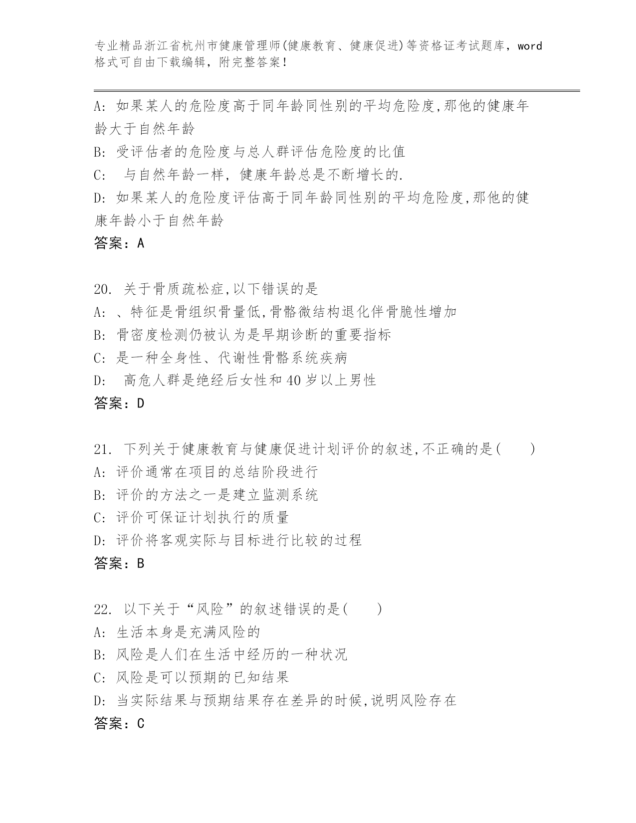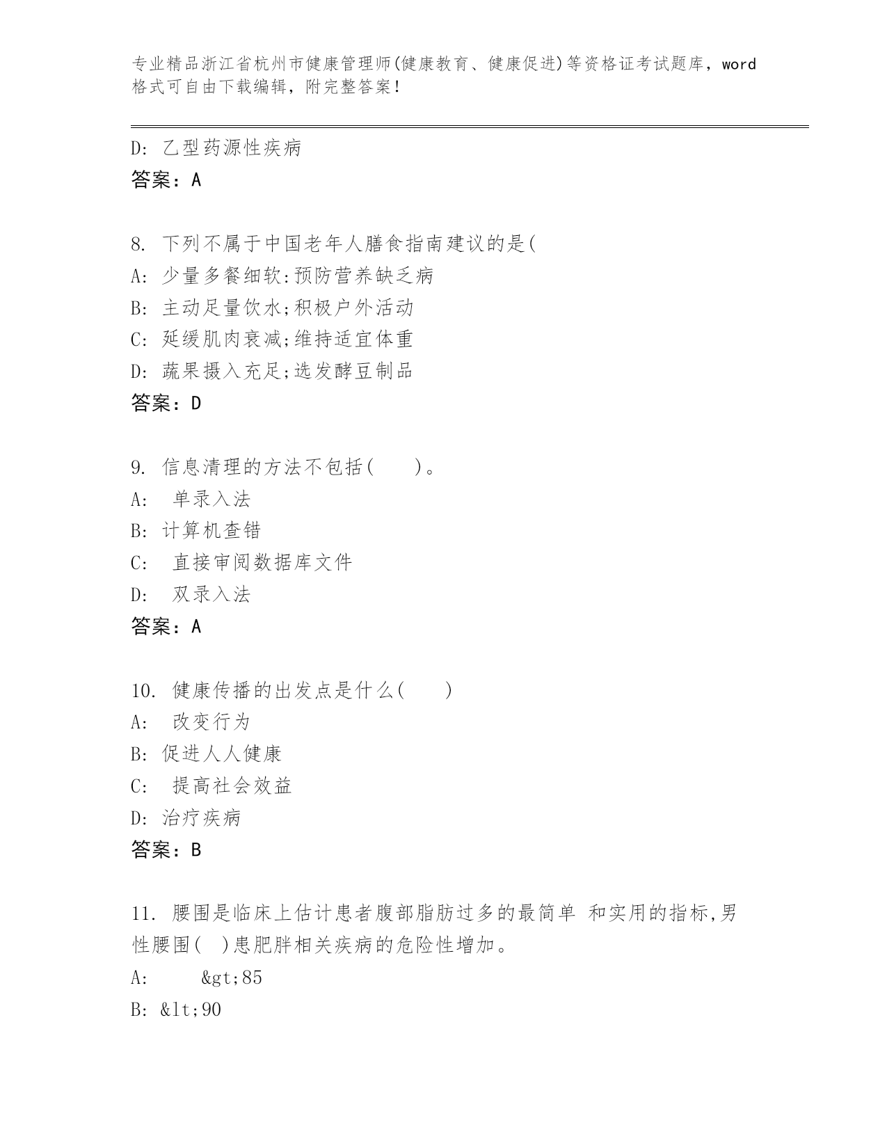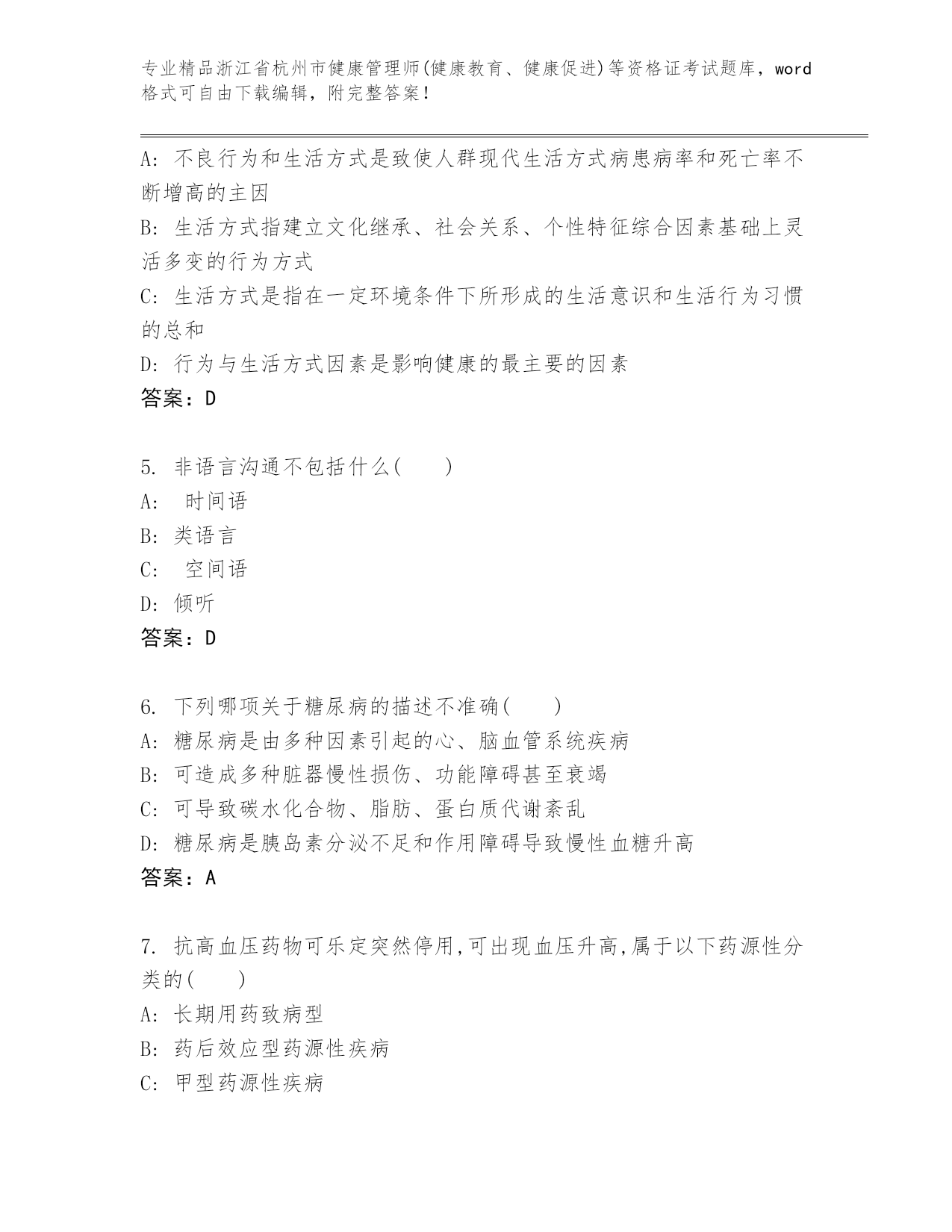 浙江省杭州市健康管理师(健康教育、健康促进)等资格证考试内部题库有解析答案.docx