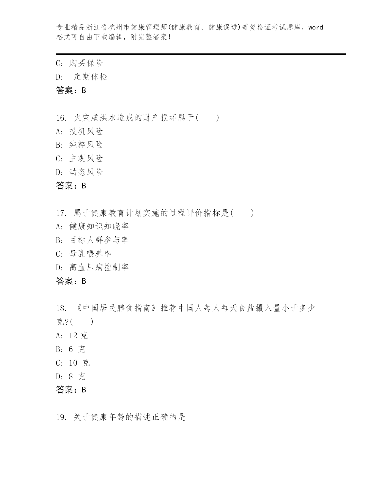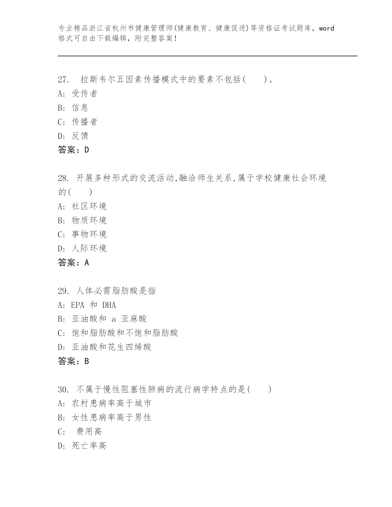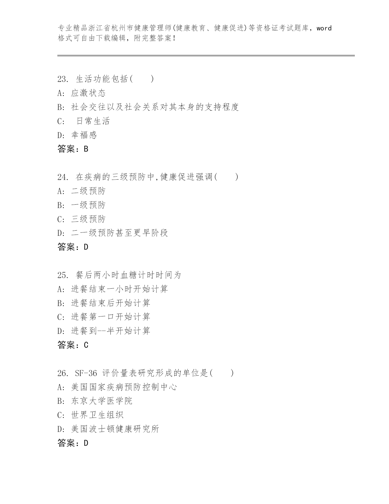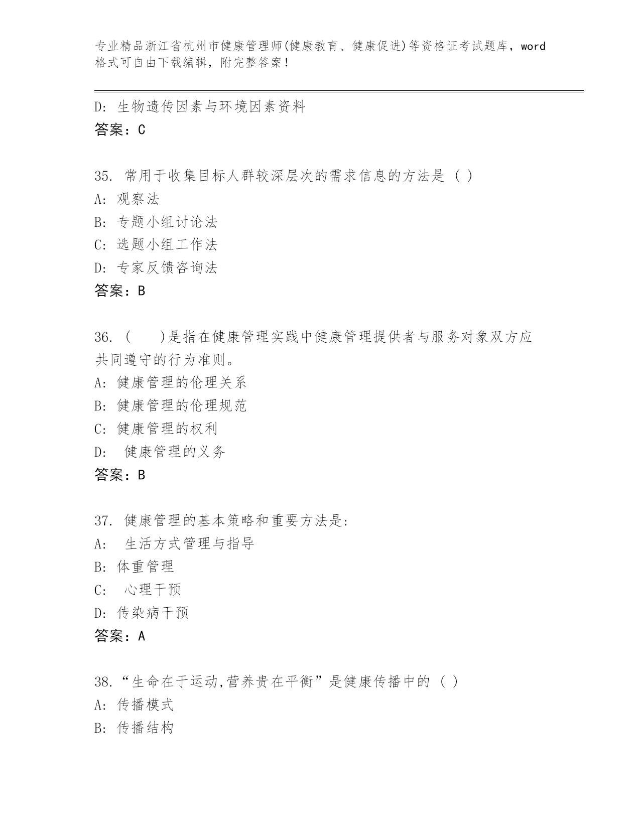 浙江省杭州市健康管理师(健康教育、健康促进)等资格证考试内部题库有解析答案.docx