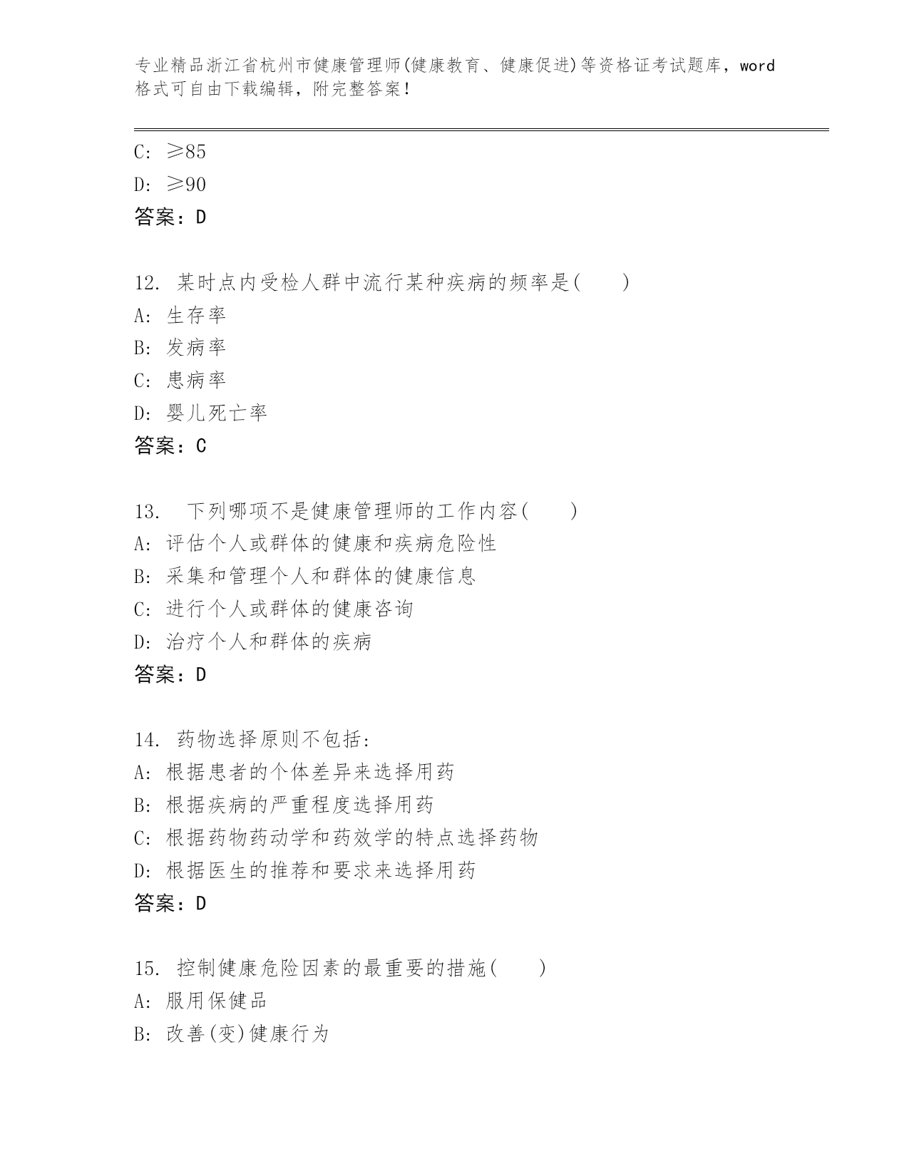 浙江省杭州市健康管理师(健康教育、健康促进)等资格证考试内部题库有解析答案