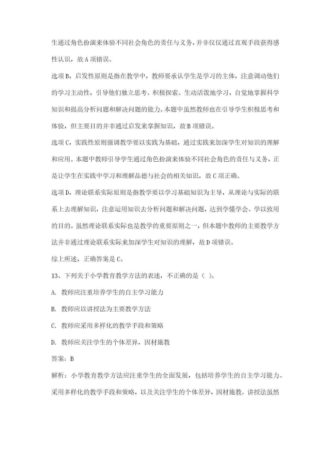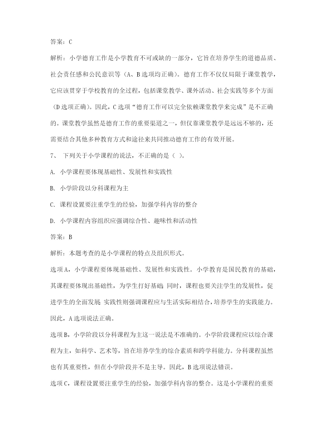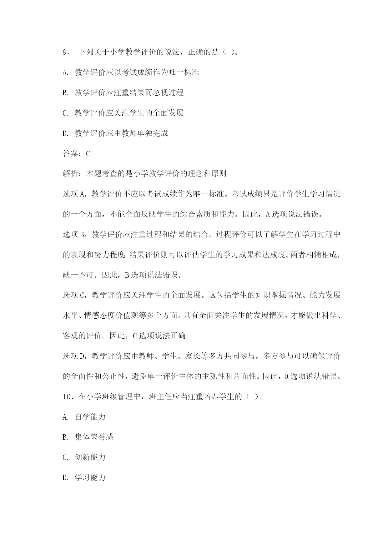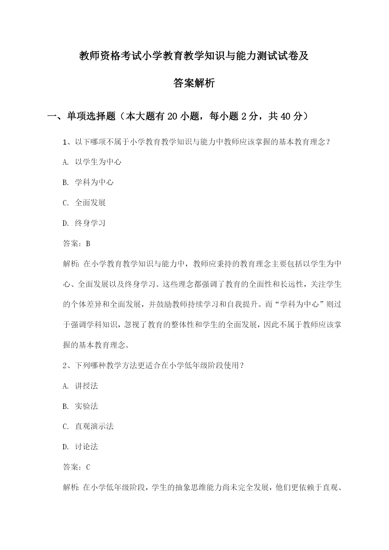 教师资格考试小学教育教学知识与能力测试试卷及答案解析