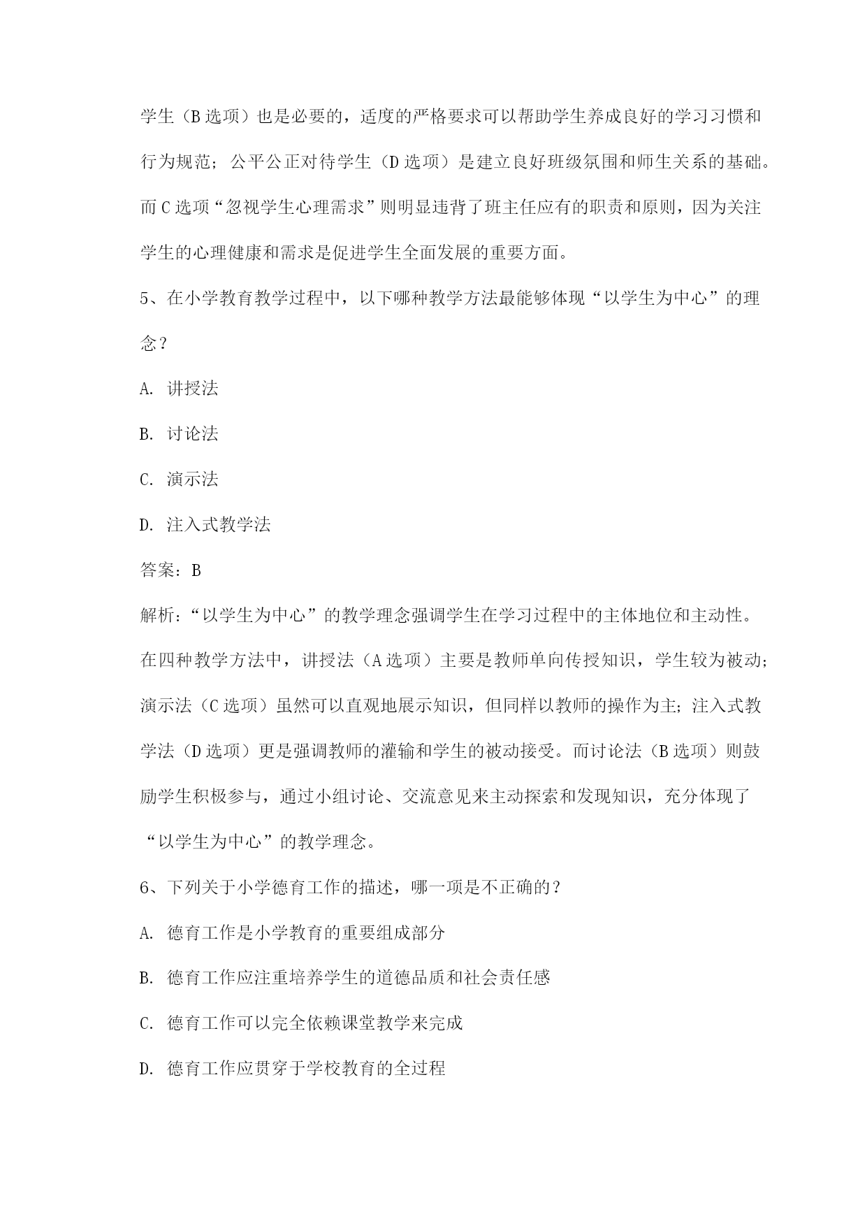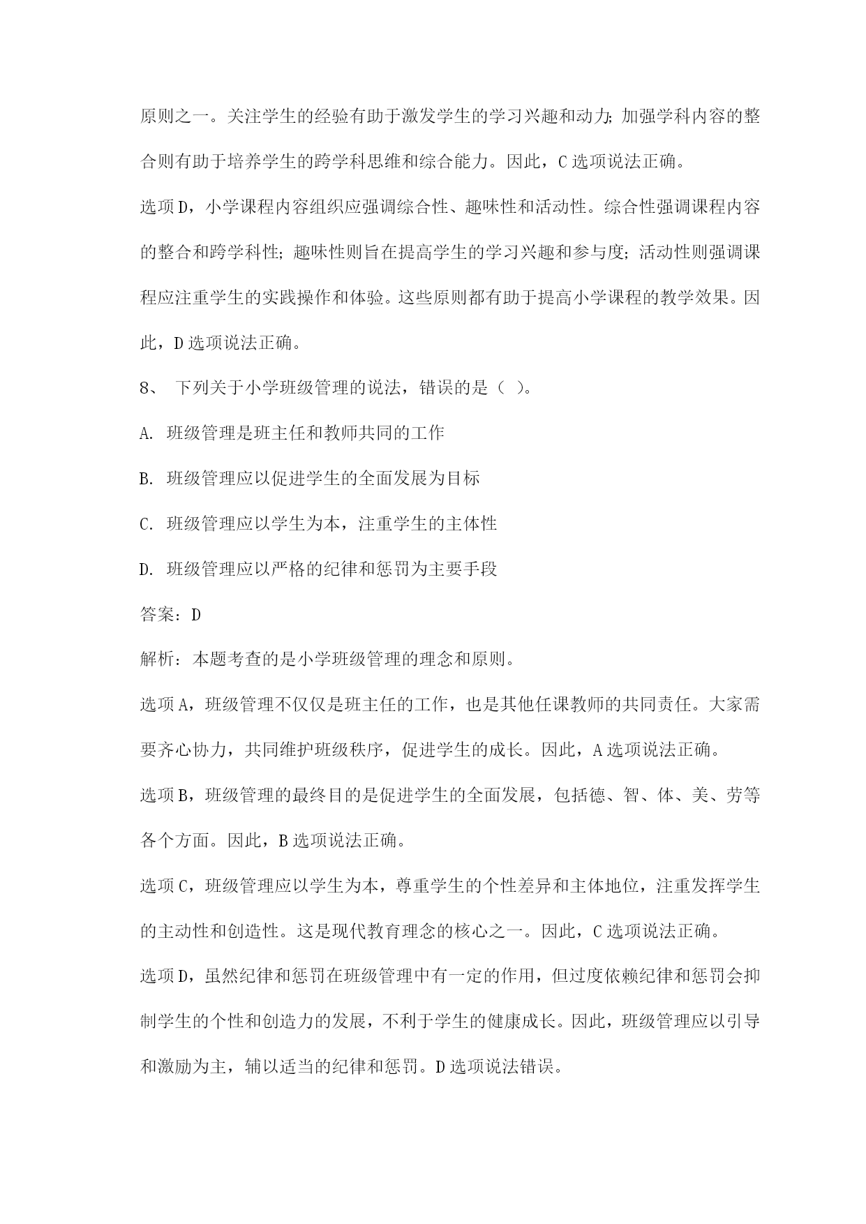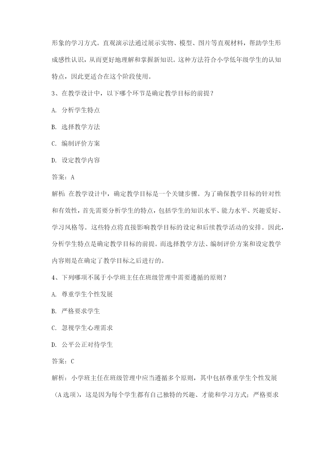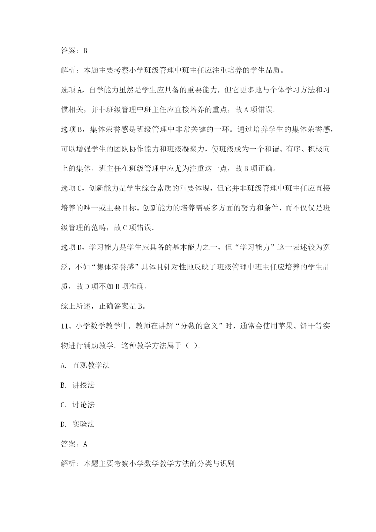 教师资格考试小学教育教学知识与能力测试试卷及答案解析