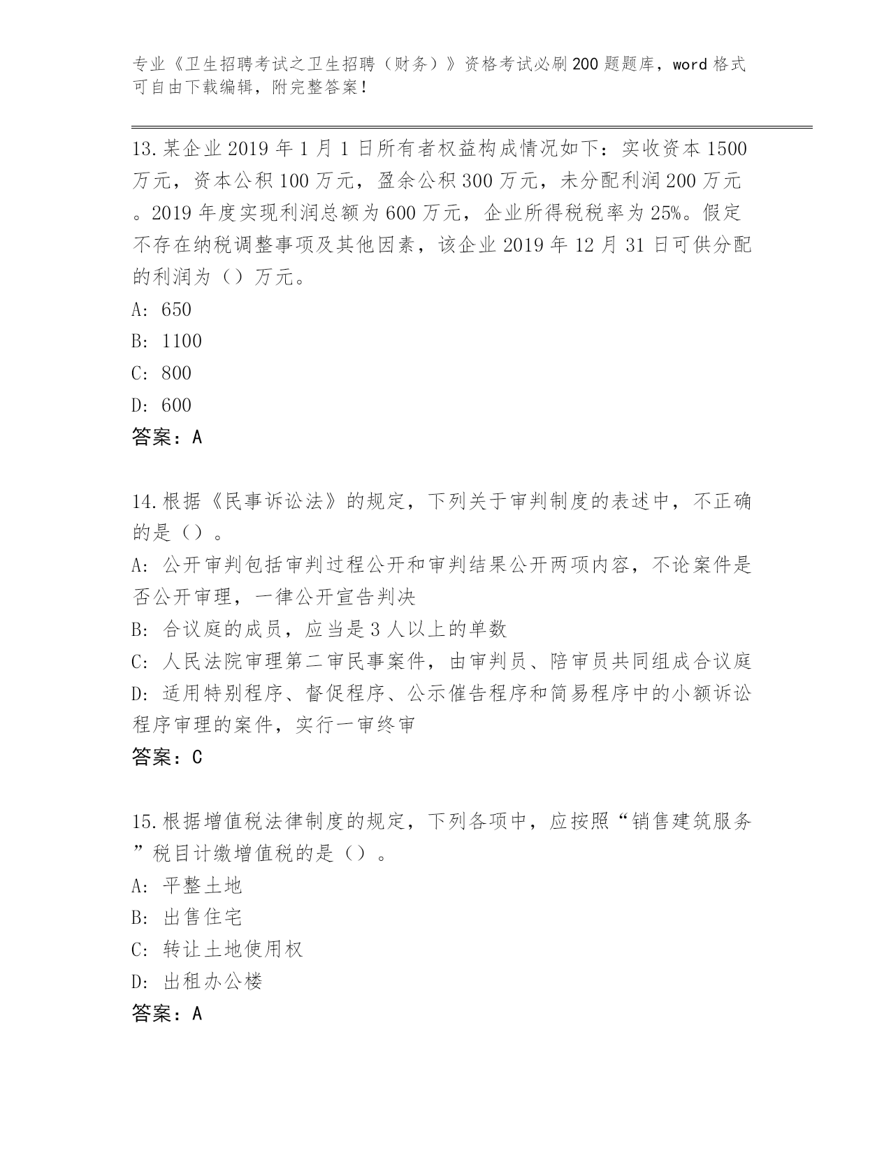 2024年江西省信丰县《卫生招聘考试之卫生招聘(财务)》考试必刷200题内部题库带答案(能力提升)