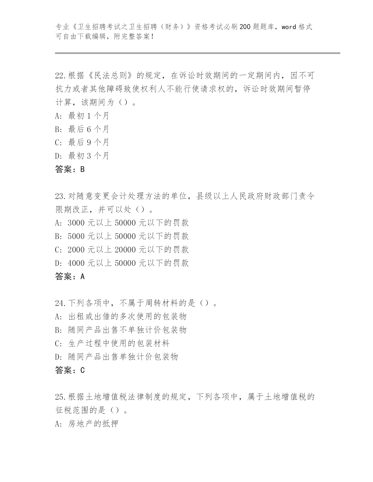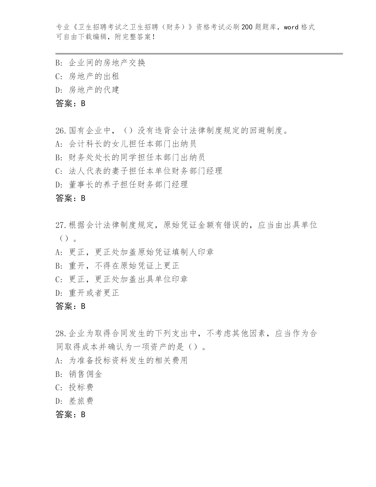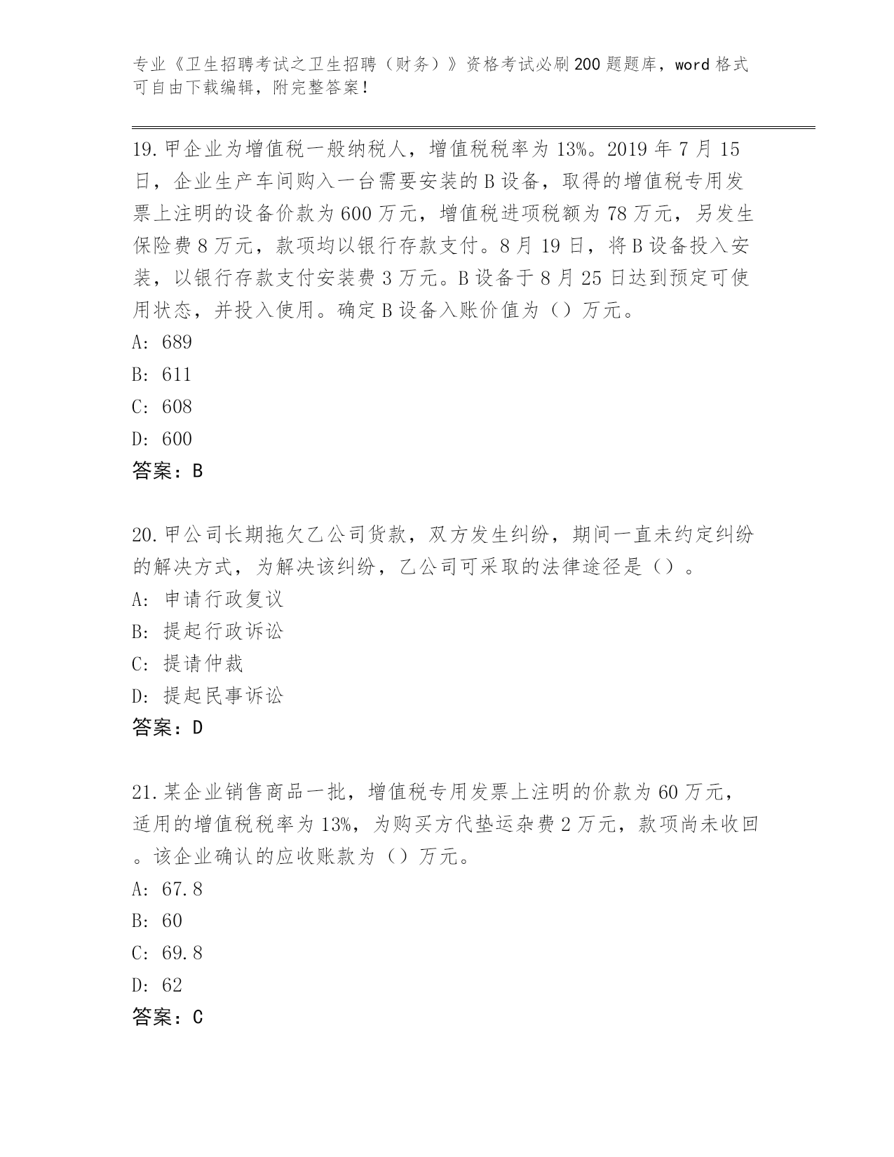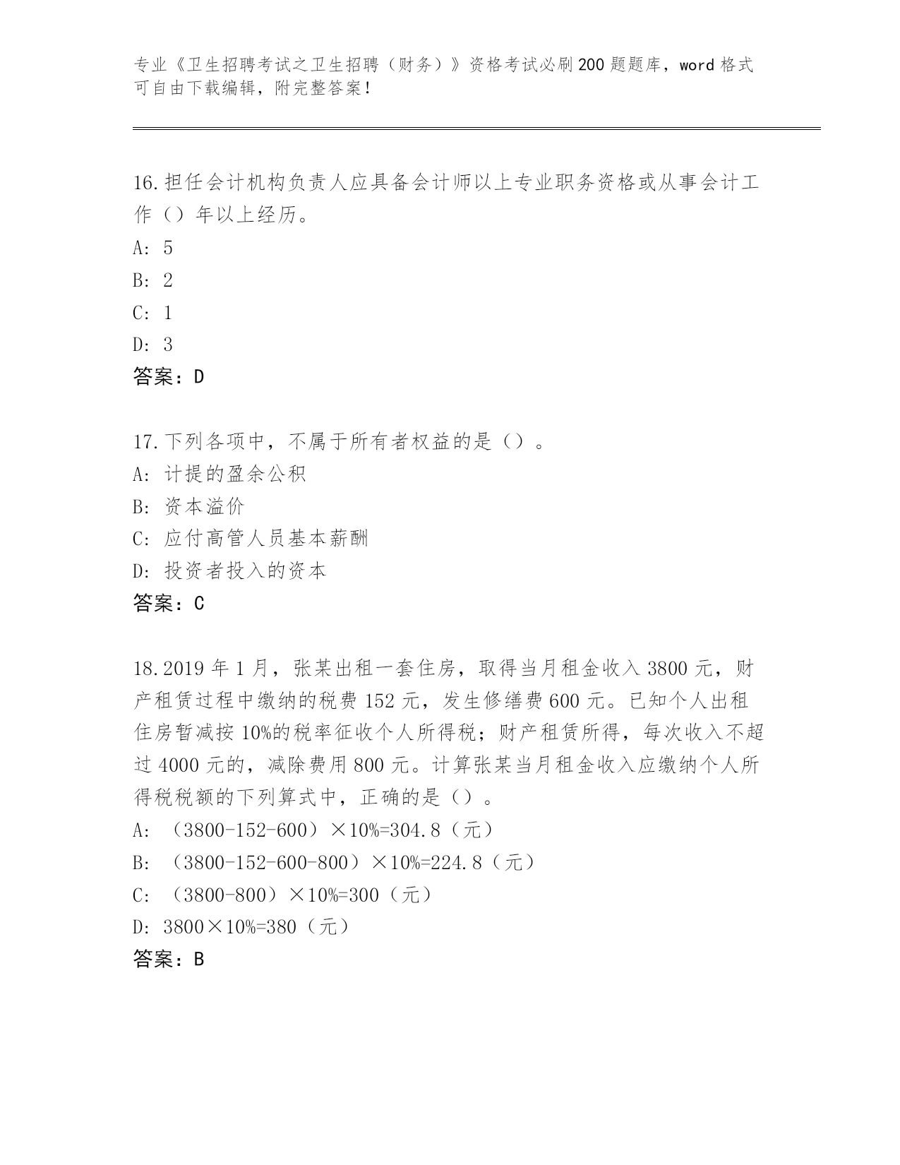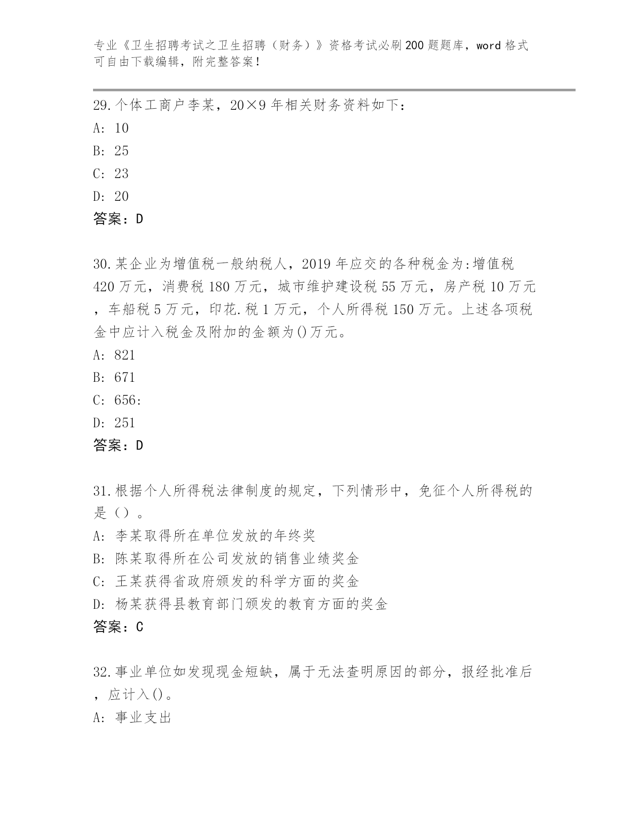 江西省章贡区整理《卫生招聘考试之卫生招聘(财务)》资格考试必刷200题附答案【综合卷】