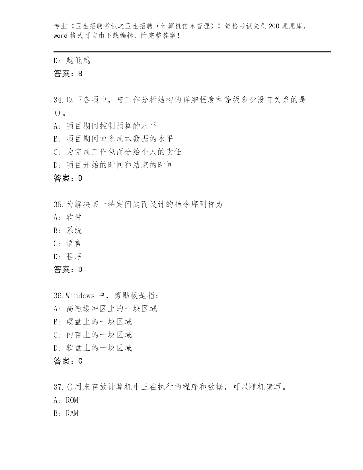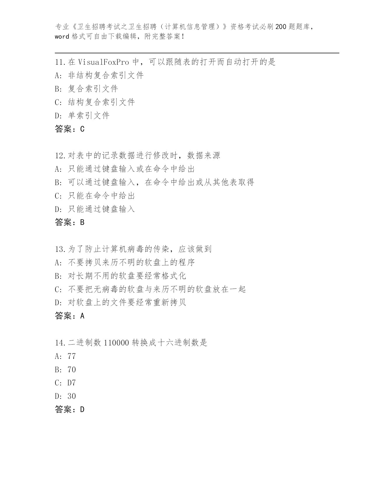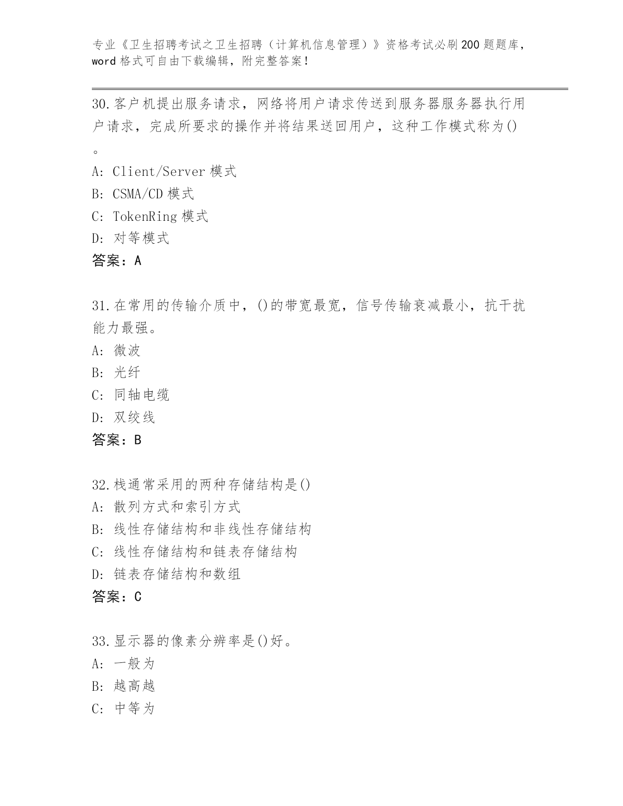 云南省昭阳区完整版《卫生招聘考试之卫生招聘(计算机信息管理)》资格考试必背200题带答案(满分必刷)