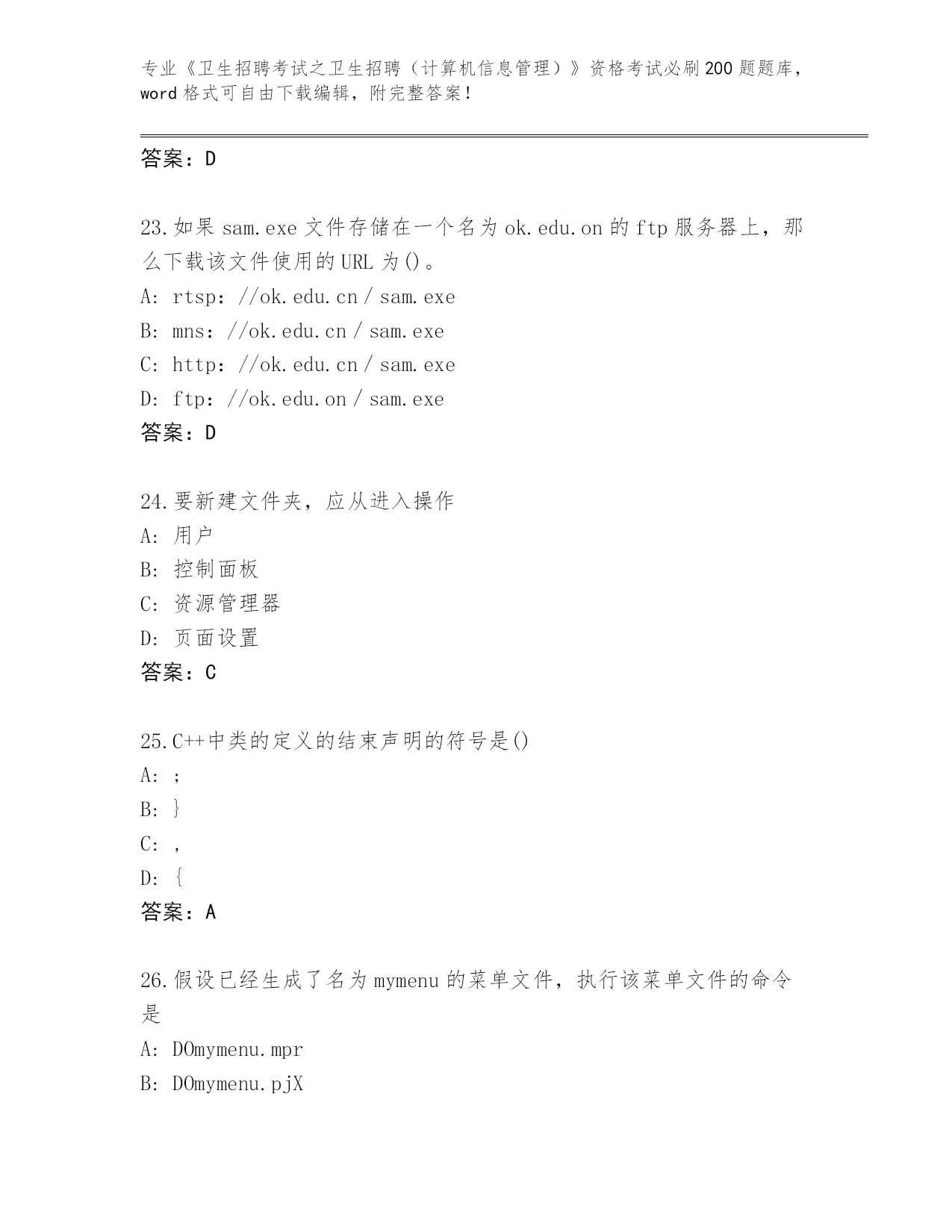 云南省砚山县完整版《卫生招聘考试之卫生招聘(计算机信息管理)》资格考试必刷200题题库(突破训练)