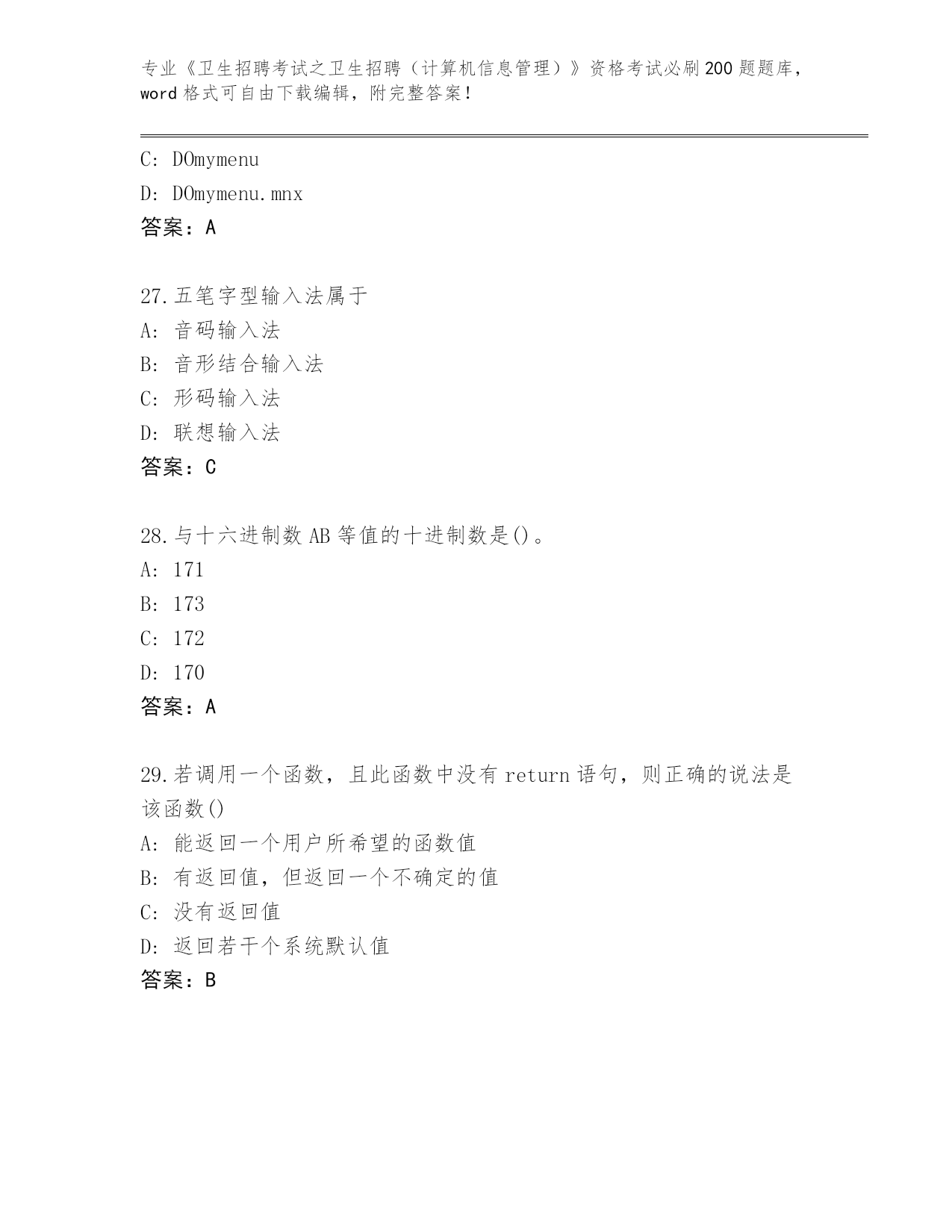 完整版云南省砚山县《卫生招聘考试之卫生招聘(计算机信息管理)》资格考试必刷200题完整版各版本