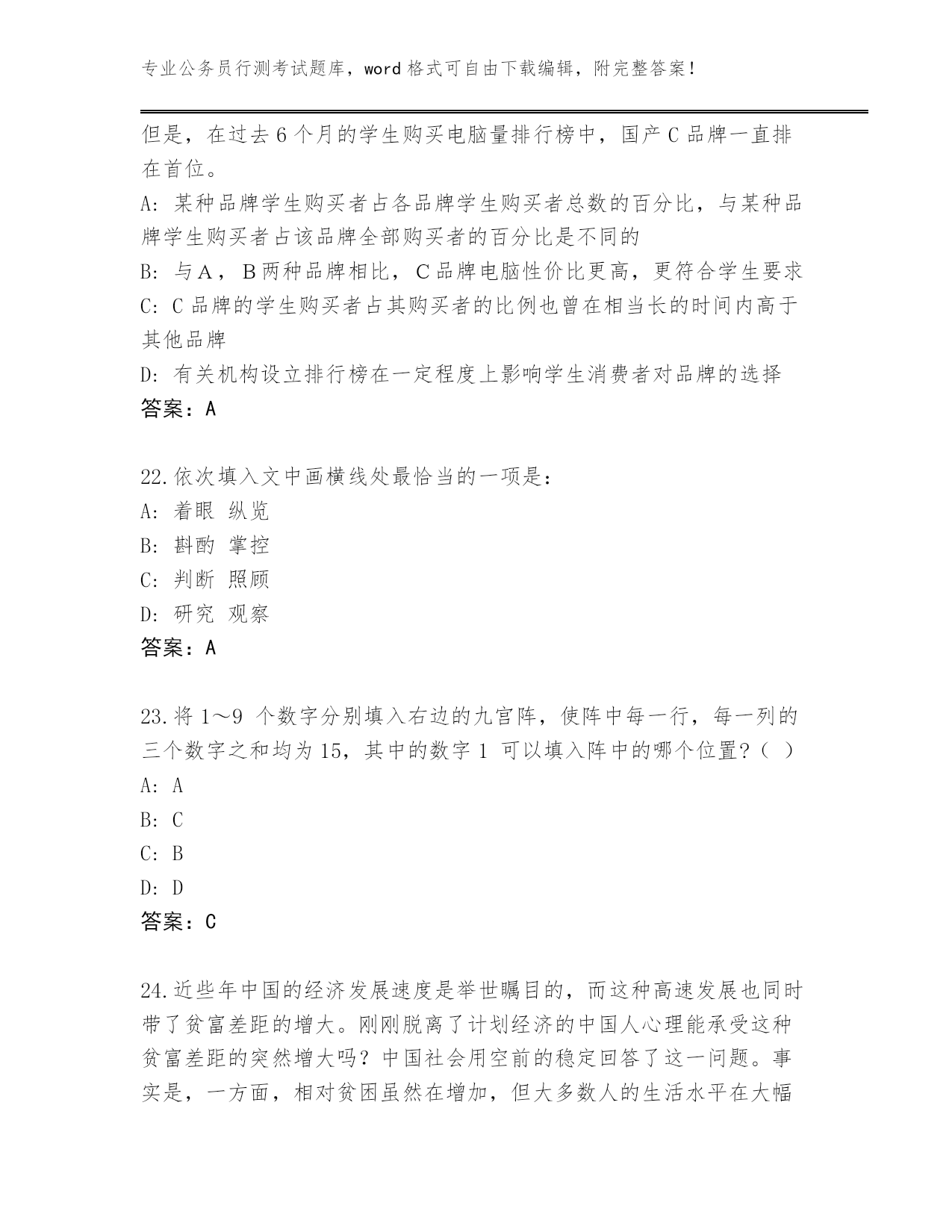 广东省吴川市2024年公务员行测考试真题【名师系列】