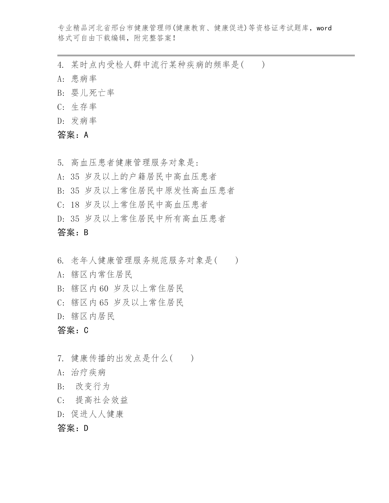 河北省邢台市健康管理师(健康教育、健康促进)等资格证考试通用题库【达标题】.docx