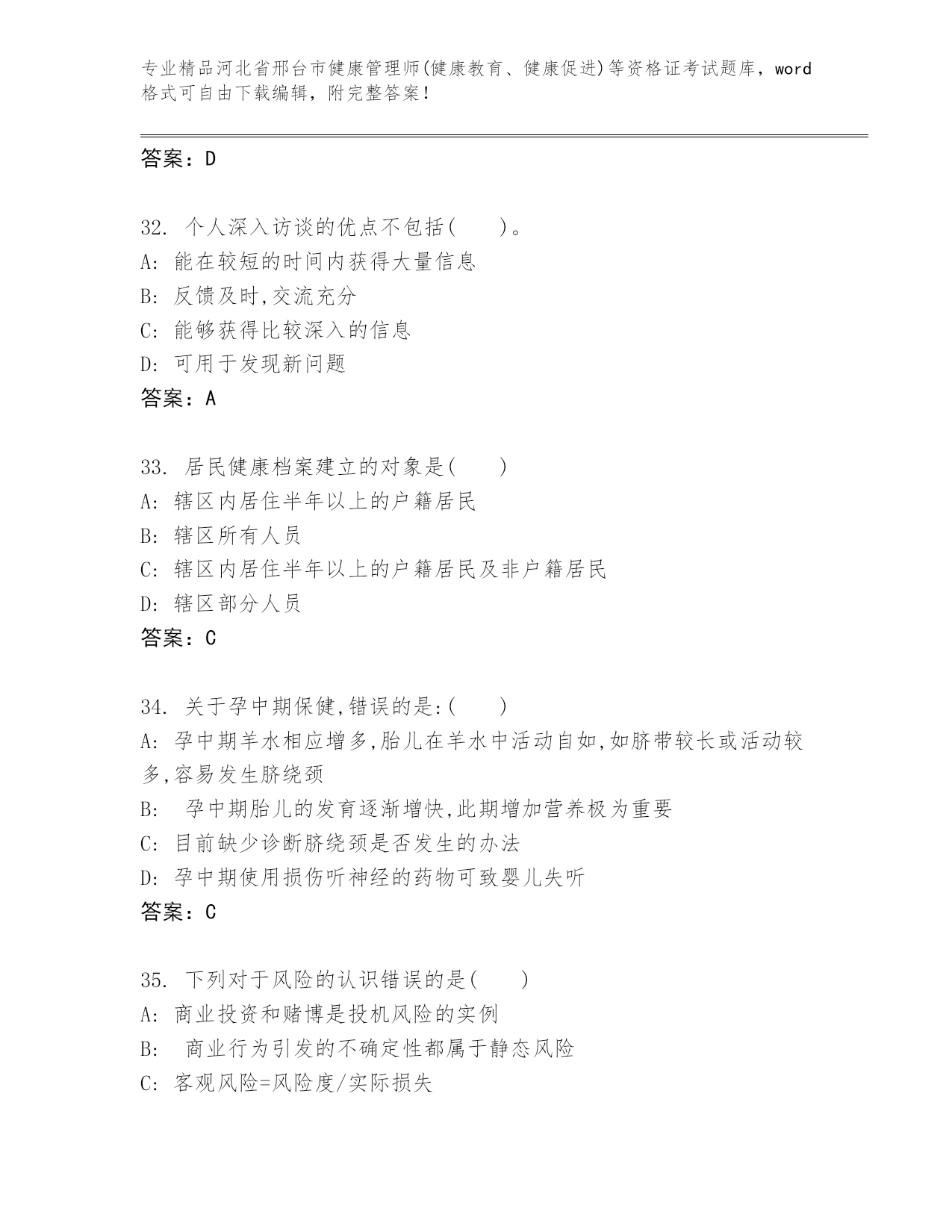 河北省邢台市健康管理师(健康教育、健康促进)等资格证考试通用题库【达标题】
