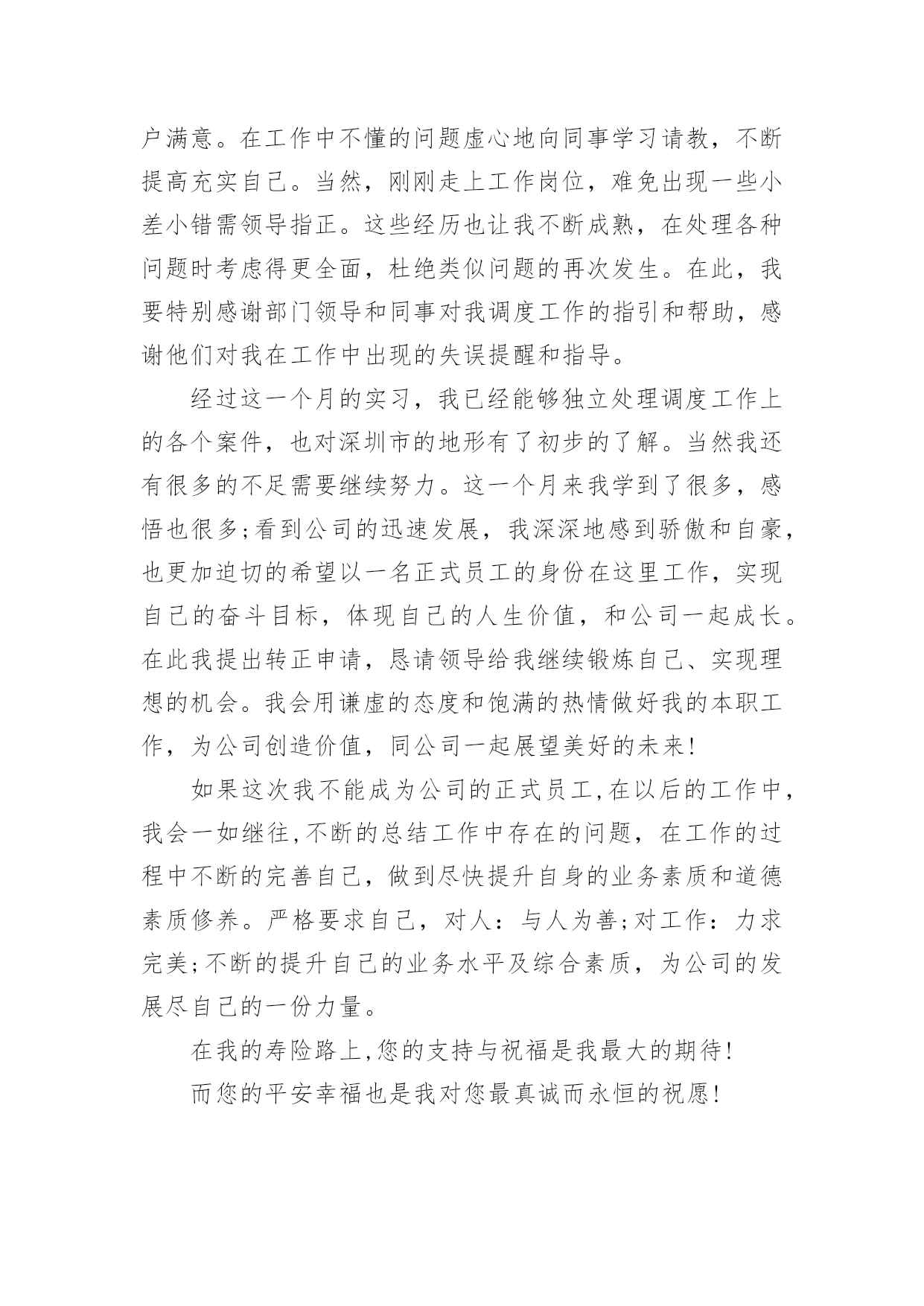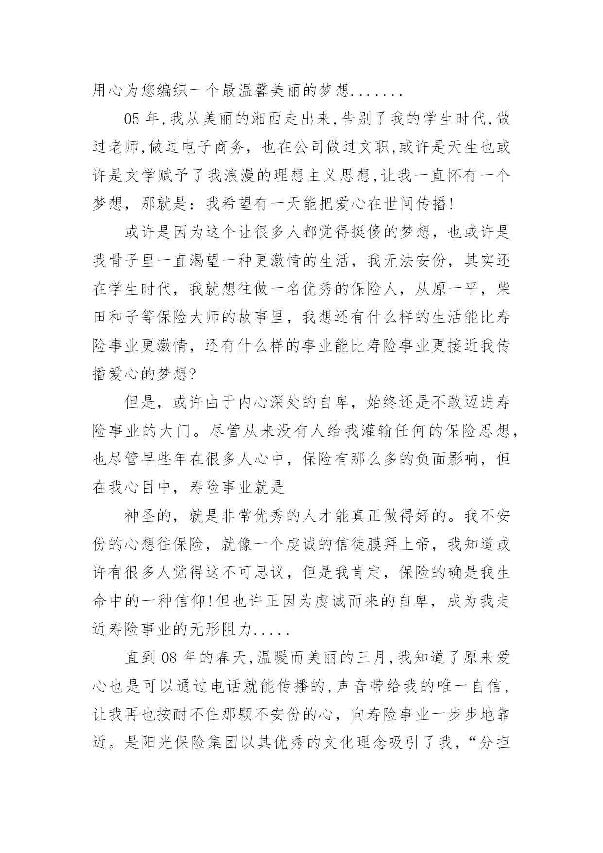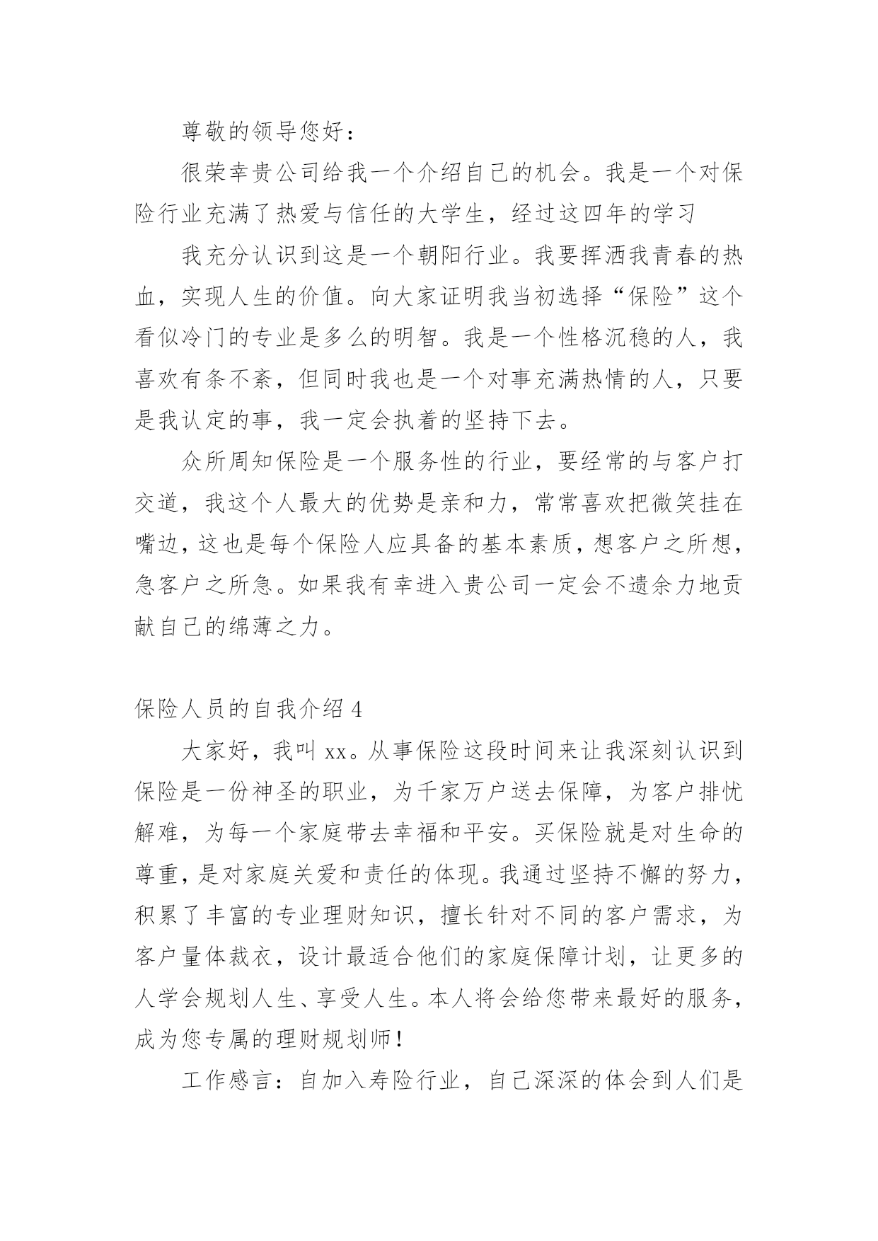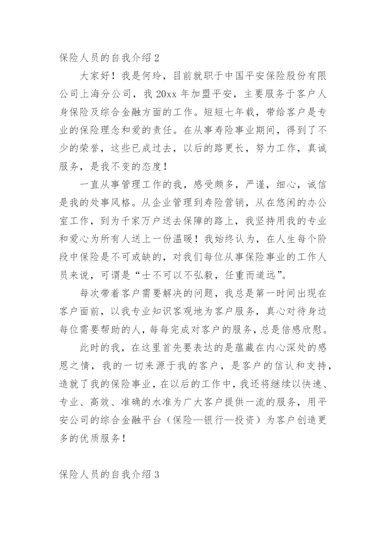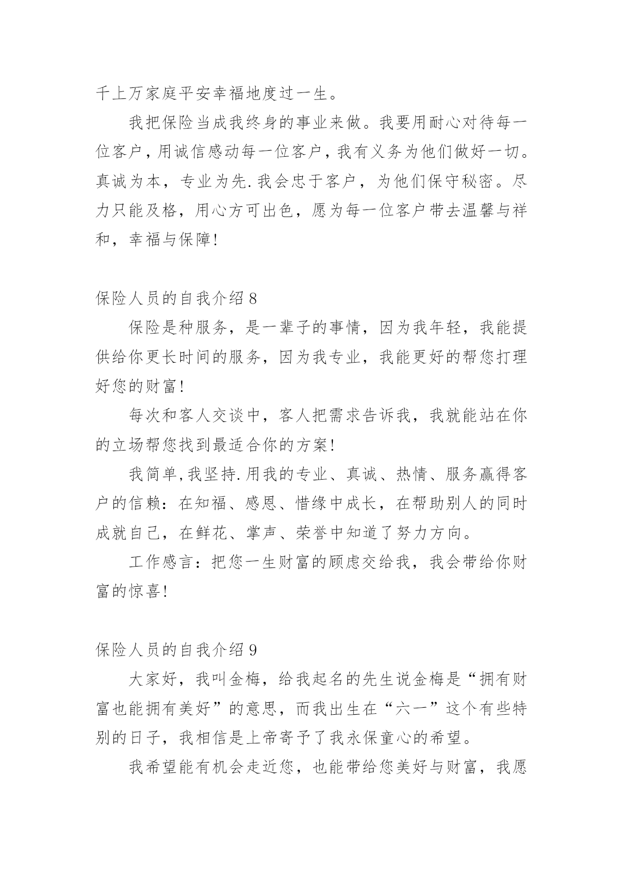 保险人员的自我介绍来到一个陌生的地方时,我们时常会需要作自我介绍,通过自我介绍可以让他人了解我们。那么自我介绍要注意有什么内容呢?以下是小编帮大家整理的保险人员的自我介绍,欢迎大家分享。保险人员的自我介绍1我于20xx年3月20日成为XXX保险公估公司实习员工,到今天一个月试用期已满,现申请转为公司正式员工。作为一个应届毕业生,初来公司,曾经很担心不知该怎么与同事共处,该如何做好这份工作;但是公司宽松融洽的工作氛围,让我很快完成了从学生到职员的转变。公司试用期间,在部门领导和同事的耐心指导下,使我在较短的时间内适应了公司的工作环境,也熟悉了调度岗位的整个操作流程。在工作中,我一直严格要求自己,完全服从组长的指示,努力完成每一项工作任务,当接到总台调度现场,及时派给区域负责查堪员,同时也尽快地跟客户取得联系,让客户在现场不要等得太着急;当接到定损和收资料时一定要问清楚车牌号和联系方式,做好对每一个案件的登记和跟踪。用最好的服务态度去对待每一位客户和查堪员,因为我明白我们从事的是服务行业,所以优质服务客户是我们的宗旨,也代表着我们智信达保险公估公司的形象,尽量做到让每一位客户满意。在工作中不懂的问题虚心地向同事学习请教,不断提高充实自己。当然,刚刚走上工作岗位,难免出现一些小差小错需领导指正。这些经历也让我不断成熟,在处理各种问题时考虑得更全面,杜绝类似问题的再次发生。在此,我要特别感谢部门领导和同事对我调度工作的指引和帮助,感谢他们对我在工作中出现的失误提醒和指导。经过这一个月的实习,我已经能够独立处理调度工作上的各个案件,也对深圳市的地形有了初步的了解。当然我还有很多的不足需要继续努力。这一个月来我学到了很多,感悟也很多;看到公司的迅速发展,我深深地感到骄傲和自豪,也更加迫切的希望以一名正式员工的身份在这里工作,实现自己的奋斗目标,体现自己的人生价值,和公司一起成长。在此我提出转正申请,恳请领导给我继续锻炼自己、实现理想的机会。我会用谦虚的态度和饱满的热情做好我的本职工作,为公司创造价值,同公司一起展望美好的未来!如果这次我不能成为公司的正式员工,在以后的工作中,我会一如继往,不断的总结工作中存在的问题,在工作的过程中不断的完善自己,做到尽快提升自身的业务素质和道德素质修养。严格要求自己,对人:与人为善;对工作:力求完美;不断的提升自己的业务水平及综合素质,为公司的发展尽自己的一份力量。在我的寿险路上,您的支持与祝福是我最大的期待!而您的平安幸福也是我对您最真诚而永恒的祝愿!保险人员的自我介绍2大家好!我是何玲,目前就职于中国平安保险股份有限公司上海分公司,我20xx年加盟平安,主要服务于客户人身保险及综合金融方面的工作。短短七年载,带给客户是专业的保险理念和爱的责任。在从事寿险事业期间,得到了不少的荣誉,这些已成过去,以后的路更长,努力工作,真诚服务,是我不变的态度!一直从事管理工作的我,感受颇多,严谨,细心,诚信是我的处事风格。从企业管理到寿险营销,从在悠闲的办公室工作,到为千家万户送去保障的路上,我坚持用我的专业和爱心为所有人送上一份温暖!我始终认为,在人生每个阶段中保险是不可或缺的,对我们每位从事保险事业的工作人员来说,可谓是“士不可以不弘毅,任重而道远”。每次带着客户需要解决的问题,我总是第一时间出现在客户面前,以我专业知识客观地为客户服务,真心对待身边每位需要帮助的人,每每完成对客户的服务,总是倍感欣慰。此时的我,在这里首先要表达的是蕴藏在内心深处的感恩之情,我的一切来源于我的客户,是客户的信认和支持,造就了我的保险事业,在以后的工作中,我还将继续以快速、专业、高效、准确的水准为广大客户提供一流的服务,用平安公司的综合金融平台(保险—银行—投资)为客户创造更多的优质服务!保险人员的自我介绍3尊敬的领导您好:很荣幸贵公司给我一个介绍自己的机会。我是一个对保险行业充满了热爱与信任的大学生,经过这四年的学习我充分认识到这是一个朝阳行业。我要挥洒我青春的热血,实现人生的价值。向大家证明我当初选择“保险”这个看似冷门的专业是多么的明智。我是一个性格沉稳的人,我喜欢有条不紊,但同时我也是一个对事充满热情的人,只要是我认定的事,我一定会执着的坚持下去。众所周知保险是一个服务性的行业,要经常的与客户打交道,我这个人最大的优势是亲和力,常常喜欢把微笑挂在嘴边,这也是每个保险人应具备的基本素质,想客户之所想,急客户之所急。如果我有幸进入贵公司一定会不遗余力地贡献自己的绵薄之力。保险人员的自我介绍4大家好,我叫xx。从事保险这段时间来让我深刻认识到保险是一份神圣的职业,为千家万户送去保障,为客户排忧解难,为每一个家庭带去幸福和平安。买保险就是对生命的尊重,是对家庭关爱和责任的体现。我通过坚持不懈的努力,积累了丰富的专业理财知识,擅长