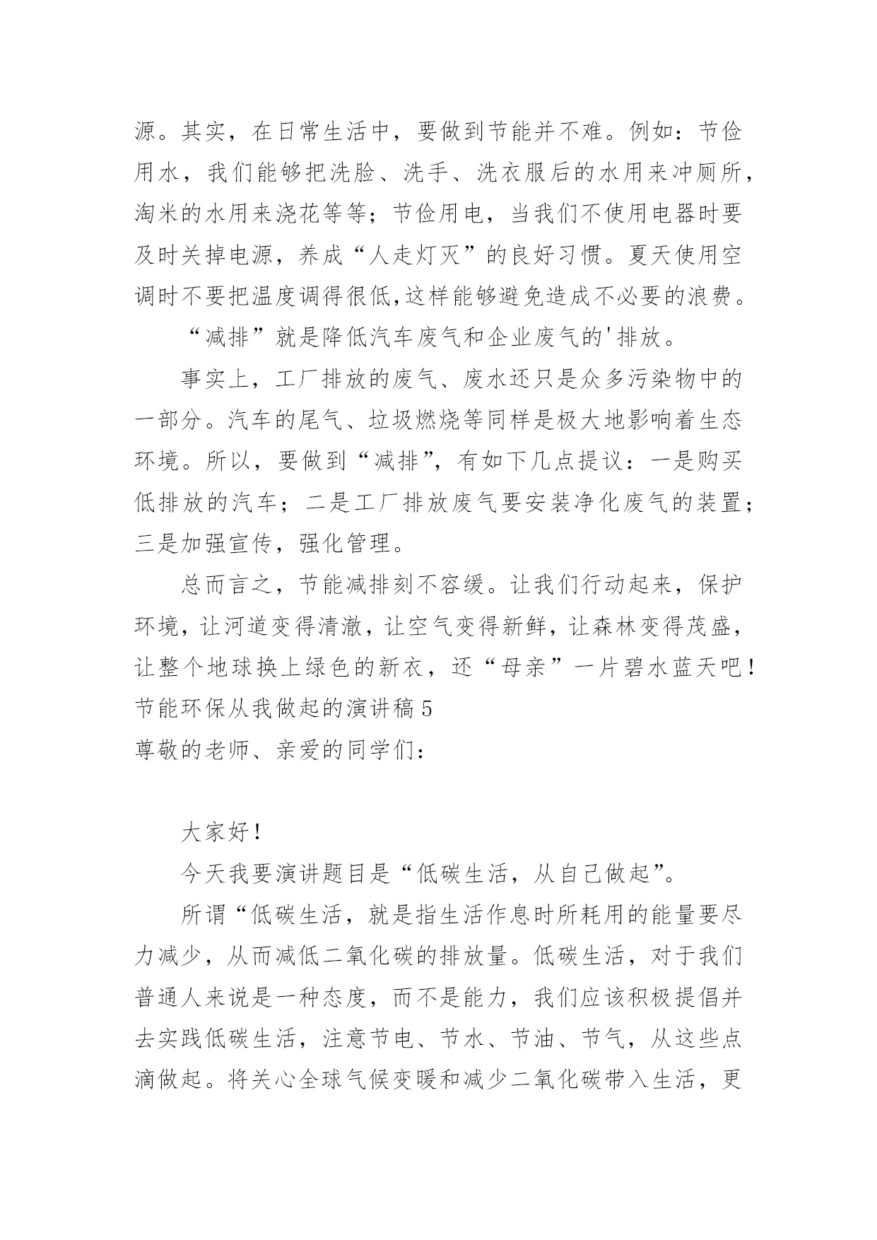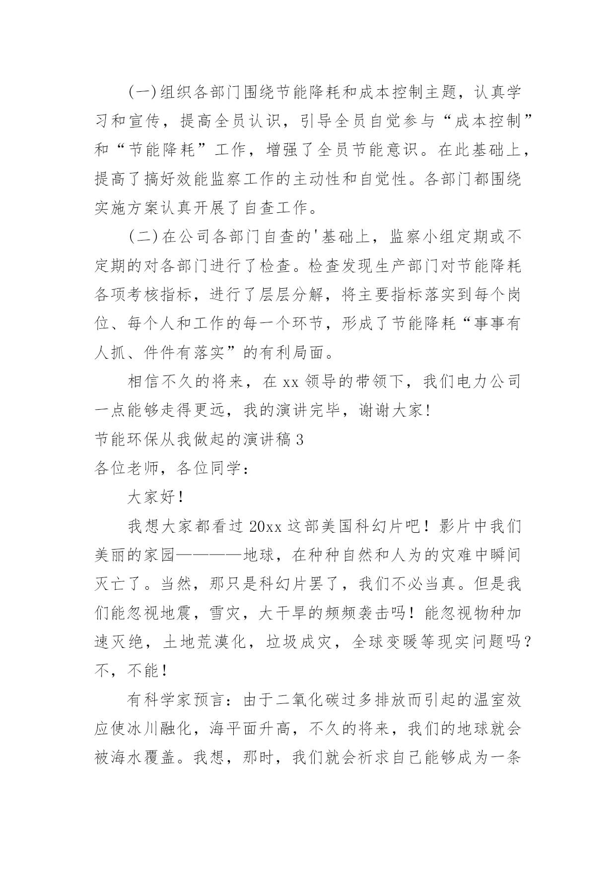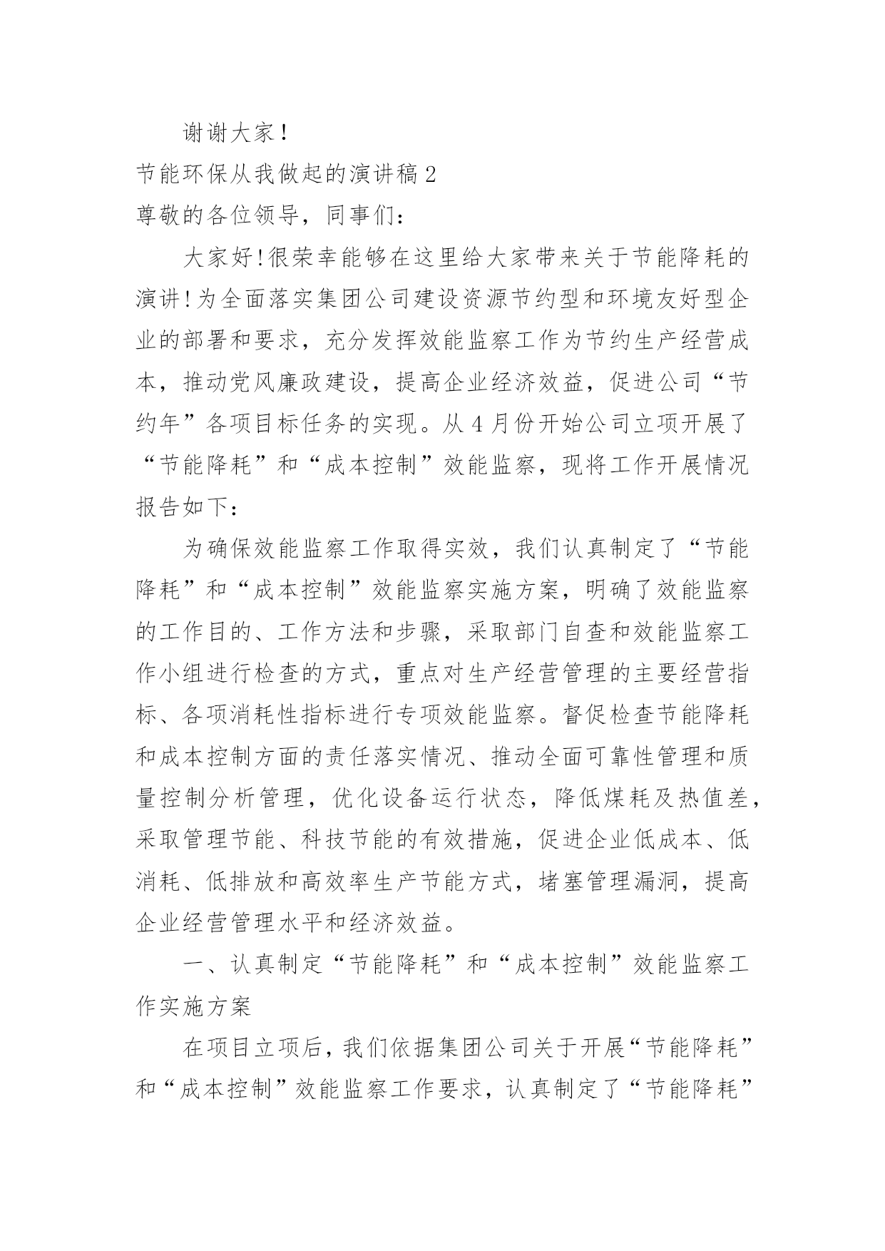 节能环保从我做起的演讲稿节能环保从我做起的演讲稿演讲稿是作为在特定的情境中供口语表达使用的文稿。随着社会不断地进步,越来越多地方需要用到演讲稿,为了让您在写演讲稿时更加简单方便,以下是小编为大家整理的节能环保从我做起的演讲稿,希望对大家有所帮助。节能环保从我做起的演讲稿1尊敬的老师,亲爱的同学:大家好!今天,我走上讲台演讲的题目是:“节能环保从我做起”。如今,地球能源正在悄悄地减少,水资源、土地资源相继被列入被保护资源的行列中,物急剧上涨,给许多特贫户增加了负担.其实,这样的恶性循环是由人类造成的,最后又回到了我们这里,接着再循环……对于这一循环我不否认人们需要资源维持生活,但是需要奢侈地用吗?我想并不需要吧.可是生活中还是有许多人胡乱浪费,矿产资源的日益枯竭就是一例。煤是大家都很熟悉的一种矿物.说起煤,大家肯定会不屑一顾地说:“煤有什么好的,不就是黑乎乎的可以燃烧嘛!”其实煤也是来之不易的.埋在地下的`古代植物,在高温、高压下经历了一系列复杂的化学变化,最终才形成了我们人类今天使用的煤.这么说来,煤是非常珍贵喽?当然,如果我们地球上的煤用尽要经过几十万年甚至几百万年才能形成下一批煤.虽然煤的资源还算充裕但是要供给我们几十、几百万年似乎是不太可能的,然而现在有大量的发电站和工厂需要非常多的煤,就连制造塑料袋都需要用煤,可想而知,在这几十几百万年中,我们要度过多少个“无煤春秋”呀!现在过安乐生活的你,能想出当人类无煤时,地球上会变成怎么样吗?地球上不仅缺煤,连石油也无一幸免.现在食用油价格高涨,令许多家庭“望价生畏”,一些有车的上班族也把爱车“养置屋内”牺牲双脚,走路上班.这也是在警示我们要节能.石油是湖泊、海洋里的生物死后被水底泥沙所覆盖,经过千百万年的复杂变化才会形成.如果地球上真的没有油了,我想人类又得恢复到原始步行时代了.想想看,如果石油再这样消耗下去,马路上会怎么样?那些车又会怎么样?地球上不止只有这两种矿物需要保护,还有许多也离绝迹不远了。我曾经看到一张表格,上面显示我国铁可开发年限为100年,锌、锡、钨为40~50年,银、铅、锰、铝为20~30年,多么触目惊心的数字呀!要知道,这都是我们一些常用的矿物呀!看了上面的例子,人人都胆战心惊,似乎离世界末日不远了.其实,只要我们多回收、多利用,注意节约,不奢侈,就一定可以挽回一些资源,让我们来帮助地球母亲减轻负担吧!谢谢大家!节能环保从我做起的演讲稿2尊敬的各位领导,同事们:大家好!很荣幸能够在这里给大家带来关于节能降耗的演讲!为全面落实集团公司建设资源节约型和环境友好型企业的部署和要求,充分发挥效能监察工作为节约生产经营成本,推动党风廉政建设,提高企业经济效益,促进公司“节约年”各项目标任务的实现。从4月份开始公司立项开展了“节能降耗”和“成本控制”效能监察,现将工作开展情况报告如下:为确保效能监察工作取得实效,我们认真制定了“节能降耗”和“成本控制”效能监察实施方案,明确了效能监察的工作目的、工作方法和步骤,采取部门自查和效能监察工作小组进行检查的方式,重点对生产经营管理的主要经营指标、各项消耗性指标进行专项效能监察。督促检查节能降耗和成本控制方面的责任落实情况、推动全面可靠性管理和质量控制分析管理,优化设备运行状态,降低煤耗及热值差,采取管理节能、科技节能的有效措施,促进企业低成本、低消耗、低排放和高效率生产节能方式,堵塞管理漏洞,提高企业经营管理水平和经济效益。一、认真制定“节能降耗”和“成本控制”效能监察工作实施方案在项目立项后,我们依据集团公司关于开展“节能降耗”和“成本控制”效能监察工作要求,认真制定了“节能降耗”和“成本控制”效能监察工作实施方案。(一)明确了工作目的及意义,即:通过开展“节能降耗”和“成本控制”效能监察,督促检查节能降耗和成本控制方面的责任落实情况、推动全面可靠性管理和质量控制分析管理,优化设备运行状态,降低煤耗及热值差,采取管理节能、科技节能的有效措施,促进企业低收入、低消耗、低排放和高效率生产节能方式,堵塞管理漏洞,提高企业经营管理水平和经济效益。(二)确定了工作方法和步骤,即:宣传阶段(3月1日-4月1日)由各部门组织召开专门会议,学习动员;监察审计部人员深入分场、部门,作具体宣传和要求;自查阶段(4月2日-6月30日)由各部门按实施方案要求“对标、对表、对照”进行认真自查自纠,对自查情况写成书面自查报告报效能监察办公室;检查整改阶段(7月1日-8月31日)在自查基础上,效能监察小组对各部门进行认真检查,对自查不到位和自查中发现问题但没有自我整改的进行重点检查,发现问题和不足,监察审计部发《监察建议书》,限期认真整改。总结提高阶段(9月1日—11月30日)巩固整改成果,总结经验,制定和完善“节能降耗”和“成本控制”相关经济指标,