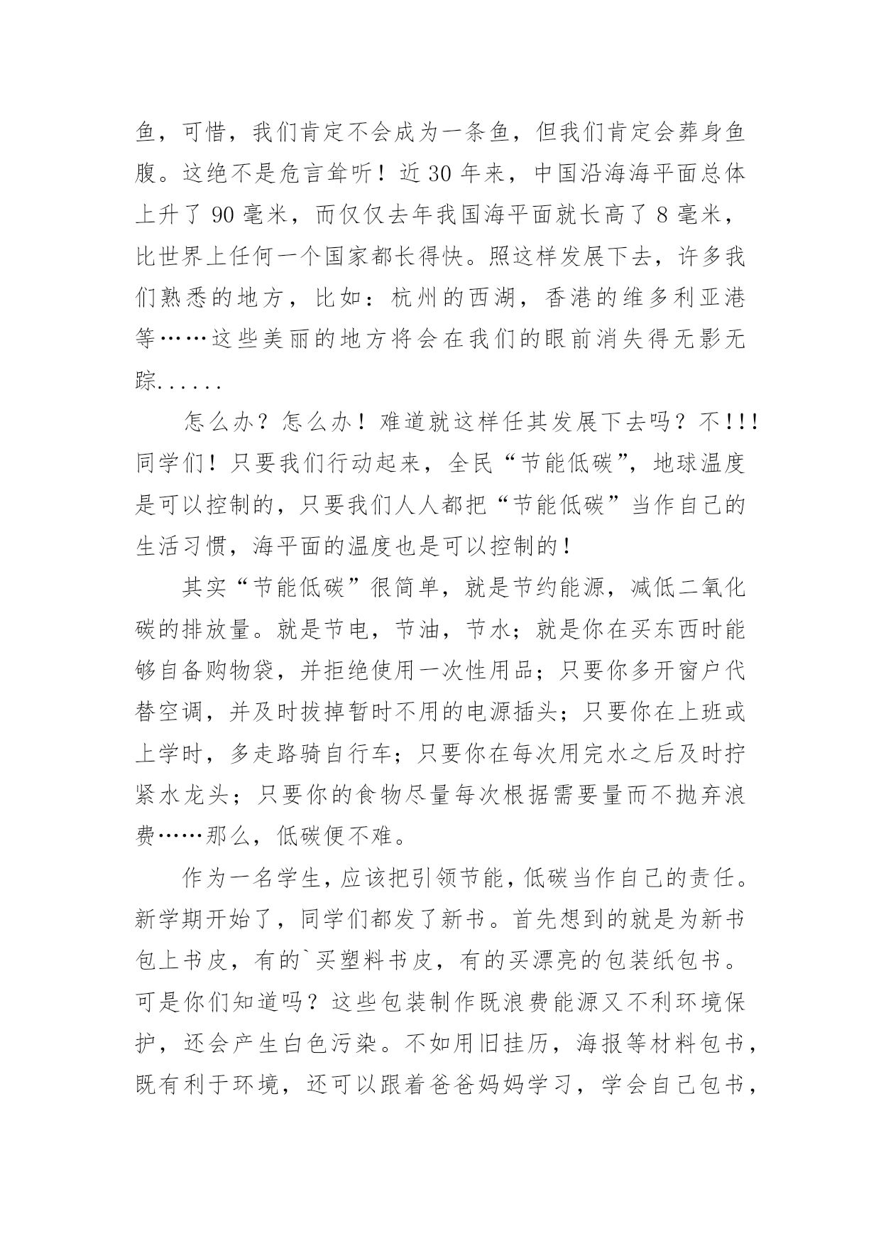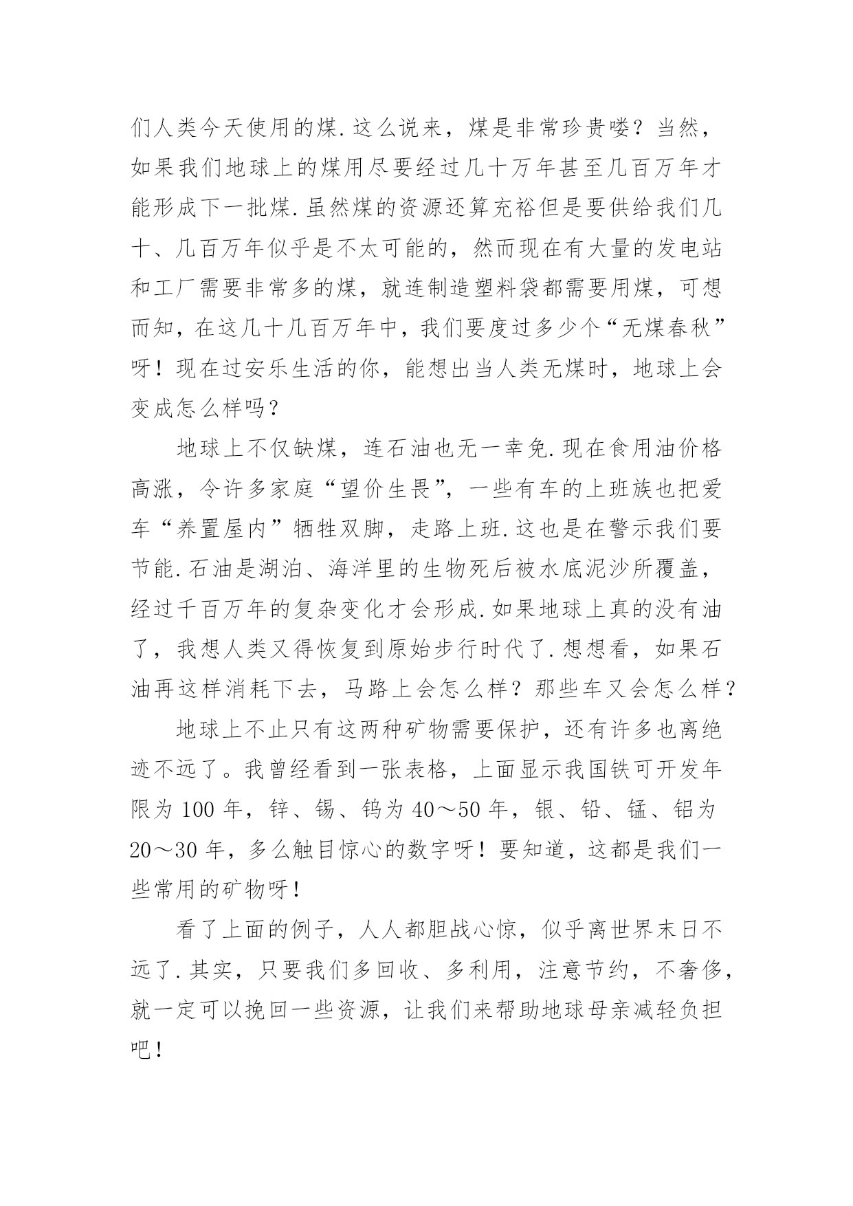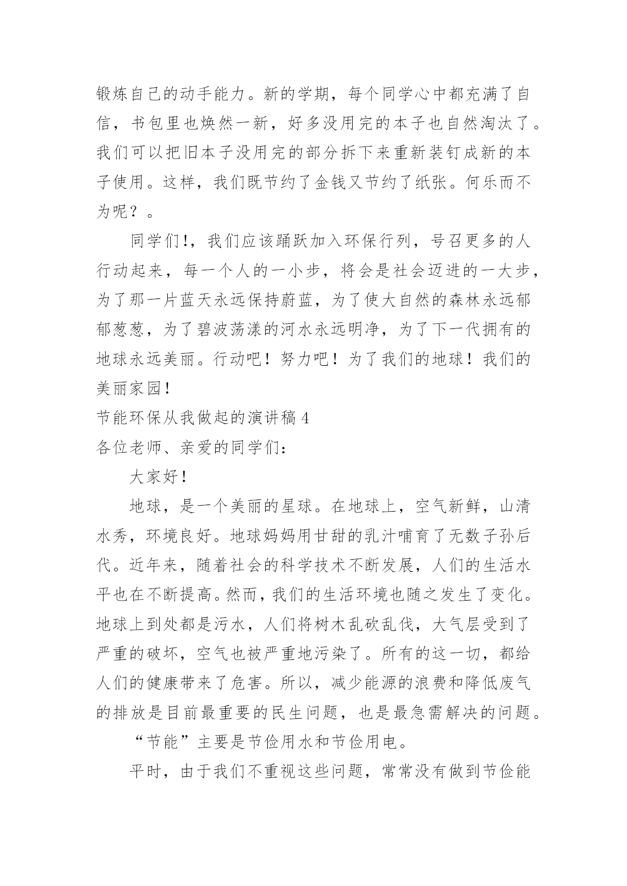 节能环保从我做起的演讲稿节能环保从我做起的演讲稿演讲稿是作为在特定的情境中供口语表达使用的文稿。随着社会不断地进步,越来越多地方需要用到演讲稿,为了让您在写演讲稿时更加简单方便,以下是小编为大家整理的节能环保从我做起的演讲稿,希望对大家有所帮助。节能环保从我做起的演讲稿1尊敬的老师,亲爱的同学:大家好!今天,我走上讲台演讲的题目是:“节能环保从我做起”。如今,地球能源正在悄悄地减少,水资源、土地资源相继被列入被保护资源的行列中,物急剧上涨,给许多特贫户增加了负担.其实,这样的恶性循环是由人类造成的,最后又回到了我们这里,接着再循环……对于这一循环我不否认人们需要资源维持生活,但是需要奢侈地用吗?我想并不需要吧.可是生活中还是有许多人胡乱浪费,矿产资源的日益枯竭就是一例。煤是大家都很熟悉的一种矿物.说起煤,大家肯定会不屑一顾地说:“煤有什么好的,不就是黑乎乎的可以燃烧嘛!”其实煤也是来之不易的.埋在地下的`古代植物,在高温、高压下经历了一系列复杂的化学变化,最终才形成了我们人类今天使用的煤.这么说来,煤是非常珍贵喽?当然,如果我们地球上的煤用尽要经过几十万年甚至几百万年才能形成下一批煤.虽然煤的资源还算充裕但是要供给我们几十、几百万年似乎是不太可能的,然而现在有大量的发电站和工厂需要非常多的煤,就连制造塑料袋都需要用煤,可想而知,在这几十几百万年中,我们要度过多少个“无煤春秋”呀!现在过安乐生活的你,能想出当人类无煤时,地球上会变成怎么样吗?地球上不仅缺煤,连石油也无一幸免.现在食用油价格高涨,令许多家庭“望价生畏”,一些有车的上班族也把爱车“养置屋内”牺牲双脚,走路上班.这也是在警示我们要节能.石油是湖泊、海洋里的生物死后被水底泥沙所覆盖,经过千百万年的复杂变化才会形成.如果地球上真的没有油了,我想人类又得恢复到原始步行时代了.想想看,如果石油再这样消耗下去,马路上会怎么样?那些车又会怎么样?地球上不止只有这两种矿物需要保护,还有许多也离绝迹不远了。我曾经看到一张表格,上面显示我国铁可开发年限为100年,锌、锡、钨为40~50年,银、铅、锰、铝为20~30年,多么触目惊心的数字呀!要知道,这都是我们一些常用的矿物呀!看了上面的例子,人人都胆战心惊,似乎离世界末日不远了.其实,只要我们多回收、多利用,注意节约,不奢侈,就一定可以挽回一些资源,让我们来帮助地球母亲减轻负担吧!谢谢大家!节能环保从我做起的演讲稿2尊敬的各位领导,同事们:大家好!很荣幸能够在这里给大家带来关于节能降耗的演讲!为全面落实集团公司建设资源节约型和环境友好型企业的部署和要求,充分发挥效能监察工作为节约生产经营成本,推动党风廉政建设,提高企业经济效益,促进公司“节约年”各项目标任务的实现。从4月份开始公司立项开展了“节能降耗”和“成本控制”效能监察,现将工作开展情况报告如下:为确保效能监察工作取得实效,我们认真制定了“节能降耗”和“成本控制”效能监察实施方案,明确了效能监察的工作目的、工作方法和步骤,采取部门自查和效能监察工作小组进行检查的方式,重点对生产经营管理的主要经营指标、各项消耗性指标进行专项效能监察。督促检查节能降耗和成本控制方面的责任落实情况、推动全面可靠性管理和质量控制分析管理,优化设备运行状态,降低煤耗及热值差,采取管理节能、科技节能的有效措施,促进企业低成本、低消耗、低排放和高效率生产节能方式,堵塞管理漏洞,提高企业经营管理水平和经济效益。一、认真制定“节能降耗”和“成本控制”效能监察工作实施方案在项目立项后,我们依据集团公司关于开展“节能降耗”和“成本控制”效能监察工作要求,认真制定了“节能降耗”和“成本控制”效能监察工作实施方案。(一)明确了工作目的及意义,即:通过开展“节能降耗”和“成本控制”效能监察,督促检查节能降耗和成本控制方面的责任落实情况、推动全面可靠性管理和质量控制分析管理,优化设备运行状态,降低煤耗及热值差,采取管理节能、科技节能的有效措施,促进企业低收入、低消耗、低排放和高效率生产节能方式,堵塞管理漏洞,提高企业经营管理水平和经济效益。(二)确定了工作方法和步骤,即:宣传阶段(3月1日-4月1日)由各部门组织召开专门会议,学习动员;监察审计部人员深入分场、部门,作具体宣传和要求;自查阶段(4月2日-6月30日)由各部门按实施方案要求“对标、对表、对照”进行认真自查自纠,对自查情况写成书面自查报告报效能监察办公室;检查整改阶段(7月1日-8月31日)在自查基础上,效能监察小组对各部门进行认真检查,对自查不到位和自查中发现问题但没有自我整改的进行重点检查,发现问题和不足,监察审计部发《监察建议书》,限期认真整改。总结提高阶段(9月1日—11月30日)巩固整改成果,总结经验,制定和完善“节能降耗”和“成本控制”相关经济指标,