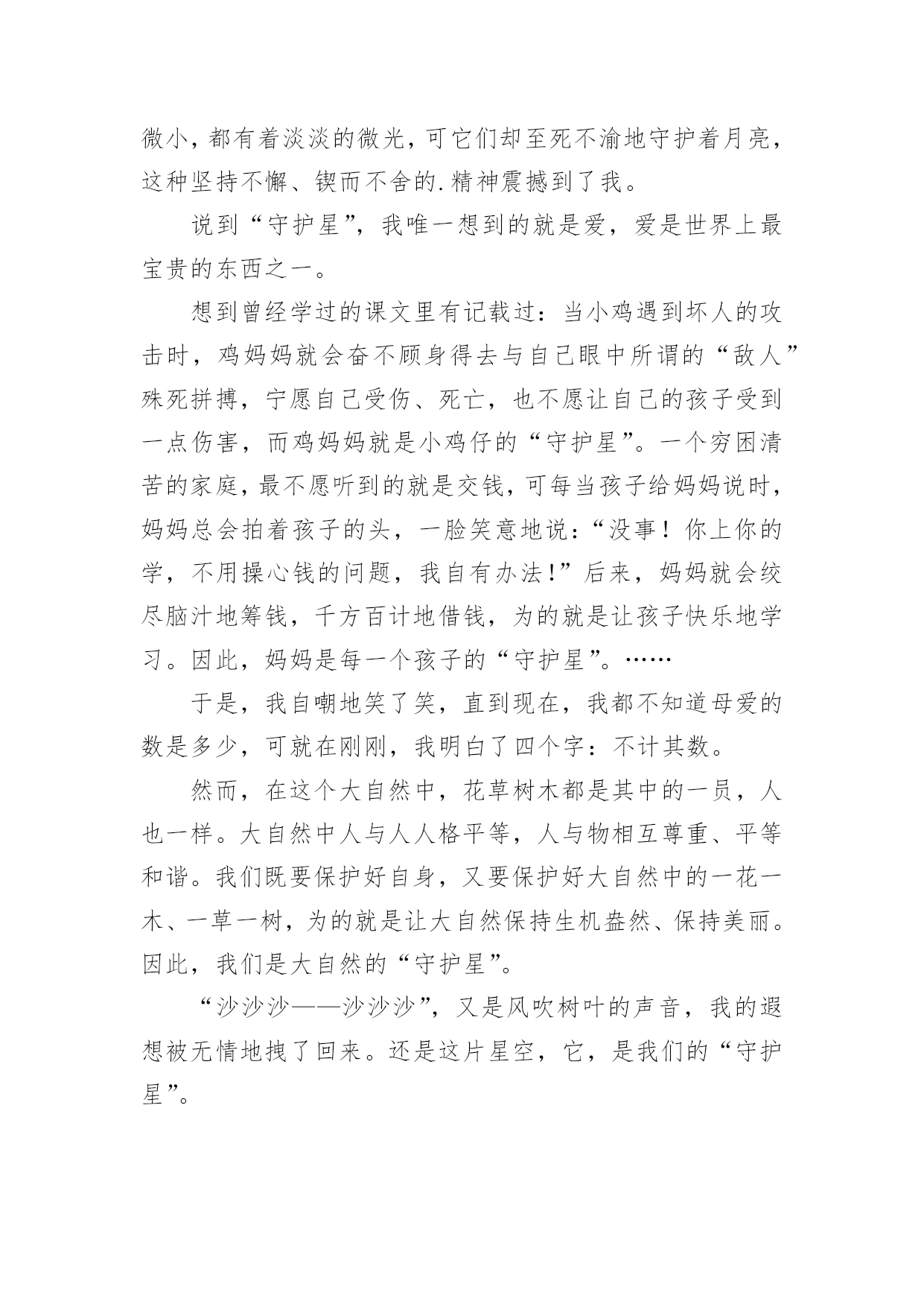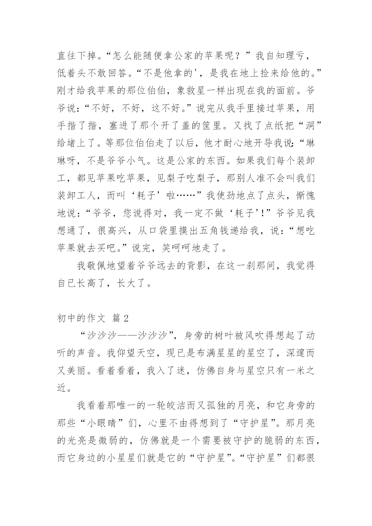 初中的作文在学习、工作、生活中,大家都经常看到作文的身影吧,作文是人们把记忆中所存储的有关知识、经验和思想用书面形式表达出来的记叙方式。那么问题来了,到底应如何写一篇优秀的作文呢?以下是小编为大家整理的初中的作文4篇,仅供参考,希望能够帮助到大家。初中的作文篇1我的爷爷是个装卸工人。他的背有些驼,但骨架还是显得很硬朗。额上一道道饱经风霜的皱纹象被刀子刻上去似的,黑黑的脸膛上一双有神的眼睛显得格外慈祥。爷爷工作几十年了,从没沾过国家一丝丝东西。那天,我到爷爷搞装卸的地方去玩,看见一筐筐苹果堆得象小山一样。爷爷和工人们正一筐一筐地往车上搬。正当爷爷扛着一筐踩上踏板的时候,从他肩上的筐里滴溜溜地滚下两个苹果。红红的天苹果,真惹人喜爱呀!我向前移了一步,可又马上退回来了。我怕爷爷驾。这时,一位伯伯走了过来,用手指了指地上的苹果,意思是叫我捡起来,我摇了摇头。他勾腰捡了起来,递到我手里。我犹豫了一下,还是接了。“琳琳,那是什么?”爷爷看见了苹果,严厉地问。“不,不是我……”我慌了神,不匆道为什么这样说。“明明拿在你手上杯还说不是你里”爷爷朝我走来,板着脸,眼光象剑一样逼人。我从来没有看见爷爷这样凶过,吓得眼泪直往下掉。“怎么能随便拿公家的苹果呢?”我自知理亏,低着头不敢回答。“不是他拿的',是我在地上捡来给他的。”刚才给我苹果的那位伯伯,象救星一样出现在我的面前。爷爷说:“不好,不好,这不好。”说完从我手里接过苹果,用手揩了揩,塞进了那个开了盖的筐里。又找了点纸把“洞”给堵上了。等那位伯伯走了以后,他才耐心地开导我说:“琳琳呀,不是爷爷小气。这是公家的东西。如果我们每个装卸工,都见苹果吃苹果,见梨子吃梨子,那别人准不会叫我们装卸工人,而叫‘耗子’啦……”我使劲地点了点头,惭愧地说:“爷爷,您说得对,我一定不做‘耗子’!”爷爷见我想通了,很高兴,从口袋里摸出五角钱递给我,说:“想吃苹果就去买吧。”说完,笑呵呵地走了。我敬佩地望着爷爷远去的背影,在这一刹那间,我觉得自已长高了,长大了。初中的作文篇2“沙沙沙——沙沙沙”,身旁的树叶被风吹得想起了动听的声音。我仰望天空,现已是布满星星的星空了,深邃而又美丽。看着看着,我入了迷,仿佛自身与星空只有一米之近。我看着那唯一的一轮皎洁而又孤独的月亮,和它身旁的那些“小眼睛”们,心里不由得想到了“守护星”。那月亮的光亮是微弱的,仿佛就是一个需要被守护的脆弱的东西,而它身边的小星星们就是它的“守护星”。“守护星”们都很微小,都有着淡淡的微光,可它们却至死不渝地守护着月亮,这种坚持不懈、锲而不舍的.精神震撼到了我。说到“守护星”,我唯一想到的就是爱,爱是世界上最宝贵的东西之一。想到曾经学过的课文里有记载过:当小鸡遇到坏人的攻击时,鸡妈妈就会奋不顾身得去与自己眼中所谓的“敌人”殊死拼搏,宁愿自己受伤、死亡,也不愿让自己的孩子受到一点伤害,而鸡妈妈就是小鸡仔的“守护星”。一个穷困清苦的家庭,最不愿听到的就是交钱,可每当孩子给妈妈说时,妈妈总会拍着孩子的头,一脸笑意地说:“没事!你上你的学,不用操心钱的问题,我自有办法!”后来,妈妈就会绞尽脑汁地筹钱,千方百计地借钱,为的就是让孩子快乐地学习。因此,妈妈是每一个孩子的“守护星”。……于是,我自嘲地笑了笑,直到现在,我都不知道母爱的数是多少,可就在刚刚,我明白了四个字:不计其数。然而,在这个大自然中,花草树木都是其中的一员,人也一样。大自然中人与人人格平等,人与物相互尊重、平等和谐。我们既要保护好自身,又要保护好大自然中的一花一木、一草一树,为的就是让大自然保持生机盎然、保持美丽。因此,我们是大自然的“守护星”。“沙沙沙——沙沙沙”,又是风吹树叶的声音,我的遐想被无情地拽了回来。还是这片星空,它,是我们的“守护星”。初中的作文篇3闭上眼睛,仔细聆听,用心品味,每个季节的雨都是一首歌,而在每个季节听雨都有着别样的心情。春雨淅淅沥沥地下着,那么悠扬,那么婉转,像一首宋词元曲,甜蜜中带着春的暖意。温柔的滋润着大地,复苏了万物,春雨来了,麦苗返青,菜花泛黄,垂柳挂绿,你看那根根透明的银线,不正是天地间的琴弦吗?风的纤纤玉指轻轻拨动着雨丝,触动了我的心。我喜爱温柔多情的雨。夏雨伴随着电闪雷鸣如竹筒倒豆子般倾泻而下,从你的头顶直淋到脚跟。夏雨就是这样调皮,常给没带伞的你来个突然袭击。当你变成落汤鸡后,可别气恼,先静下来作深呼吸,是否有一股泥土的.清香扑鼻而来?是否有一股润湿的凉气沁入你的心脾?夏雨清爽,就像带着薄荷味的清凉油,更像喝着一碗冰镇的酸梅汤。我爱匆急热情的雨。天高云淡,大雁南飞。我的脑海中似乎没有秋雨的印象,只是依稀记得它柔柔的飘落在湖光山色中,秋雨能勾起人的愁思,万籁俱寂的秋夜,秋雨为本已寂寥的秋日增添了一丝惆怅。但在我的内心深处,只知道秋天是个收获的季节,而秋