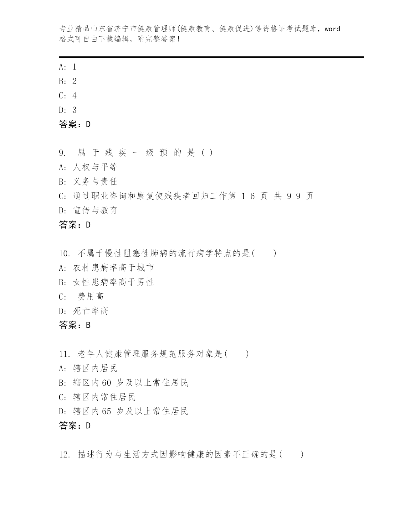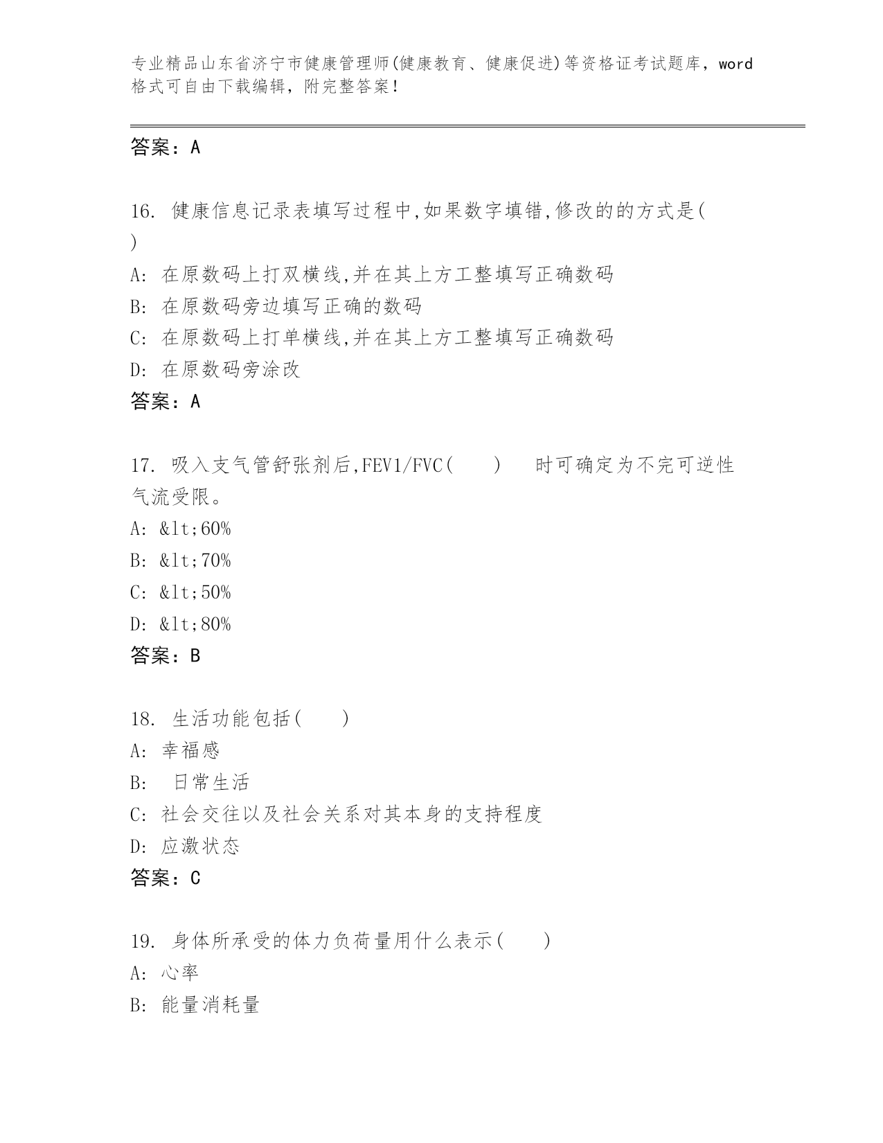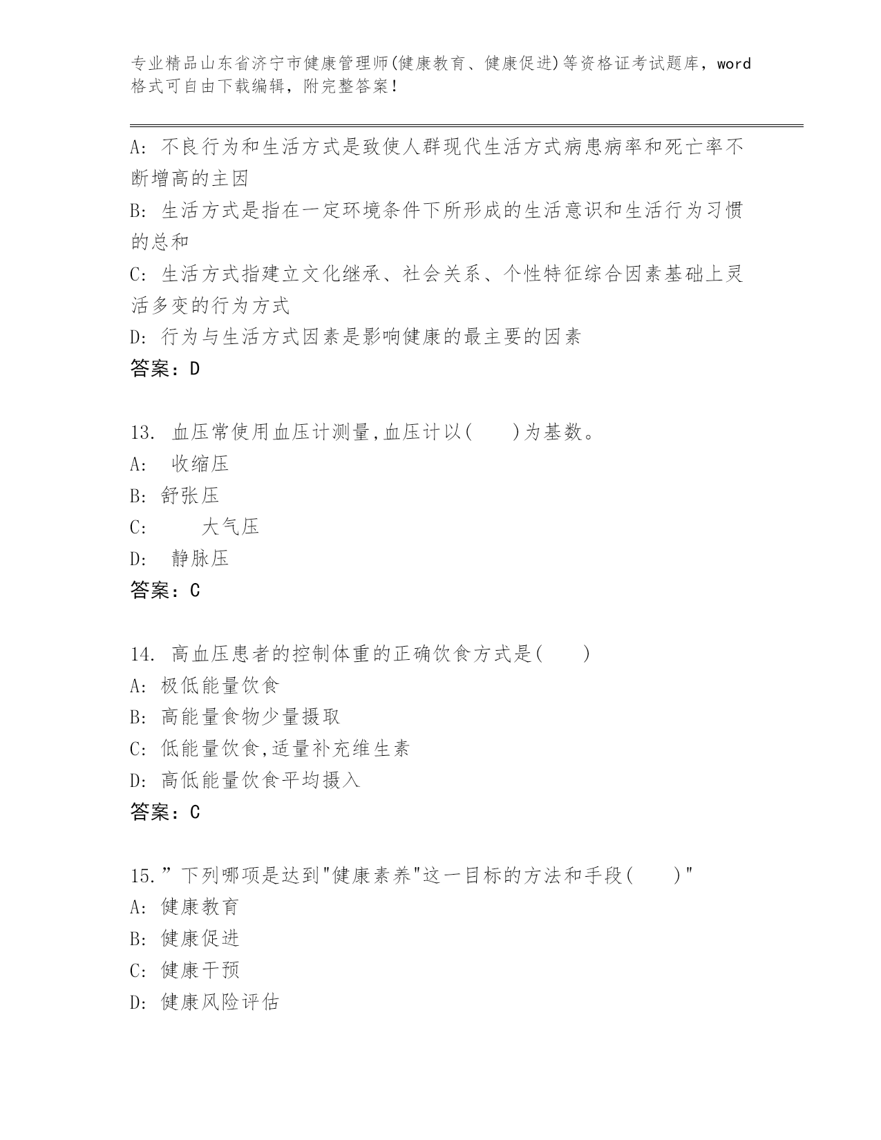精品山东省济宁市健康管理师(健康教育、健康促进)等资格证考试真题【原创题】