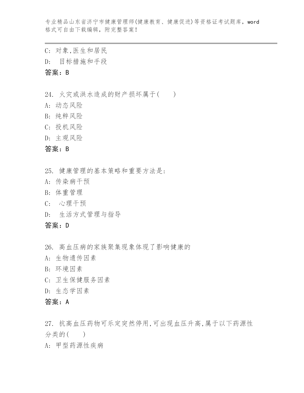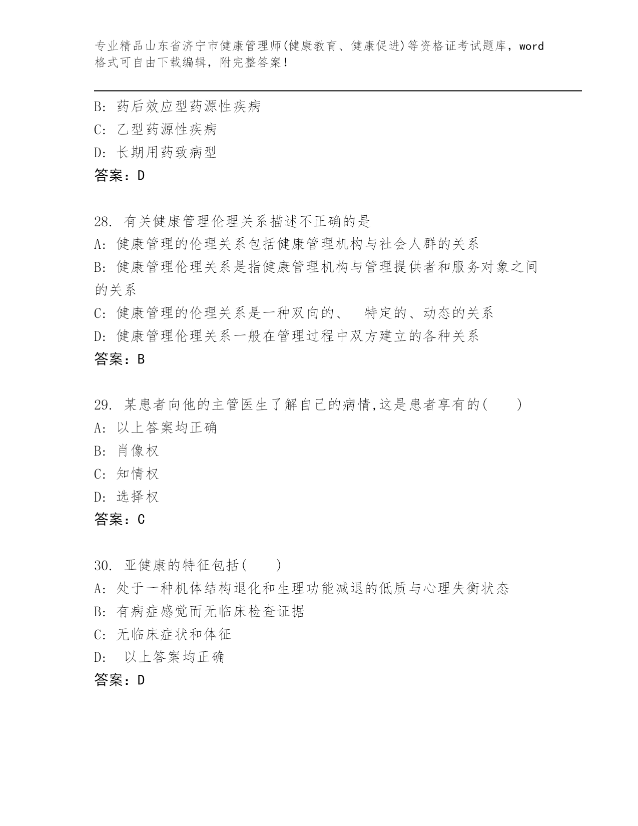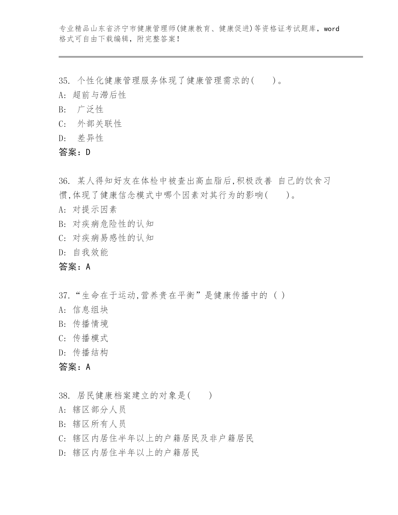 精品山东省济宁市健康管理师(健康教育、健康促进)等资格证考试真题【原创题】