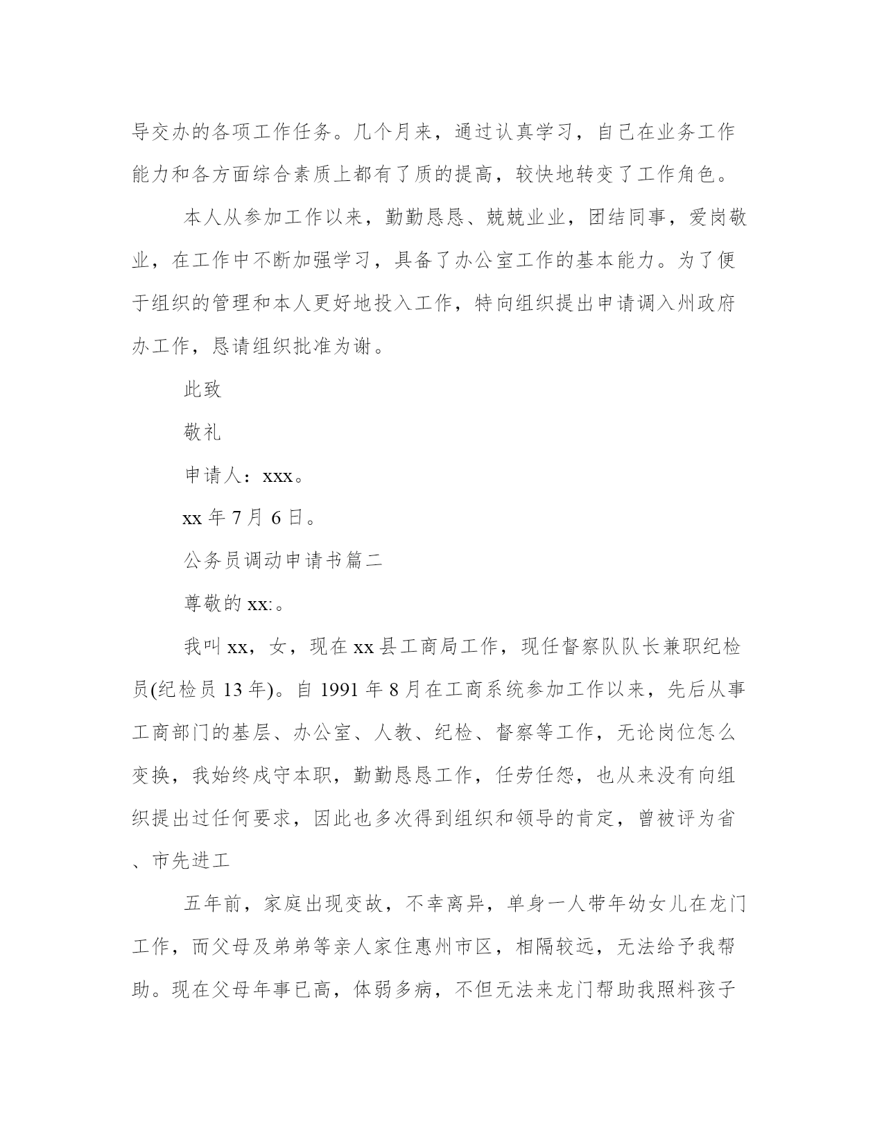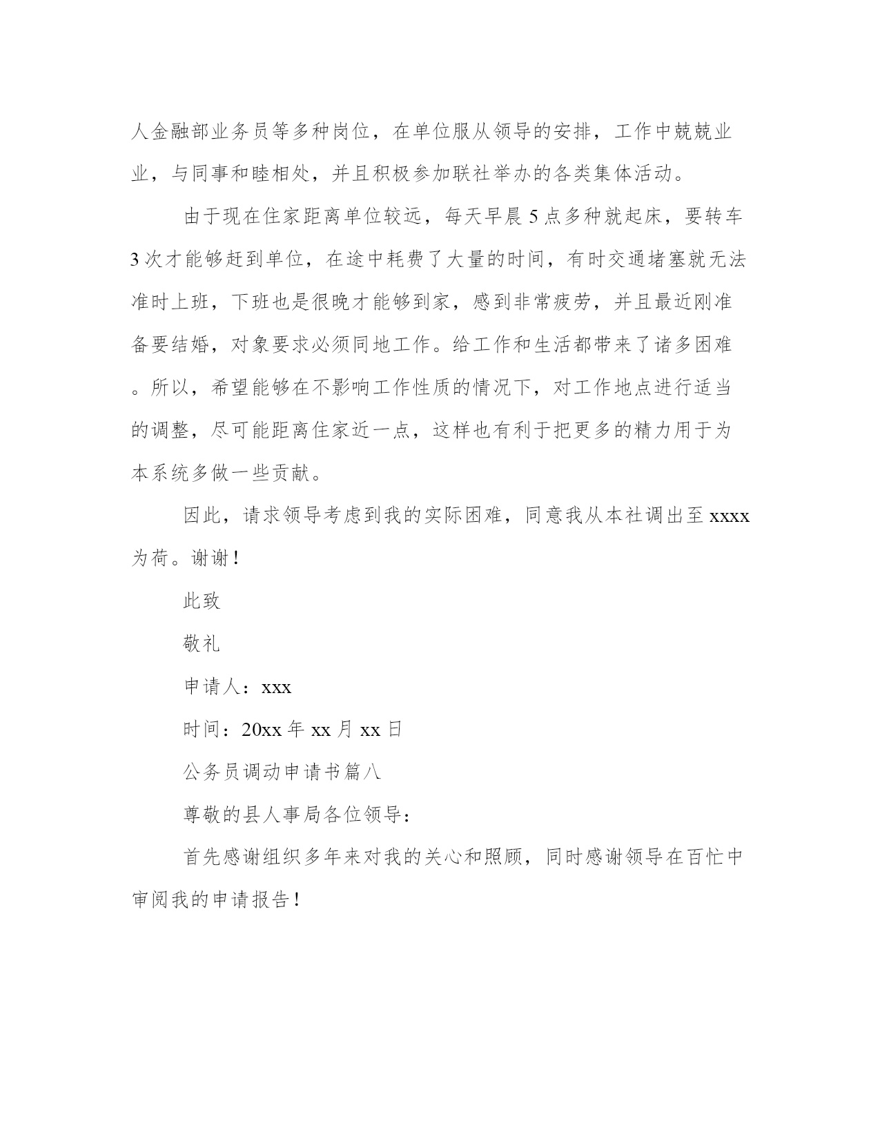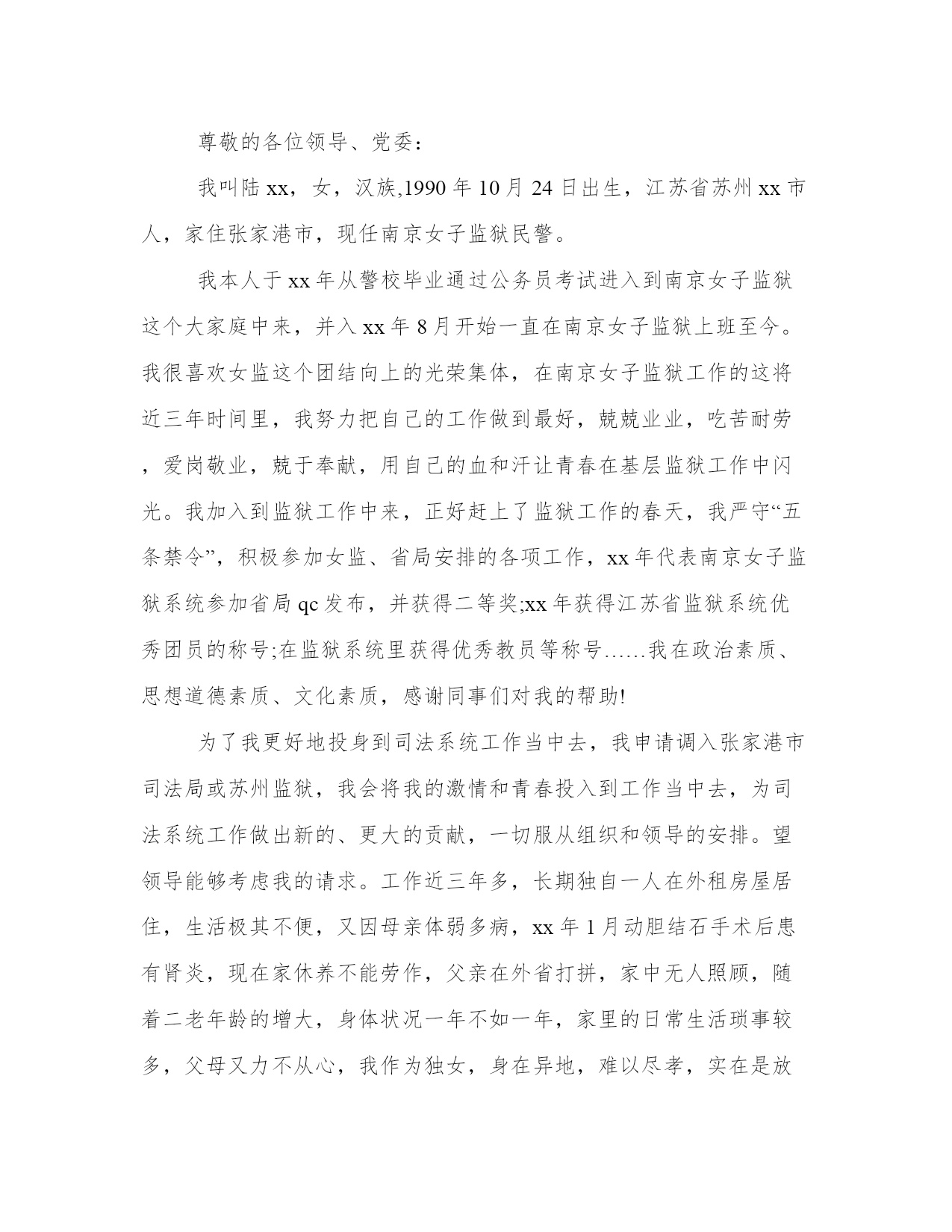 公务员调动申请书(模板16篇)总结不仅是对过去的回顾,更是对未来的规划和展望。有效的情感表达可以帮助我们与他人更好地沟通和理解。大家可以通过阅读范文,了解总结的基本要素和结构,提高自己的总结能力和水平。公务员调动申请书篇一市人民政府办公室党组:我叫xxx,男,侗族,中共预备党员,大学文化,1979年1月19日生于xx黎平。我于xx年7月毕业于xx民族学院中文系,xx年8月—xx年1月,在xx县一中工作,担任高一年级的语文教师,负责两个班的语文教学,并担任一个班的班主任。xx年1月后,在xx县人民政府办公室工作。先后做信息工作和农口工作,并先后担任信息股股长和农业股股长职务。同年参加xx省省、市、县、乡四级机关统一公开招考国家公务员考试,被顺利录取成为一名国家公务员。xx年7月至今,在州人民政府办公室秘书四科挂职学习。在州政府办公室学习期间,在办公室领导的关心和帮助下,自觉坚持基本理论和基本知识的学习,尽职尽责,尽心尽力地努力工作,认真做好办公室的日常公文处理和会务工作的.准备,保证了公文的准确、及时、有序运转和各种会议的有序进行;作好领导的参谋和助手,努力完成领导交办的各项工作任务。几个月来,通过认真学习,自己在业务工作能力和各方面综合素质上都有了质的提高,较快地转变了工作角色。本人从参加工作以来,勤勤恳恳、兢兢业业,团结同事,爱岗敬业,在工作中不断加强学习,具备了办公室工作的基本能力。为了便于组织的管理和本人更好地投入工作,特向组织提出申请调入州政府办工作,恳请组织批准为谢。此致敬礼申请人:xxx。xx年7月6日。公务员调动申请书篇二尊敬的xx:。我叫xx,女,现在xx县工商局工作,现任督察队队长兼职纪检员(纪检员13年)。自1991年8月在工商系统参加工作以来,先后从事工商部门的基层、办公室、人教、纪检、督察等工作,无论岗位怎么变换,我始终戍守本职,勤勤恳恳工作,任劳任怨,也从来没有向组织提出过任何要求,因此也多次得到组织和领导的肯定,曾被评为省、市先进工五年前,家庭出现变故,不幸离异,单身一人带年幼女儿在龙门工作,而父母及弟弟等亲人家住惠州市区,相隔较远,无法给予我帮助。现在父母年事已高,体弱多病,不但无法来龙门帮助我照料孩子,而且还需要子女的`照顾。几年来,我一直自己带着孩子生活,天天需要接送上学,风雨无阻;一日三餐,晚间辅导,沟通学校,看病就医,事事离不开我;有时晚上加班到很晚,年幼无知的孩子独自一人在家,家用电器较多,社会环境较乱,一旦有事,后果不堪设想,安全问题着实让人提心吊胆;有时加班回家,孩子自己躺在沙发上酣睡,第二天又要感冒打针,给工作和生活带来了更大的压力。长期以来,我一直在生活、工作和家庭之间奔波忙碌,疲倦之极,实在难以支撑。如果能够调动到离亲人较近的地方工作,老人亲属能够帮助照料孩子,上学就医也能接接送送,这些困难将迎刃而解,也有利于更好地全力以赴投入工作。孩子小,身体弱,经常生病,孩子住院就医,连个轮流照看的亲人也没有,只能一个人完全承担所有的义务,分散了精力,占用了太多的时间,也给工作带来诸多不便。为了解决家庭实际困难,免除后顾之忧,更好的投身工作,特向领导提出申请,将本人调到离亲人较近的地方工作。敬请领导特殊情况特殊照顾,批准我的要求。不胜感激!此致敬礼!申请人:20xx年xx月xx日。公务员调动申请书篇三尊敬的各位领导、党委:我叫陆xx,女,汉族,1990年10月24日出生,江苏省苏州xx市人,家住张家港市,现任南京女子监狱民警。我本人于xx年从警校毕业通过公务员考试进入到南京女子监狱这个大家庭中来,并入xx年8月开始一直在南京女子监狱上班至今。我很喜欢女监这个团结向上的光荣集体,在南京女子监狱工作的这将近三年时间里,我努力把自己的工作做到最好,兢兢业业,吃苦耐劳,爱岗敬业,兢于奉献,用自己的血和汗让青春在基层监狱工作中闪光。我加入到监狱工作中来,正好赶上了监狱工作的春天,我严守“五条禁令”,积极参加女监、省局安排的各项工作,xx年代表南京女子监狱系统参加省局qc发布,并获得二等奖;xx年获得江苏省监狱系统优秀团员的称号;在监狱系统里获得优秀教员等称号……我在政治素质、思想道德素质、文化素质,感谢同事们对我的帮助!为了我更好地投身到司法系统工作当中去,我申请调入张家港市司法局或苏州监狱,我会将我的激情和青春投入到工作当中去,为司法系统工作做出新的、更大的贡献,一切服从组织和领导的安排。望领导能够考虑我的请求。工作近三年多,长期独自一人在外租房屋居住,生活极其不便,又因母亲体弱多病,xx年1月动胆结石手术后患有肾炎,现在家休养不能劳作,父亲在外省打拼,家中无人照顾,随着二老年龄的增大,身体状况一年不如一年,家里的日常生活琐事较多,父母又力