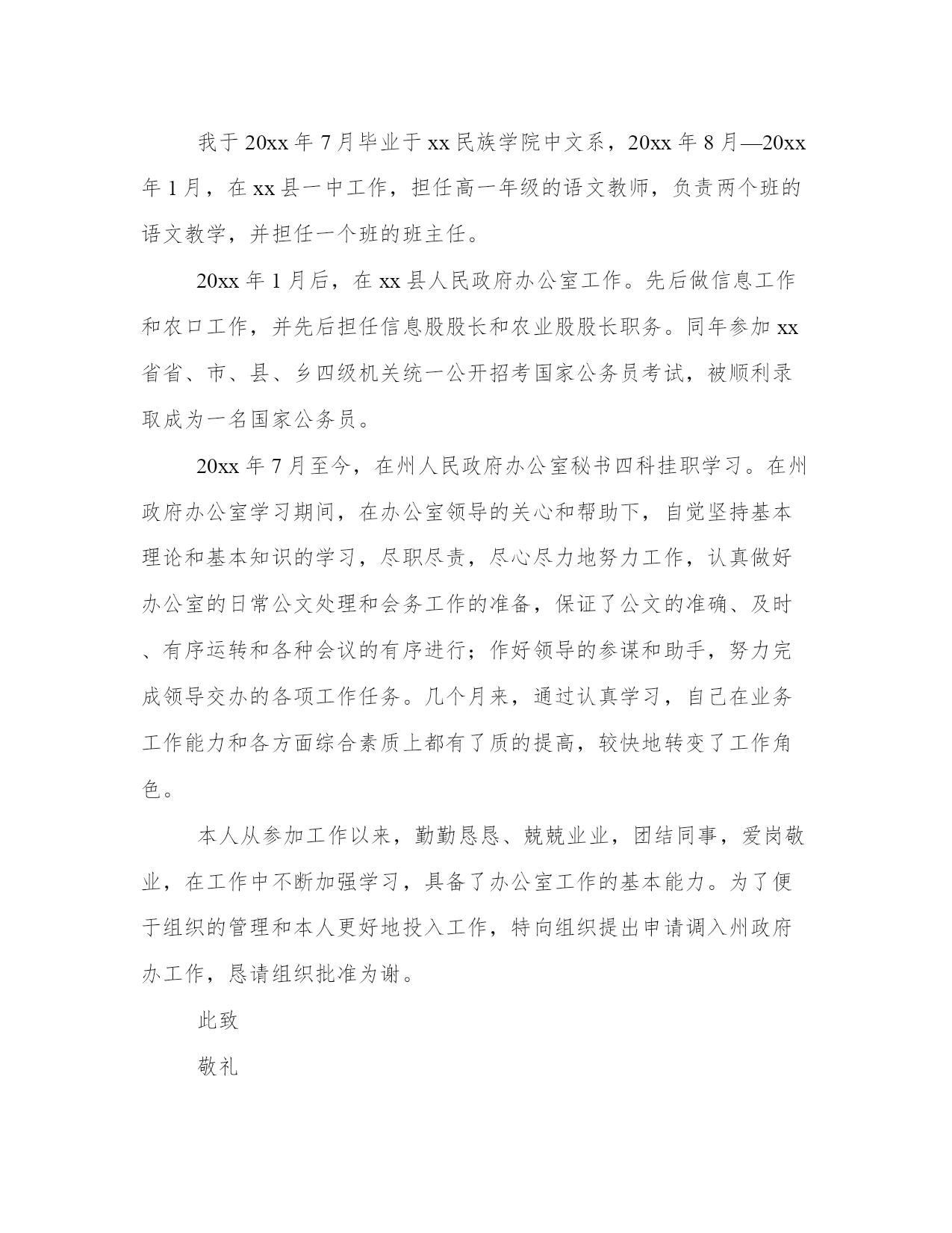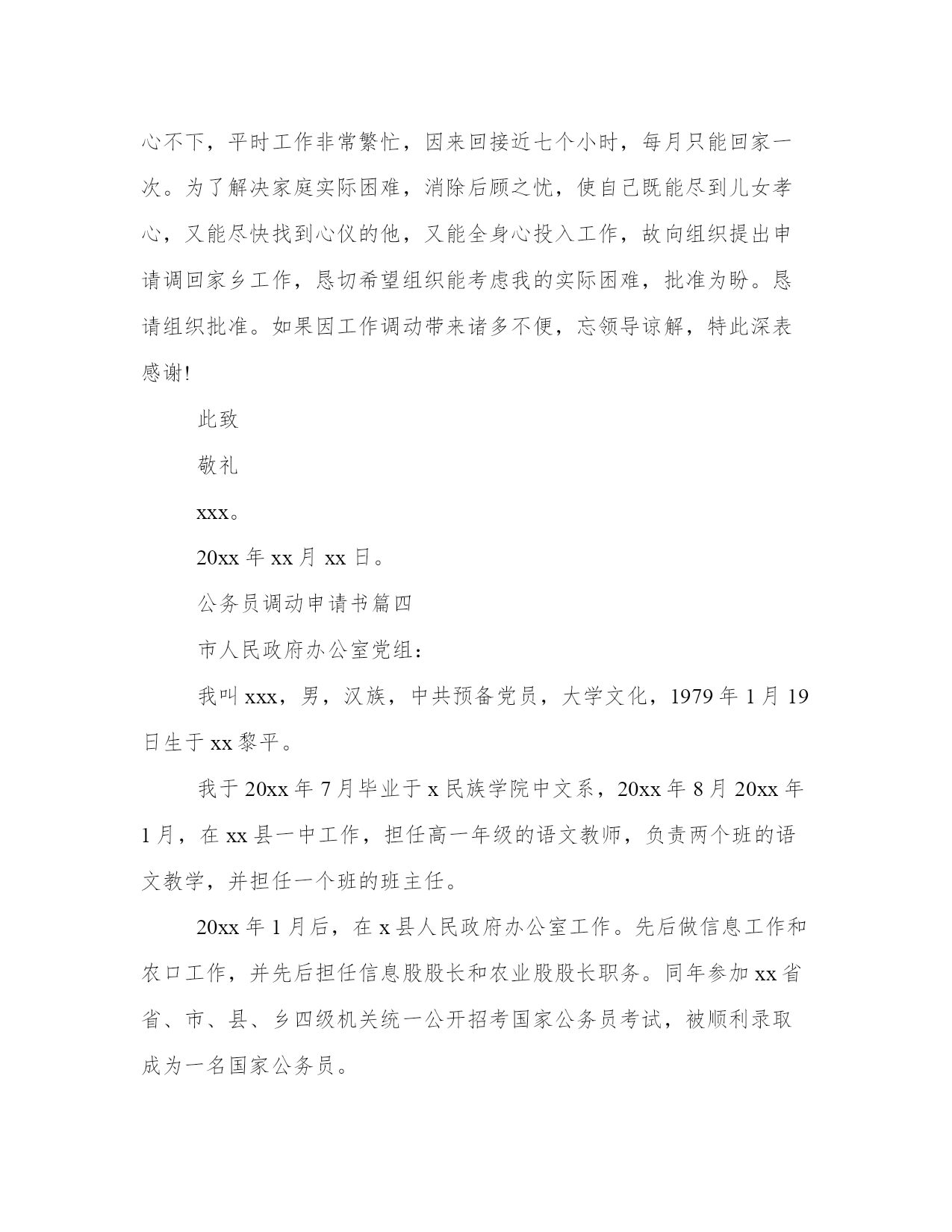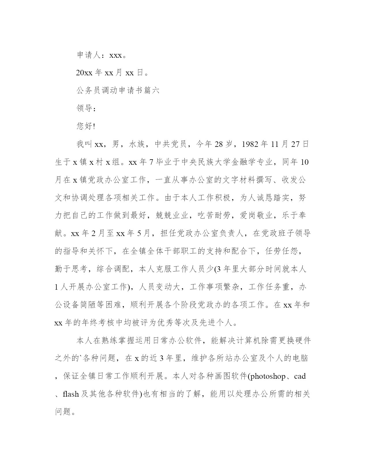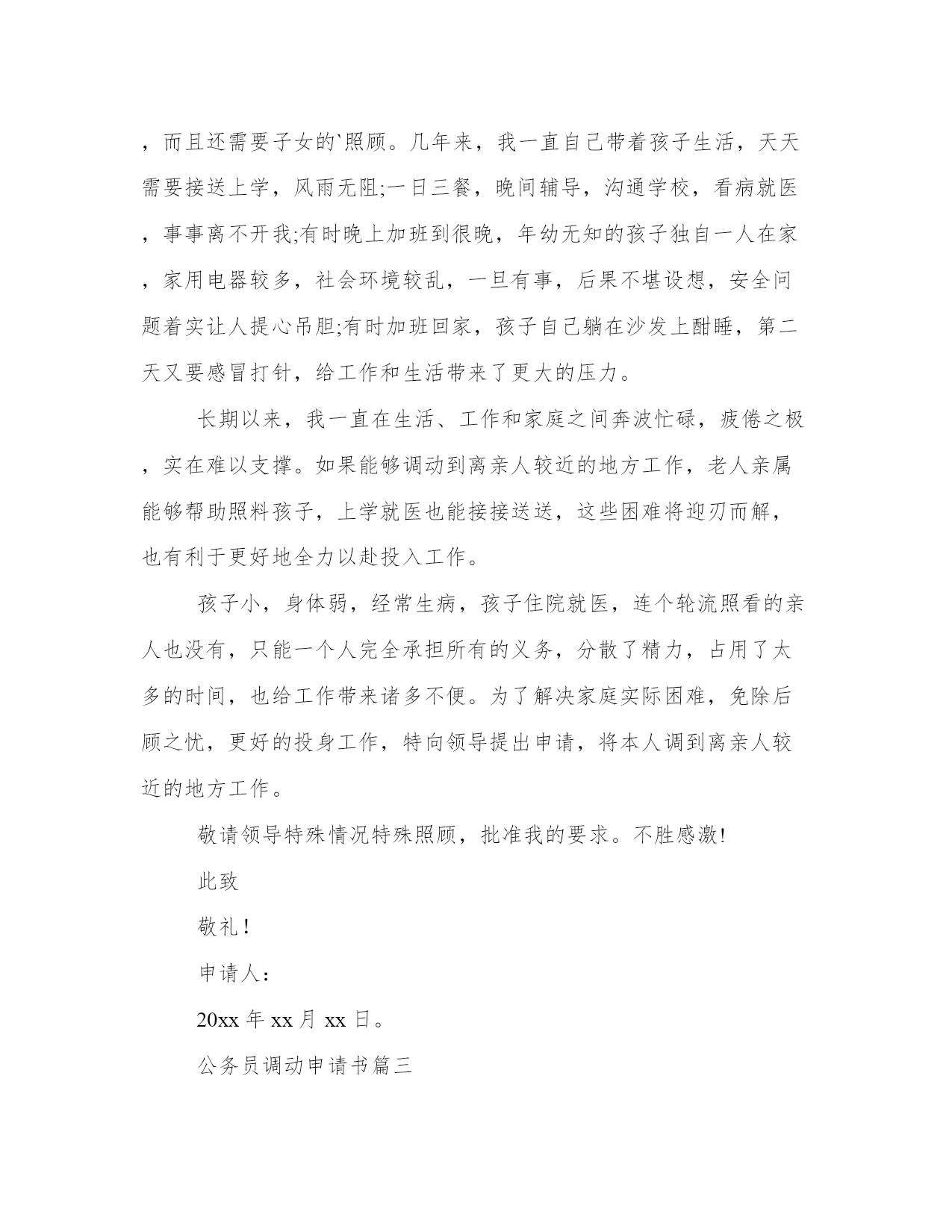 公务员调动申请书(模板16篇)总结不仅是对过去的回顾,更是对未来的规划和展望。有效的情感表达可以帮助我们与他人更好地沟通和理解。大家可以通过阅读范文,了解总结的基本要素和结构,提高自己的总结能力和水平。公务员调动申请书篇一市人民政府办公室党组:我叫xxx,男,侗族,中共预备党员,大学文化,1979年1月19日生于xx黎平。我于xx年7月毕业于xx民族学院中文系,xx年8月—xx年1月,在xx县一中工作,担任高一年级的语文教师,负责两个班的语文教学,并担任一个班的班主任。xx年1月后,在xx县人民政府办公室工作。先后做信息工作和农口工作,并先后担任信息股股长和农业股股长职务。同年参加xx省省、市、县、乡四级机关统一公开招考国家公务员考试,被顺利录取成为一名国家公务员。xx年7月至今,在州人民政府办公室秘书四科挂职学习。在州政府办公室学习期间,在办公室领导的关心和帮助下,自觉坚持基本理论和基本知识的学习,尽职尽责,尽心尽力地努力工作,认真做好办公室的日常公文处理和会务工作的.准备,保证了公文的准确、及时、有序运转和各种会议的有序进行;作好领导的参谋和助手,努力完成领导交办的各项工作任务。几个月来,通过认真学习,自己在业务工作能力和各方面综合素质上都有了质的提高,较快地转变了工作角色。本人从参加工作以来,勤勤恳恳、兢兢业业,团结同事,爱岗敬业,在工作中不断加强学习,具备了办公室工作的基本能力。为了便于组织的管理和本人更好地投入工作,特向组织提出申请调入州政府办工作,恳请组织批准为谢。此致敬礼申请人:xxx。xx年7月6日。公务员调动申请书篇二尊敬的xx:。我叫xx,女,现在xx县工商局工作,现任督察队队长兼职纪检员(纪检员13年)。自1991年8月在工商系统参加工作以来,先后从事工商部门的基层、办公室、人教、纪检、督察等工作,无论岗位怎么变换,我始终戍守本职,勤勤恳恳工作,任劳任怨,也从来没有向组织提出过任何要求,因此也多次得到组织和领导的肯定,曾被评为省、市先进工五年前,家庭出现变故,不幸离异,单身一人带年幼女儿在龙门工作,而父母及弟弟等亲人家住惠州市区,相隔较远,无法给予我帮助。现在父母年事已高,体弱多病,不但无法来龙门帮助我照料孩子,而且还需要子女的`照顾。几年来,我一直自己带着孩子生活,天天需要接送上学,风雨无阻;一日三餐,晚间辅导,沟通学校,看病就医,事事离不开我;有时晚上加班到很晚,年幼无知的孩子独自一人在家,家用电器较多,社会环境较乱,一旦有事,后果不堪设想,安全问题着实让人提心吊胆;有时加班回家,孩子自己躺在沙发上酣睡,第二天又要感冒打针,给工作和生活带来了更大的压力。长期以来,我一直在生活、工作和家庭之间奔波忙碌,疲倦之极,实在难以支撑。如果能够调动到离亲人较近的地方工作,老人亲属能够帮助照料孩子,上学就医也能接接送送,这些困难将迎刃而解,也有利于更好地全力以赴投入工作。孩子小,身体弱,经常生病,孩子住院就医,连个轮流照看的亲人也没有,只能一个人完全承担所有的义务,分散了精力,占用了太多的时间,也给工作带来诸多不便。为了解决家庭实际困难,免除后顾之忧,更好的投身工作,特向领导提出申请,将本人调到离亲人较近的地方工作。敬请领导特殊情况特殊照顾,批准我的要求。不胜感激!此致敬礼!申请人:20xx年xx月xx日。公务员调动申请书篇三尊敬的各位领导、党委:我叫陆xx,女,汉族,1990年10月24日出生,江苏省苏州xx市人,家住张家港市,现任南京女子监狱民警。我本人于xx年从警校毕业通过公务员考试进入到南京女子监狱这个大家庭中来,并入xx年8月开始一直在南京女子监狱上班至今。我很喜欢女监这个团结向上的光荣集体,在南京女子监狱工作的这将近三年时间里,我努力把自己的工作做到最好,兢兢业业,吃苦耐劳,爱岗敬业,兢于奉献,用自己的血和汗让青春在基层监狱工作中闪光。我加入到监狱工作中来,正好赶上了监狱工作的春天,我严守“五条禁令”,积极参加女监、省局安排的各项工作,xx年代表南京女子监狱系统参加省局qc发布,并获得二等奖;xx年获得江苏省监狱系统优秀团员的称号;在监狱系统里获得优秀教员等称号……我在政治素质、思想道德素质、文化素质,感谢同事们对我的帮助!为了我更好地投身到司法系统工作当中去,我申请调入张家港市司法局或苏州监狱,我会将我的激情和青春投入到工作当中去,为司法系统工作做出新的、更大的贡献,一切服从组织和领导的安排。望领导能够考虑我的请求。工作近三年多,长期独自一人在外租房屋居住,生活极其不便,又因母亲体弱多病,xx年1月动胆结石手术后患有肾炎,现在家休养不能劳作,父亲在外省打拼,家中无人照顾,随着二老年龄的增大,身体状况一年不如一年,家里的日常生活琐事较多,父母又力