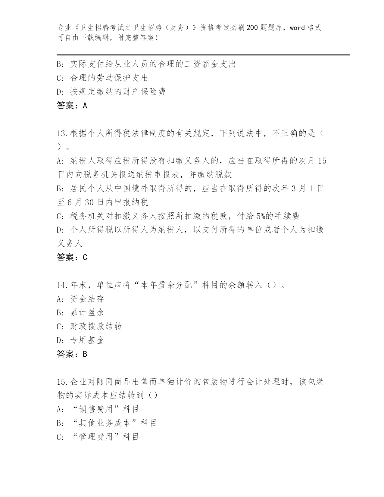 山西省内部使用《卫生招聘考试之卫生招聘(财务)》资格考试必刷200题通关秘籍题库含答案(名师推荐)