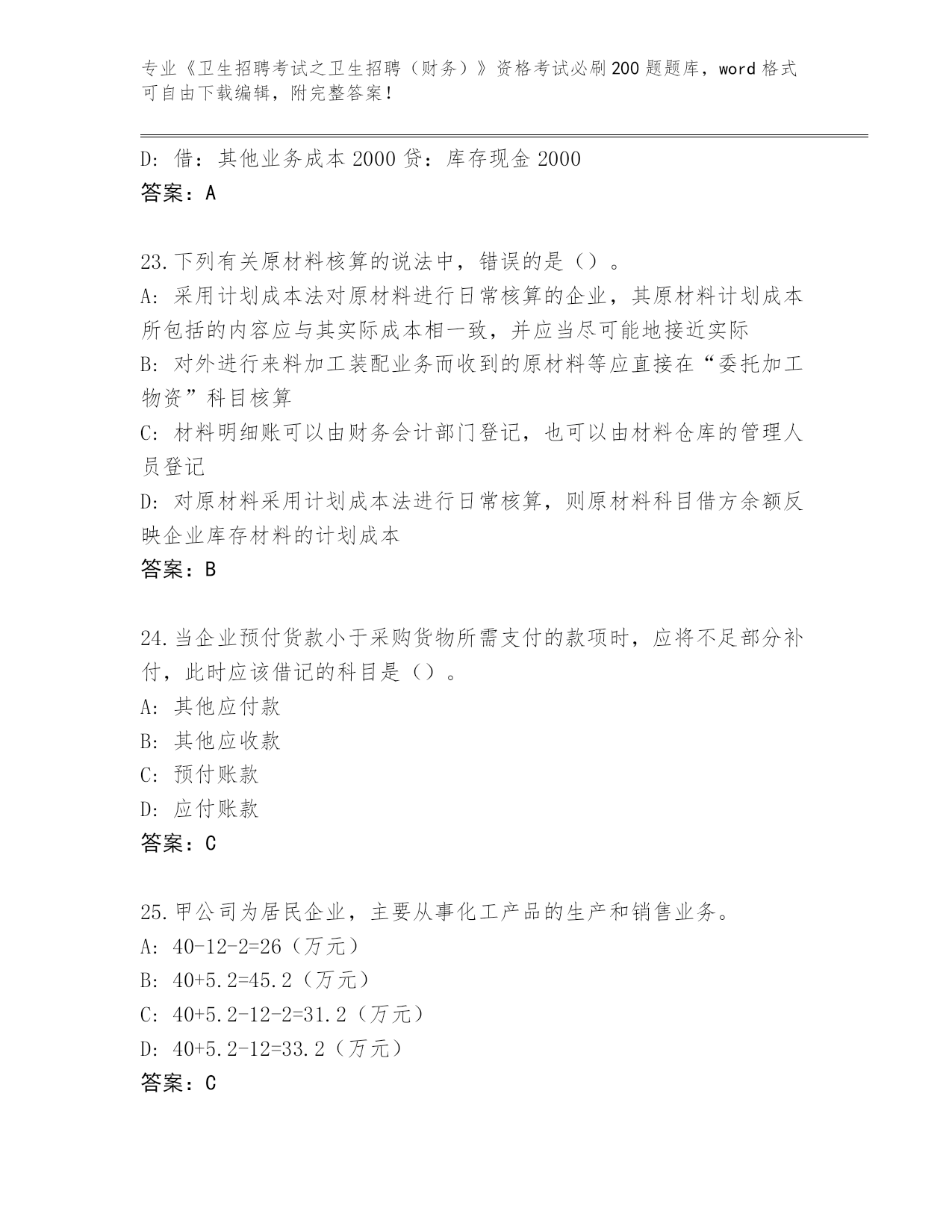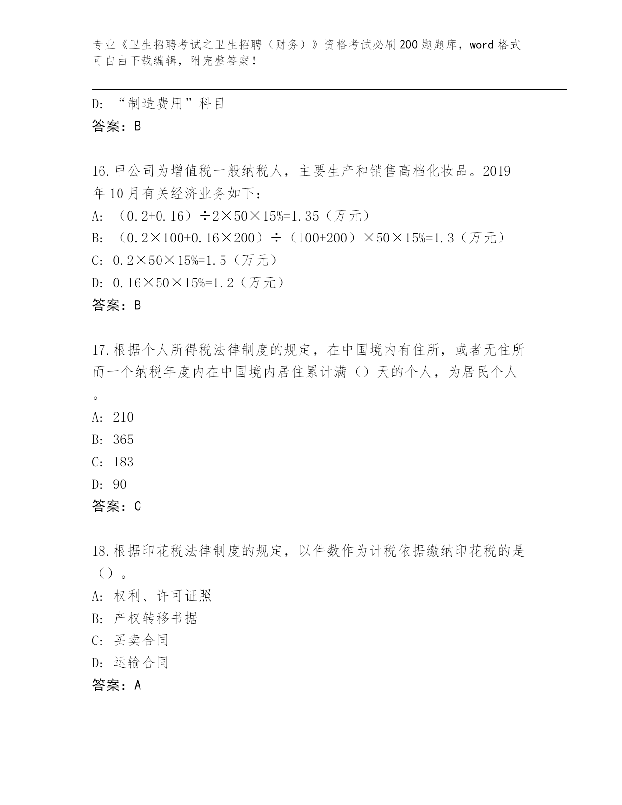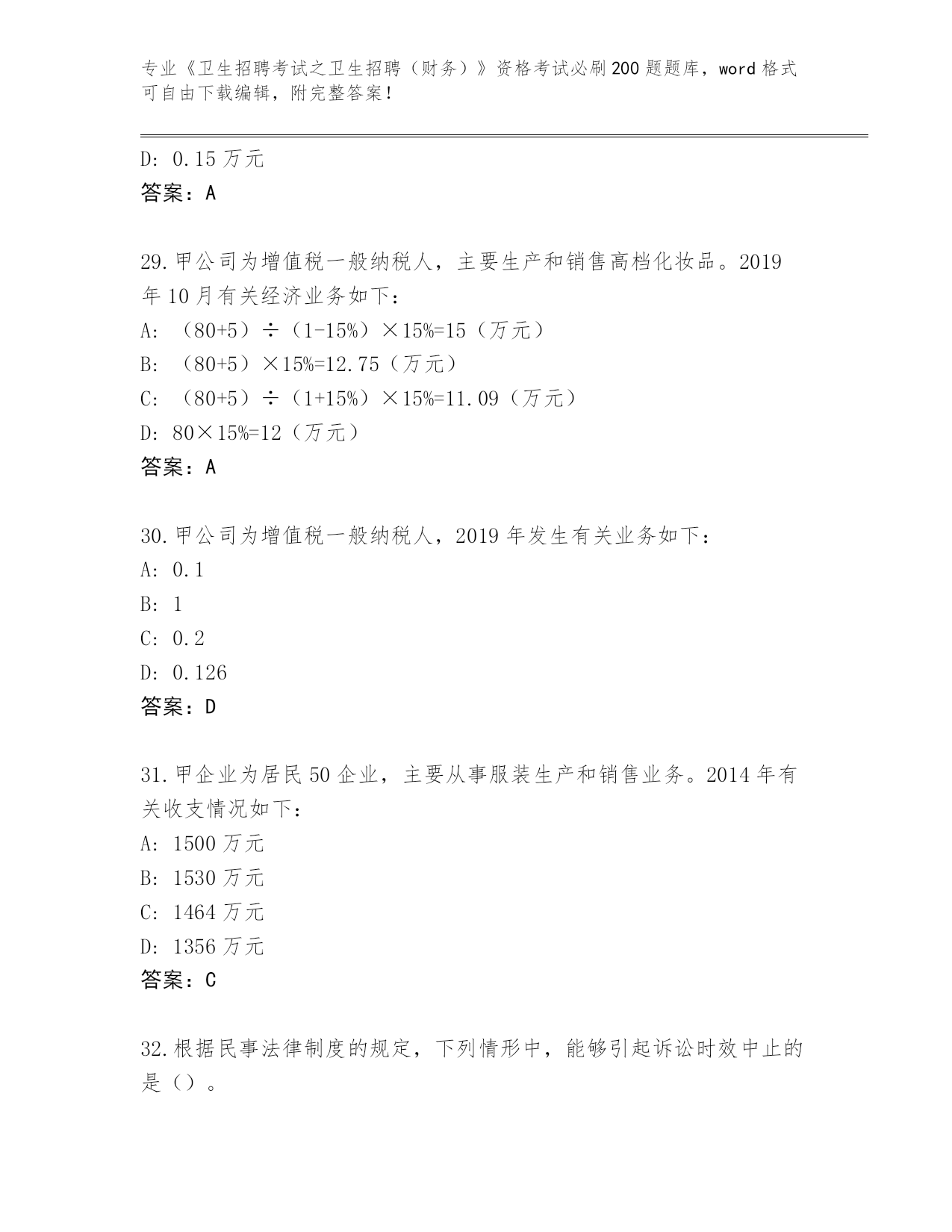 内部使用河南省《卫生招聘考试之卫生招聘(财务)》资格考试必刷200题完整题库(夺冠)