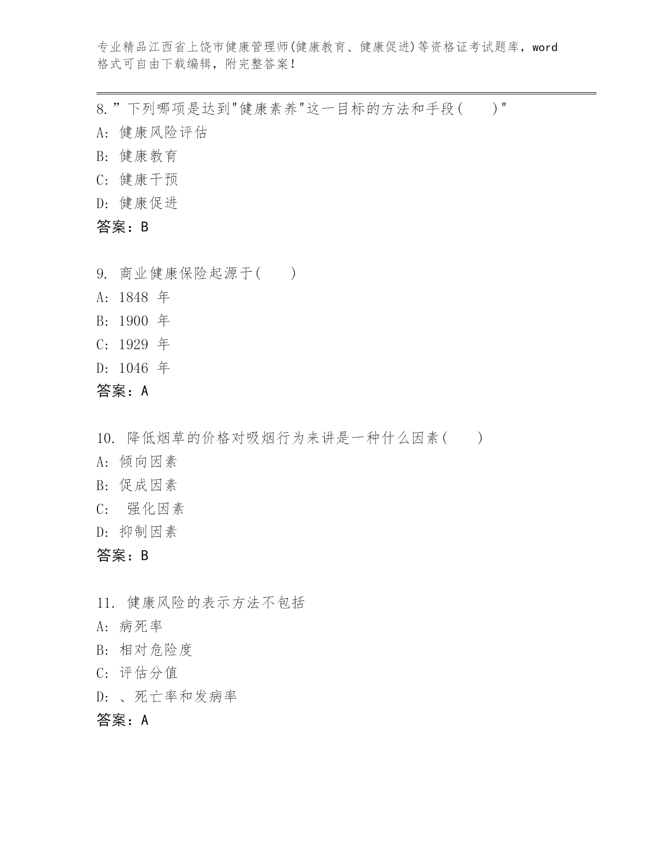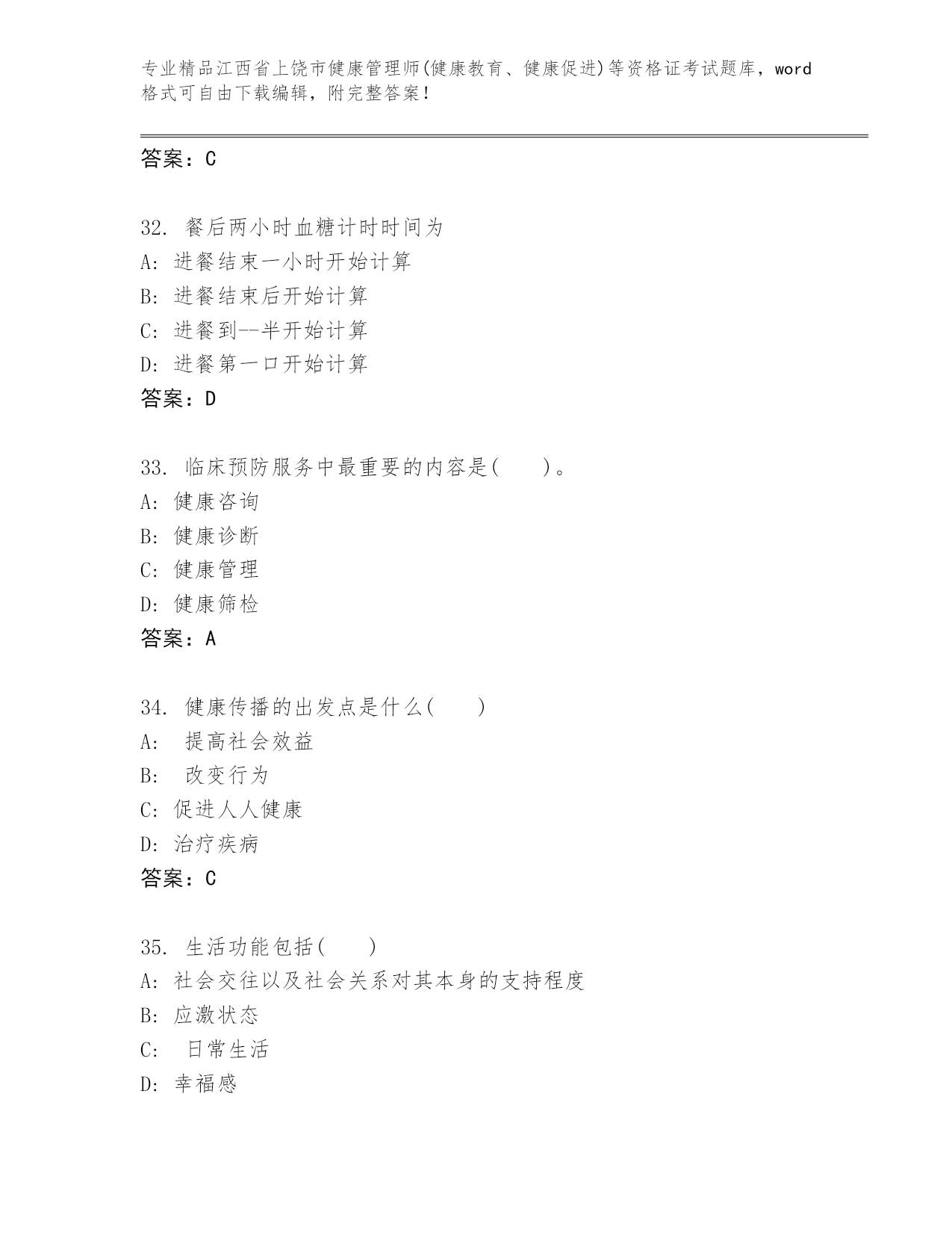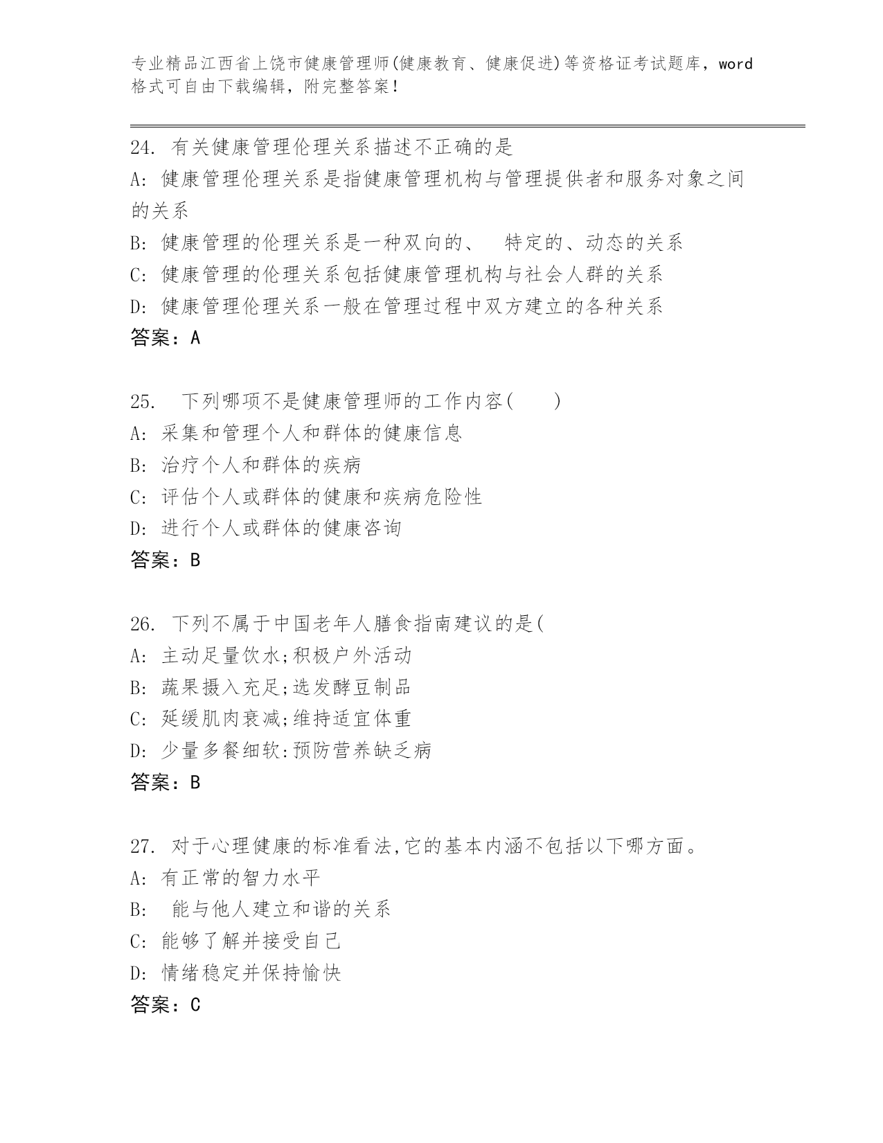 江西省上饶市健康管理师(健康教育、健康促进)等资格证考试优选题库【研优卷】
