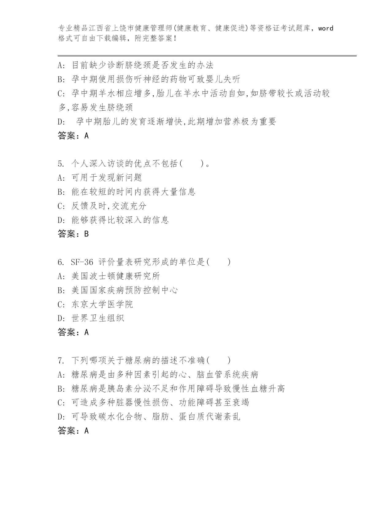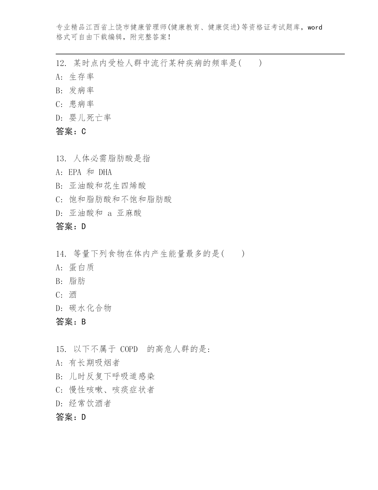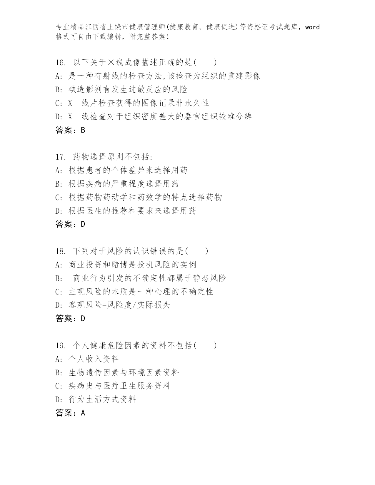 江西省上饶市健康管理师(健康教育、健康促进)等资格证考试优选题库【研优卷】