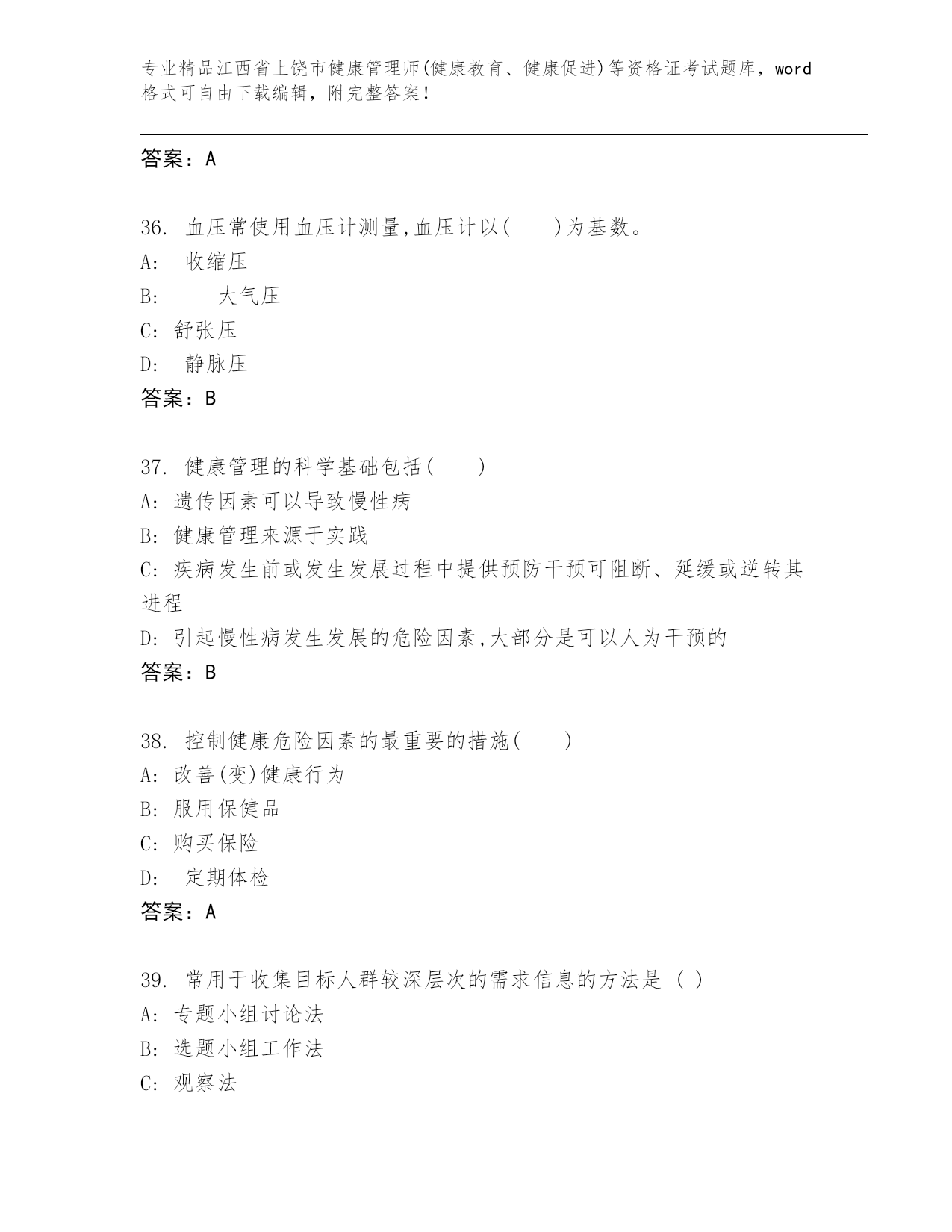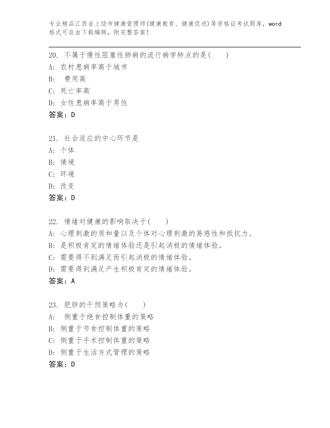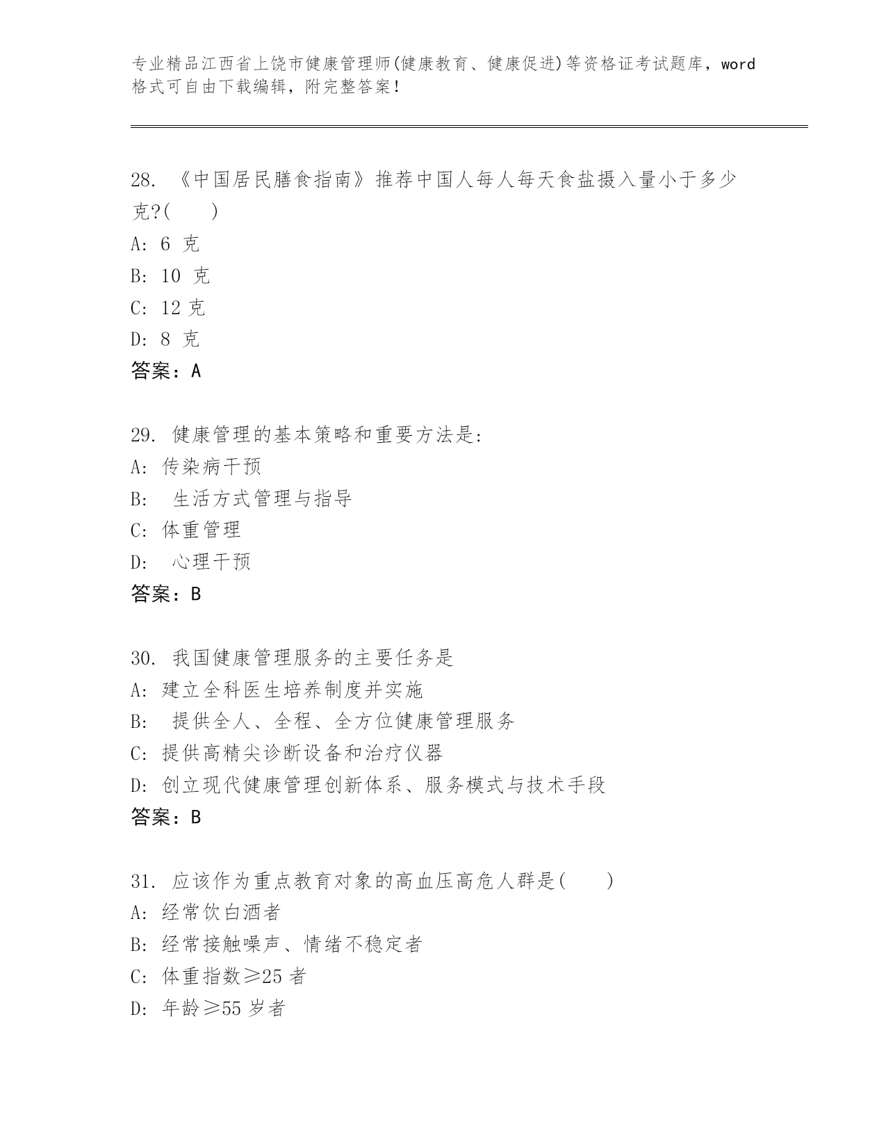 江西省上饶市健康管理师(健康教育、健康促进)等资格证考试优选题库【研优卷】.docx