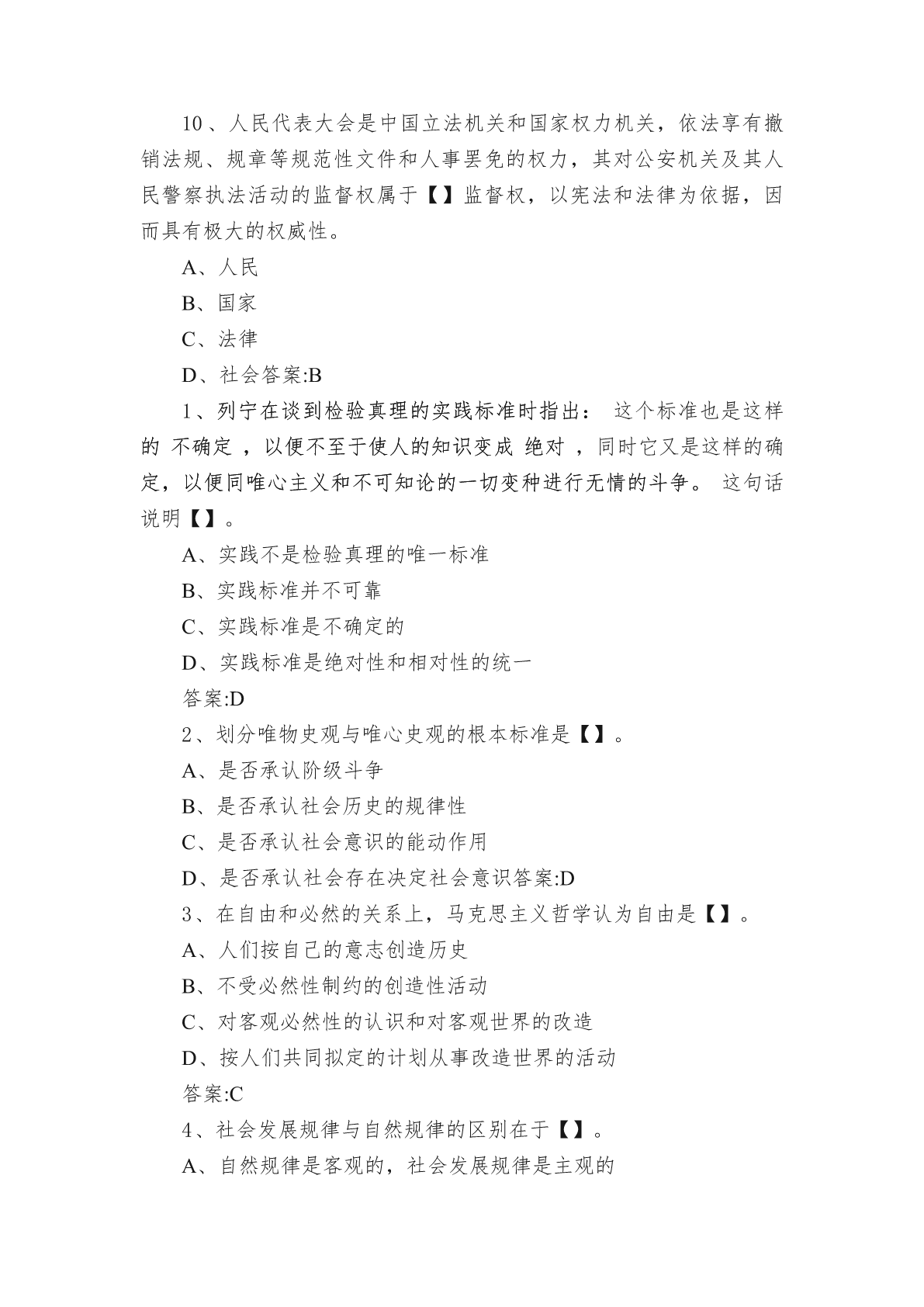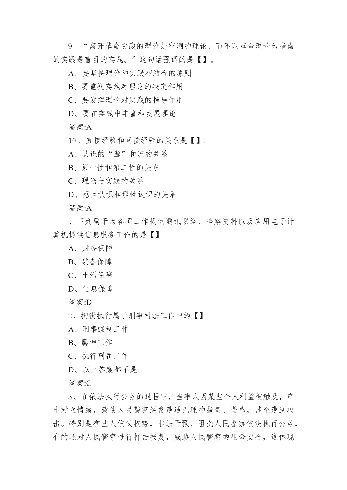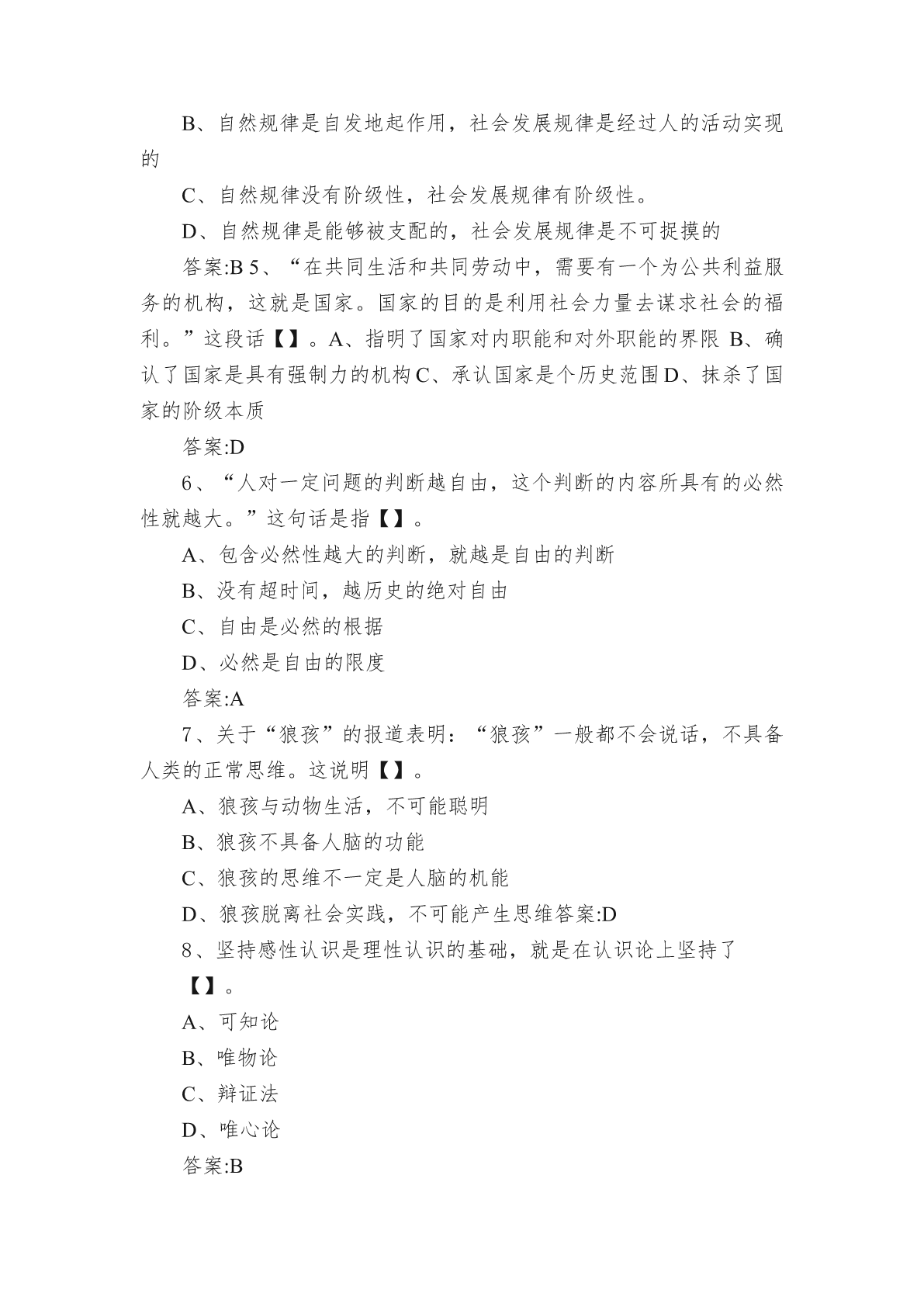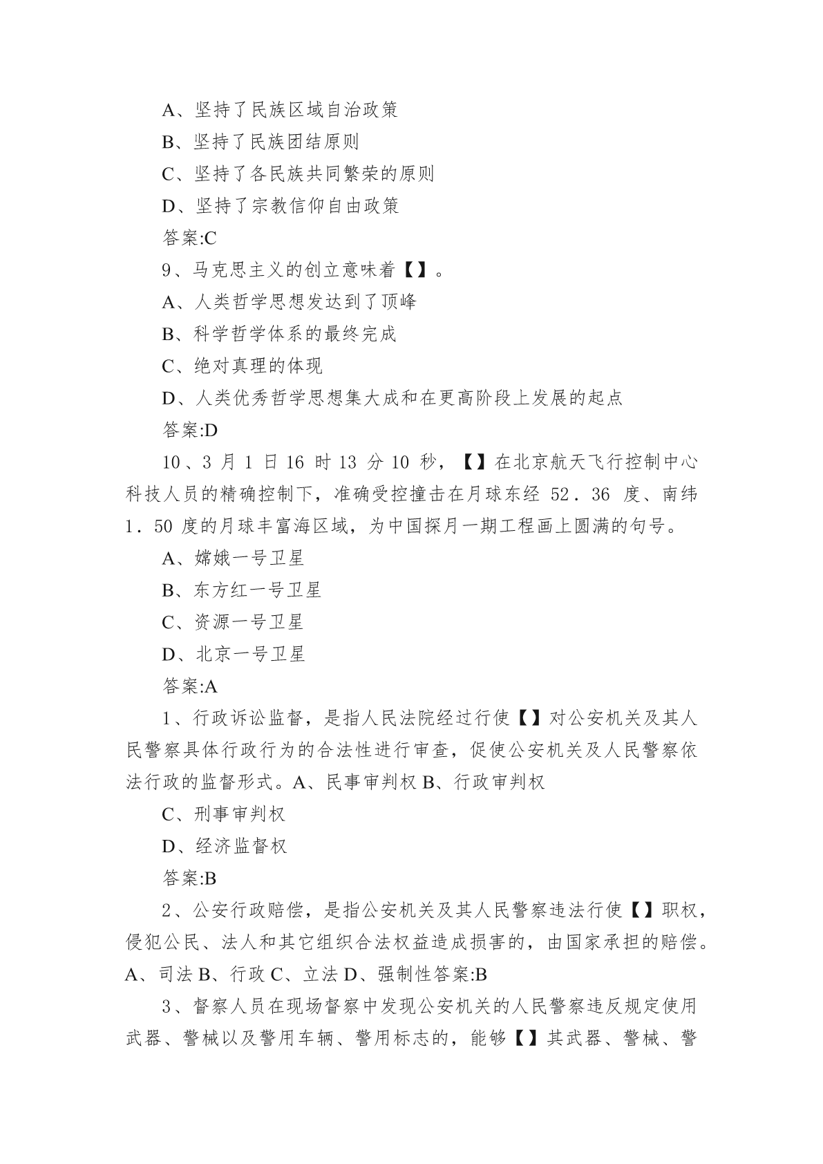 河南公务员考试公共基础知识试题河南公务员考试公共基础知识试题河南公务员考试公共基础知识试题及答案:1、由比利时政府授权修建的全球首座温室气体零排放极地考察站2月15日在南极落成,这座考察站依靠风能和太阳能运转,力求实现对环境的影响最小化,它的名字是【】。A、伊丽莎白公主站B、基辅罗斯公主站C、伊莎贝尔公主站D、茜茜利亚公主站答案:A2、行政许可申请事项依法不属于本行政机关职权范围的,应当【】。A、在7日内将申请转送有关行政机关B、在5日内作出不予受理的决定C、即时告知申请人不受理D、即时作出不予受理的决定并告知向有关行政机关申请答案:D3、在中英《南京条约》及其附件中,最能反映英国发动侵略战争目的的规定是【】。A、割让香港岛B、开放五个通商口岸C、赔款的规定D、英国享受最惠国待遇答案:B4、下列行政强制措施当中【】属于间接执行性强制措施。A、查封、扣押B、强制收购C、限期执行D、代执行答案:D5、拟办是指A、拟写文稿B、做好查办的准备工作C、对公文如何办理提出建议D、为待批办的文件拟写摘要答案:C6、撰写《国家海洋局关于随时准备与台湾海洋部门建立正常联系的决定》时,特别要求做到【】。A、主题集中,重点突出B、层次分明,词语严谨庄重C、对事实分析和结论应当观点明确,分寸适宜D、按条项形式安排内容,分类排序准确、严密答案:B7、拖拉机厂电工张某,自恃技术熟练,在检修电路时不按规定操作,造成电路着火,部分设备被烧毁,损失10多万元,张某的行为构成【】。A、失火罪B、玩忽职守罪C、破坏集体生产罪D、重大责任事故罪答案:D8、下列行为中,属于代理行为的是【】。A、公司经理以公司名义对外签约的行为B、甲代替乙招待乙的朋友的行为C、传达室孙大爷将甲寄给乙的信送给乙的行为D、公司的售票员向旅客卖票的行为答案:D9、立法程序化、法律化的重要意义在于【】。A、防止公民的非法行为B、避免执法机关的违法行为C、防止党派团体的非法行为D、意味着有立法权的国家机关在严格遵循法定程序时才能立法,从而才能保证立法的质量答案:D10、中国国有企业改革的方向是A、实行承包制B、实行股份制C、建立现代企业制度D、股份合作制答案:C1、科学发展观强调全面发展,首先是【】。A、社会的全面发展B、经济的全面发展C、人的全面发展D、人和社会的全面发展答案:C2、若发现已生效的行政执法行为违法或不当,则A、原行政机关无权废止B、原行政机关或上级行政机关有权撤销C、只有权力机关有权撤销D、相对一方当事人有权变更答案:B3、政府的主要作用是掌舵,而不是划桨。这一说法是指【】。A、政府应该强化集权B、政府的主要作用是决策,而不是执行C、政府应该加强自身组织的建设D、政府应该成为现代社会的导航员答案:B4、行政立法的主体是【】。A、国家机关B、国家权力机关C、国家行政机关D、国家权力机关和行政机关答案:C5、关于马克思主义的革命性,错误的说法是A、它主张全部抛弃历史的一切B、它坚持新陈代新是宇宙间不可抗拒的普遍规律C、它自身并不是一个终极真理的封闭体系,而是一个随着实践的发展而不断自我更新完善和发展的生机勃勃的开放体系D、它并没有结束真理,而是开辟了不断认识和掌握真理的道路答案:A6、行政机关向行政相对方收取公路养路费属于【】。A、行政征收B、行政征用C、行政处罚D、行政征购答案:A7、以下作品不是莫泊桑的代表作品的是【】。A、《羊脂球》B、《俊友》C、《我的叔叔于勒》D、《麦琪的礼物》答案:D8、新中国成立后,党和国家十分重视新疆的发展,投资力度不断加大,现在西部开发又将其作为重点。这表明中国【】。A、坚持了民族区域自治政策B、坚持了民族团结原则C、坚持了各民族共同繁荣的原则D、坚持了宗教信仰自由政策答案:C9、马克思主义的创立意味着【】。A、人类哲学思想发达到了顶峰B、科学哲学体系的最终完成C、绝对真理的体现D、人类优秀哲学思想集大成和在更高阶段上发展的起点答案:D10、3月1日16时13分10秒,【】在北京航天飞行控制中心科技人员的精确控制下,准确受控撞击在月球东经52.36度、南纬1.50度的月球丰富海区域,为中国探月一期工程画上圆满的句号。A、嫦娥一号卫星B、东方红一号卫星C、资源一号卫星D、北京一号卫星答案:A1、行政诉讼监督,是指人民法院经过行使【】对公安机关及其人民警察具体行政行为的合法性进行审查,促使公安机关及人民警察依法行政的监督形式。A、民事审判权B、行政审判权C、刑事审判