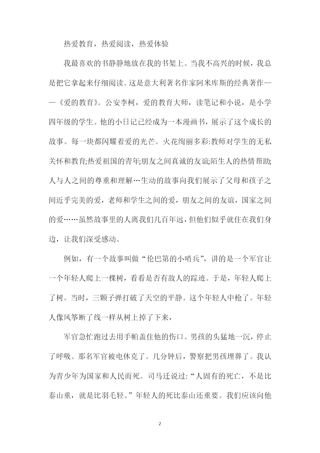 爱的教育读后感500字作文爱的教育读后感怎么写.doc