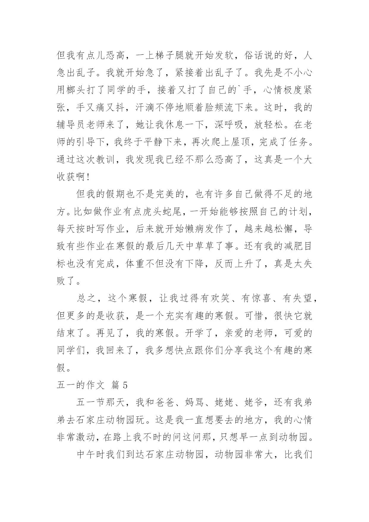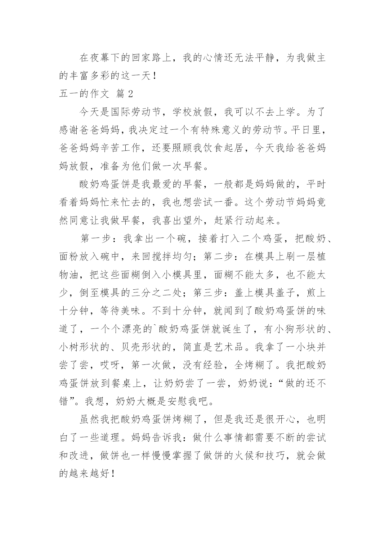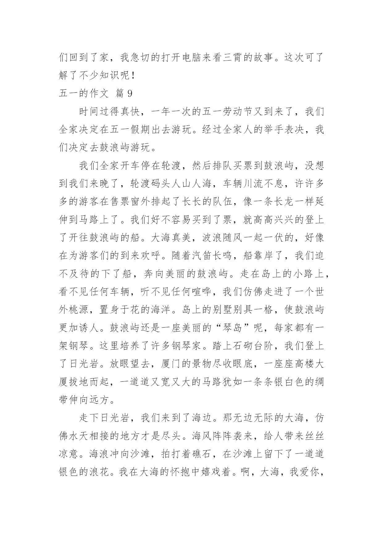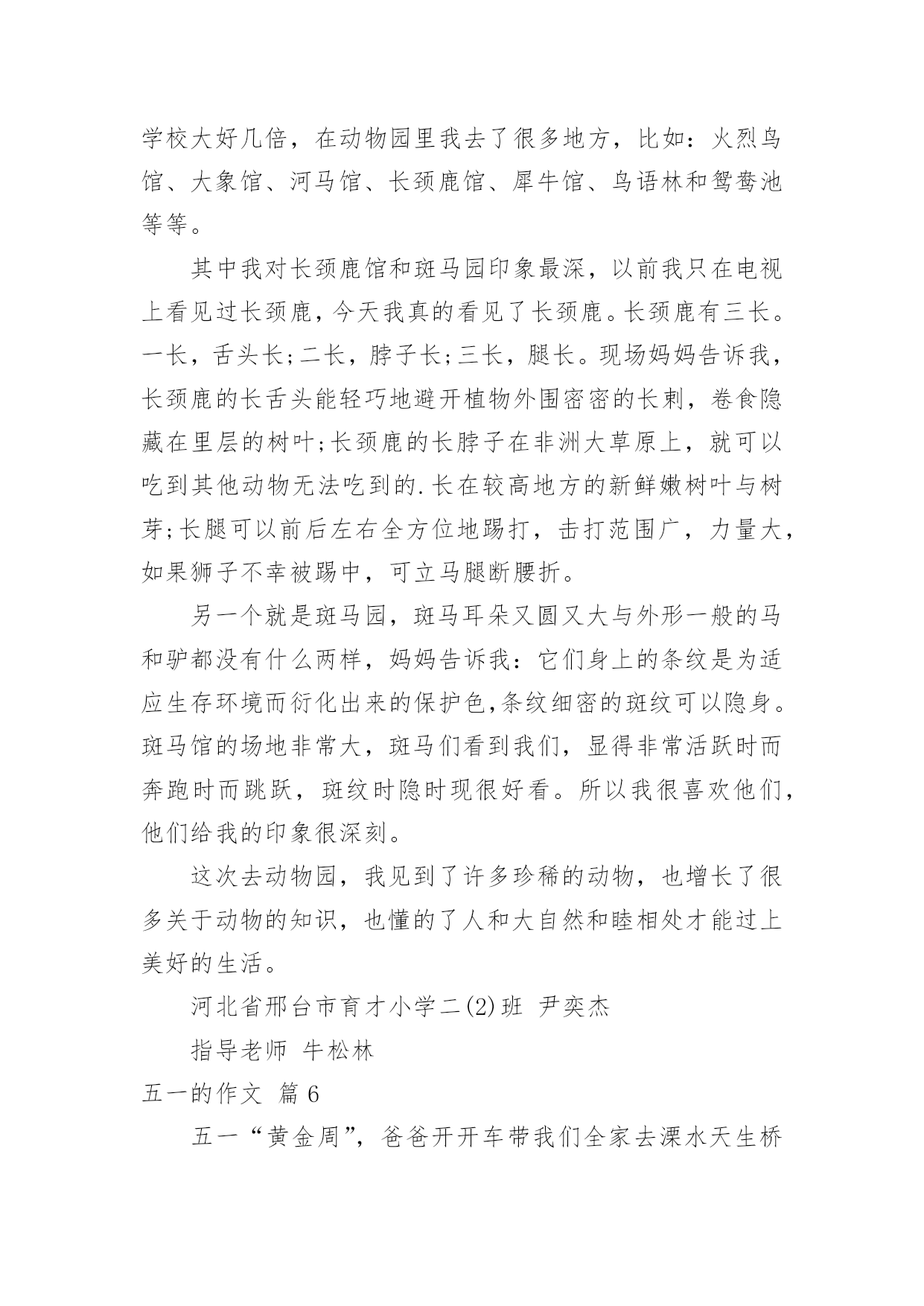 五一的作文五一的作文9篇【必备】在学习、工作、生活中,大家都跟作文打过交道吧,借助作文可以宣泄心中的情感,调节自己的心情。相信许多人会觉得作文很难写吧,下面是小编为大家收集的五一的作文9篇,欢迎阅读,希望大家能够喜欢。五一的作文篇1五一劳动节到了,我很兴奋,因为我们可以放下沉重的书包连休三天。于是,我家和王哲、曾钰等几家相约一起去高楼来一次亲近自然的郊游。因为我老家在高楼,大家一致推举由我和爸爸来当导游,做主安排游玩的项目和路线。我激动无比,接受这光荣的任务,这可是我第一次当导游哇!我和爸爸做了精心的策划,要为大家安排丰富的游玩内容,做好后勤服务。5月1日,起了个大早,简单地收拾了下行装,我们就驱车向高楼进发。节日的公路上好“热闹”呀,原本不到一小时的车程花了两小时多。漫长的行车终于结束了,我迫不及待地跳下车,一头“栽”进清澈溪流的怀抱。伙伴们也陆续到达了,我们光着脚丫尽情地在清流里戏水玩耍,摸漂亮的小石头,捞小鱼儿,打水漂。最有趣的是玩水枪,同伴们的水枪比我的手臂还长,我的是小水枪,比手掌还短,射程很近。他们唰唰地射出长水龙,我只能射出细细的毛毛雨,可还是玩得不亦乐乎!中午到了,肚皮也咕咕叫了,我们收拾起水枪、渔具,到酒店用餐。丰盛的菜肴使我们狼吞虎咽,吃得肚子鼓鼓。休息一会儿,我们继续快乐的行程。我们驾车来到了赵山渡水库旁边的`营前老街,踩在石子铺就的老街上,目光在巷道两旁古旧楼房上游移,我们感受到历史的沧桑。摄影发烧友王哲的爸爸手里的相机咔嚓咔嚓响个不停,残墙断壁、旧物件,成了他眼中绝妙的美景!他也为我们留下了珍贵的美照。我们站在老街的制高点眺望巨大的水库,只见碧波荡漾,与远山相接,真是青山绿水好风光。我们还参观了水库大坝、发电站,为这巨大的人工工程而感叹!我爷爷种的桑树地里,几畦整齐的桑树上,茂密碧绿的桑叶下挂满了密密麻麻的桑椹,发黑的已成熟,非常诱人。一进入桑林,周裕凯兴奋地叫道:“哇,真多!我们往死里摘,能摘多少就摘多少!”我抱怨道:“像你这样摘,我爷爷家岂不是破产了!”我这话惹得大家哈哈大笑。大伙儿边采边吃,都夸我爷爷种的桑葚好吃,比超市里的甜多了。我心里不禁变得美滋滋的。我爸爸劝他们多摘,摘满小篮子。都是堵车惹的祸,我们去绿道骑车费了很大的劲,耽搁了很多时间。天空又下了一阵小雨,大多数同伴觉得时间晚了,放弃骑车项目直接回瑞安了。我们家还是租了一辆自行车骑行,在悠悠的绿道上,天空偶尔飘着雨丝,清新的空气沁人心脾,别有一番情趣!同时为没能骑车的同伴而遗憾,希望下次再来骑车。在夜幕下的回家路上,我的心情还无法平静,为我做主的丰富多彩的这一天!五一的作文篇2今天是国际劳动节,学校放假,我可以不去上学。为了感谢爸爸妈妈,我决定过一个有特殊意义的劳动节。平日里,爸爸妈妈辛苦工作,还要照顾我饮食起居,今天我给爸爸妈妈放假,准备为他们做一次早餐。酸奶鸡蛋饼是我最爱的早餐,一般都是妈妈做的,平时看着妈妈忙来忙去的,我也想尝试一番。这个劳动节妈妈竟然同意让我做早餐,我喜出望外,赶紧行动起来。第一步:我拿出一个碗,接着打入二个鸡蛋,把酸奶、面粉放入碗中,来回搅拌均匀;第二步:在模具上刷一层植物油,把这些面糊倒入小模具里,面糊不能太多,也不能太少,倒至模具的三分之二处;第三步:盖上模具盖子,煎上十分钟,等待美味。不到十分钟,就闻到了酸奶鸡蛋饼的味道了,一个个漂亮的`酸奶鸡蛋饼就诞生了,有小狗形状的、小树形状的、贝壳形状的,简直是艺术品。我拿了一小块并尝了尝,哎呀,第一次做,没有经验,全烤糊了。我把酸奶鸡蛋饼放到餐桌上,让奶奶尝了一尝,奶奶说:“做的还不错”。我想,奶奶大概是安慰我吧。虽然我把酸奶鸡蛋饼烤糊了,但是我还是很开心,也明白了一些道理。妈妈告诉我:做什么事情都需要不断的尝试和改进,做饼也一样慢慢掌握了做饼的火候和技巧,就会做的越来越好!五一的作文篇3快乐的五一在盼望中到来了,看到“五岳归来不看山,黄山归来不看岳。”大家会想到什么地方呢?没错,我快乐的五一就是去了闻名中外的黄山。去黄山,大家一定能想到奇松、怪石、云海、温泉,这“天下四绝”吧!我这次去黄山主要去看怪石。我好期待呀!“妙笔生花”是一个怪石,之所以叫“妙笔生花”就是它的形状好象一支笔,笔尖上长了一棵树。“五指山”好像一只手露出了五个手指头。“仙人指路”好像一位仙人伸着手在指路。黄山真是人山人海呀!上山坐缆车等了一个小时,下山光要走路都堵了好久!这次五一去黄山不仅让我看到了许多的美景,学到了很多的知识,也让我度过了一个快乐的五一,留下了美好的`回忆。五一的作文篇4时间对于每个人来说,都是公平的,它总是不快不慢,一分一秒的流逝。但快乐的时光,总让人觉得过得特别快。转眼间,两个月的寒假就这样过去了。今年寒假,我去了许多好玩的地方。比如萧山的极地海洋公园、德清的莫干山、绍