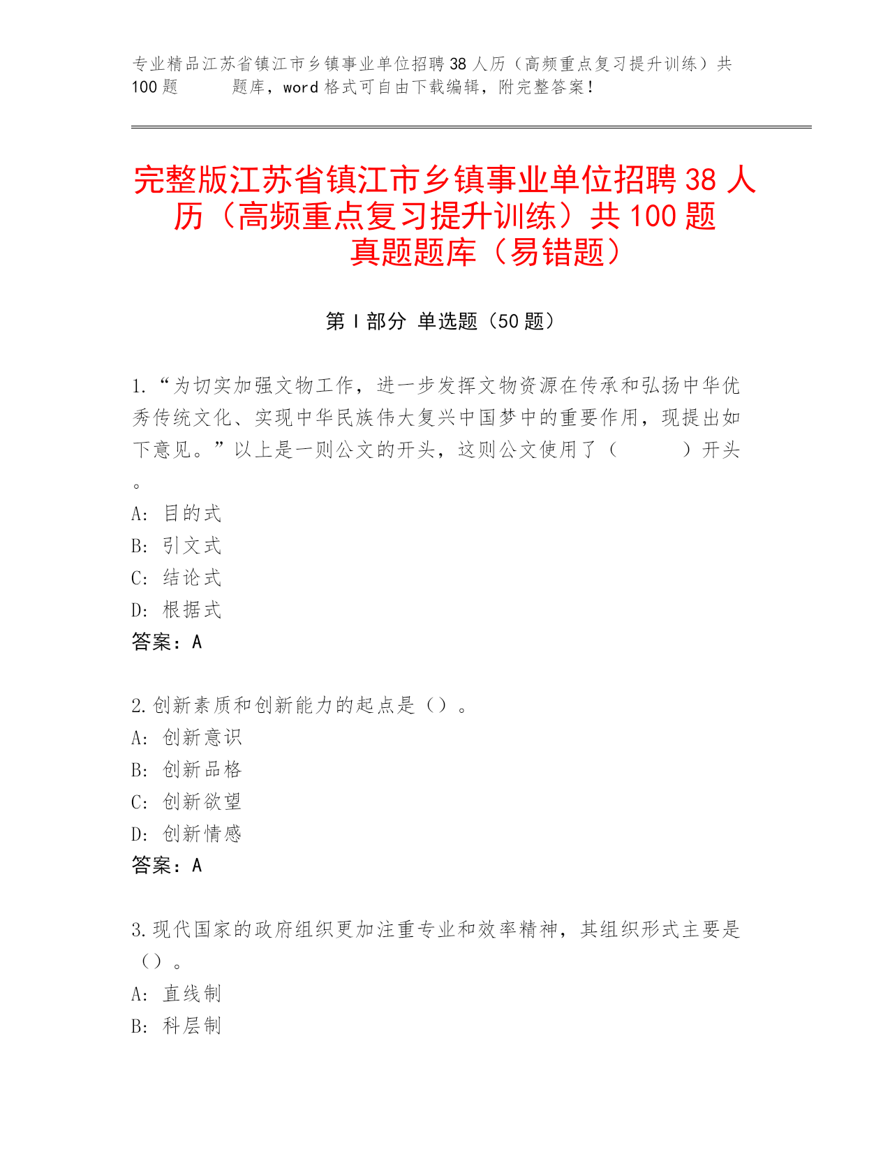 完整版江苏省镇江市乡镇事业单位招聘38人历(高频重点复习提升训练)共100题 真题题库(易错题)