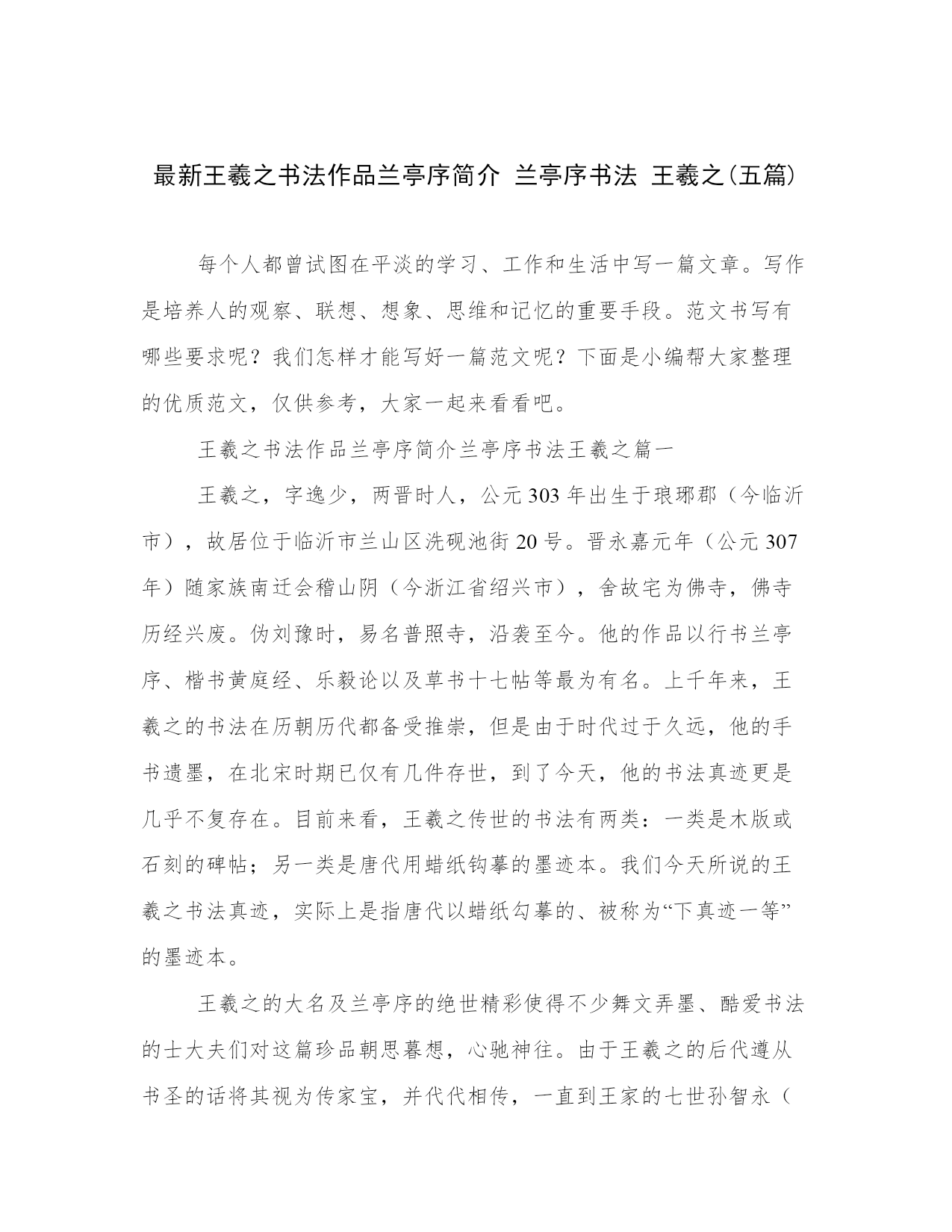 最新王羲之书法作品兰亭序简介 兰亭序书法 王羲之(五篇).docx