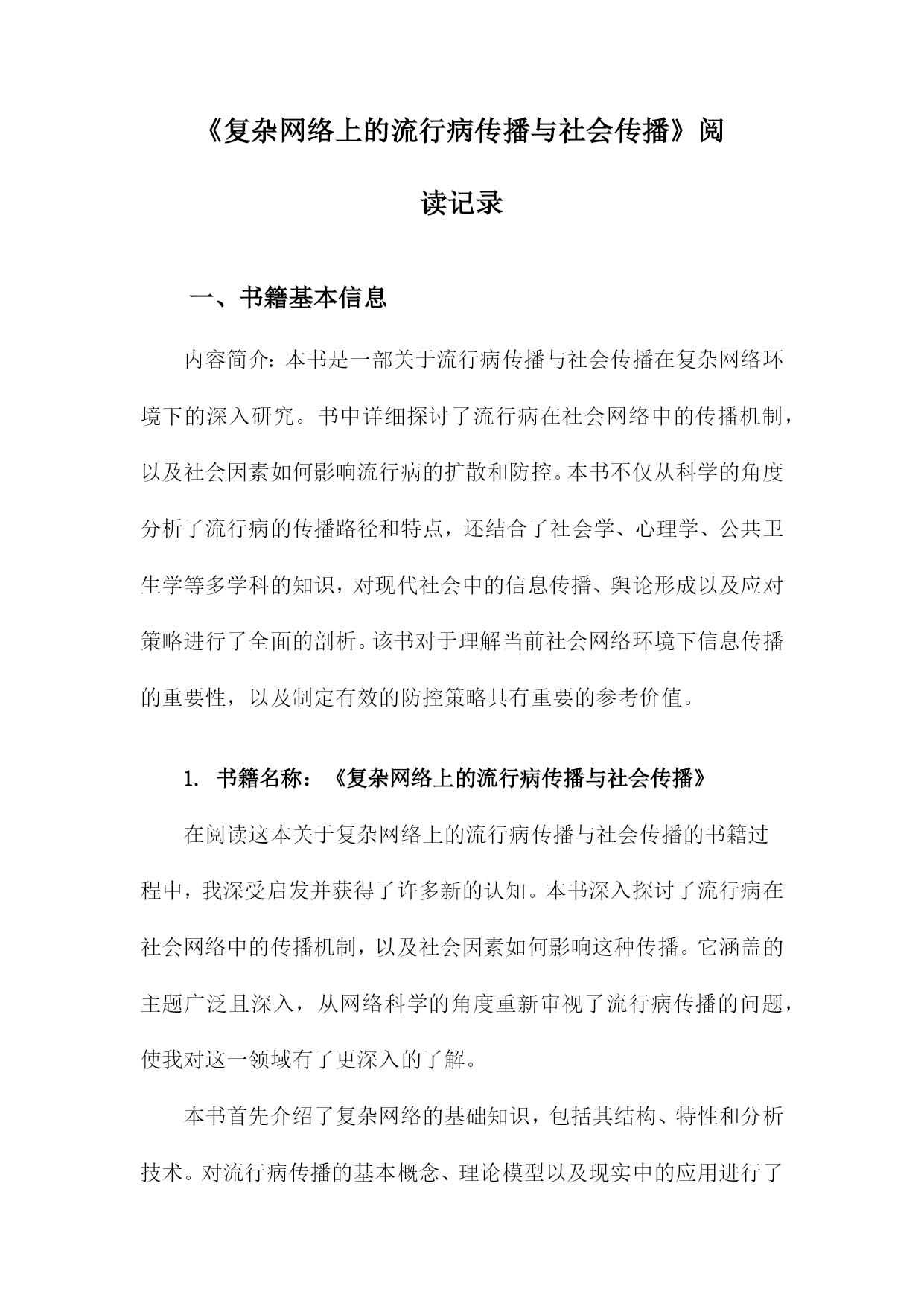复杂网络上的流行病传播与社会传播阅读记录.docx