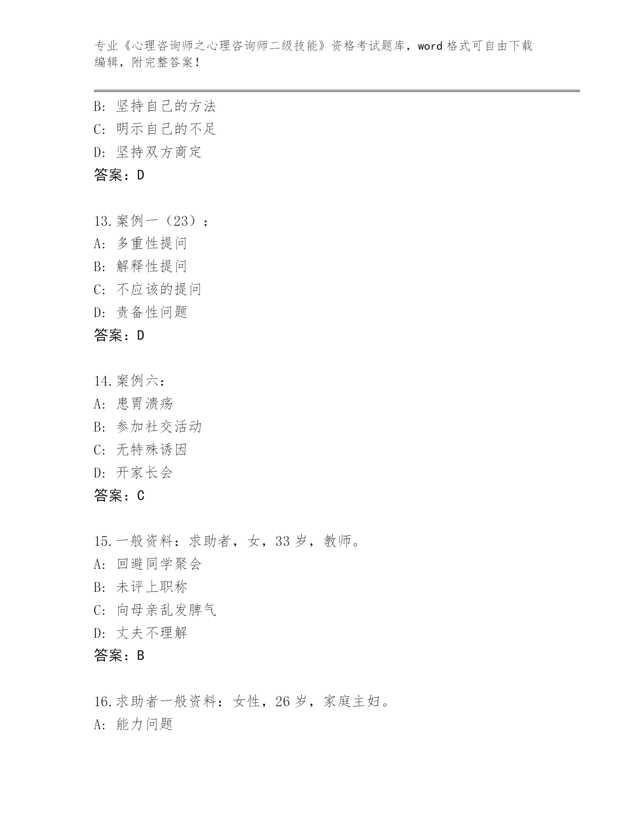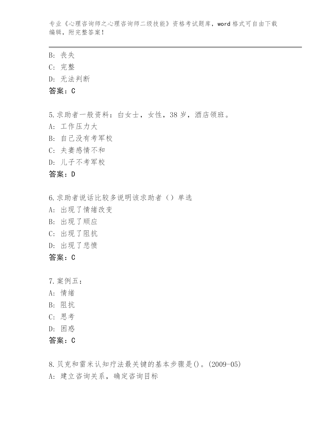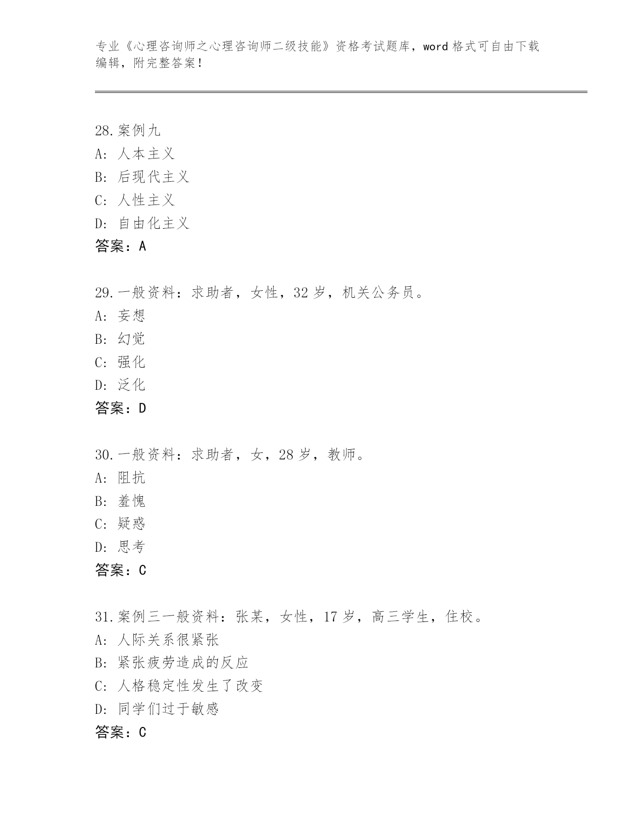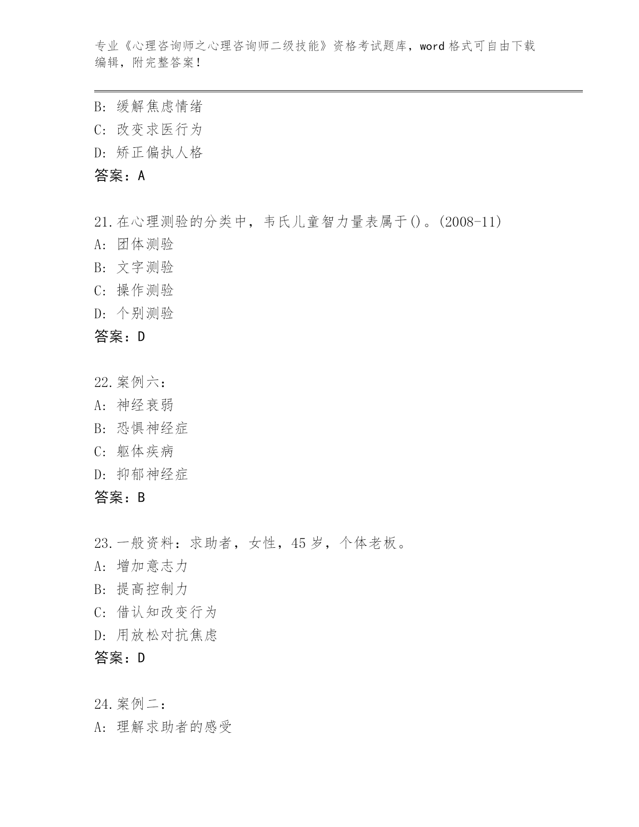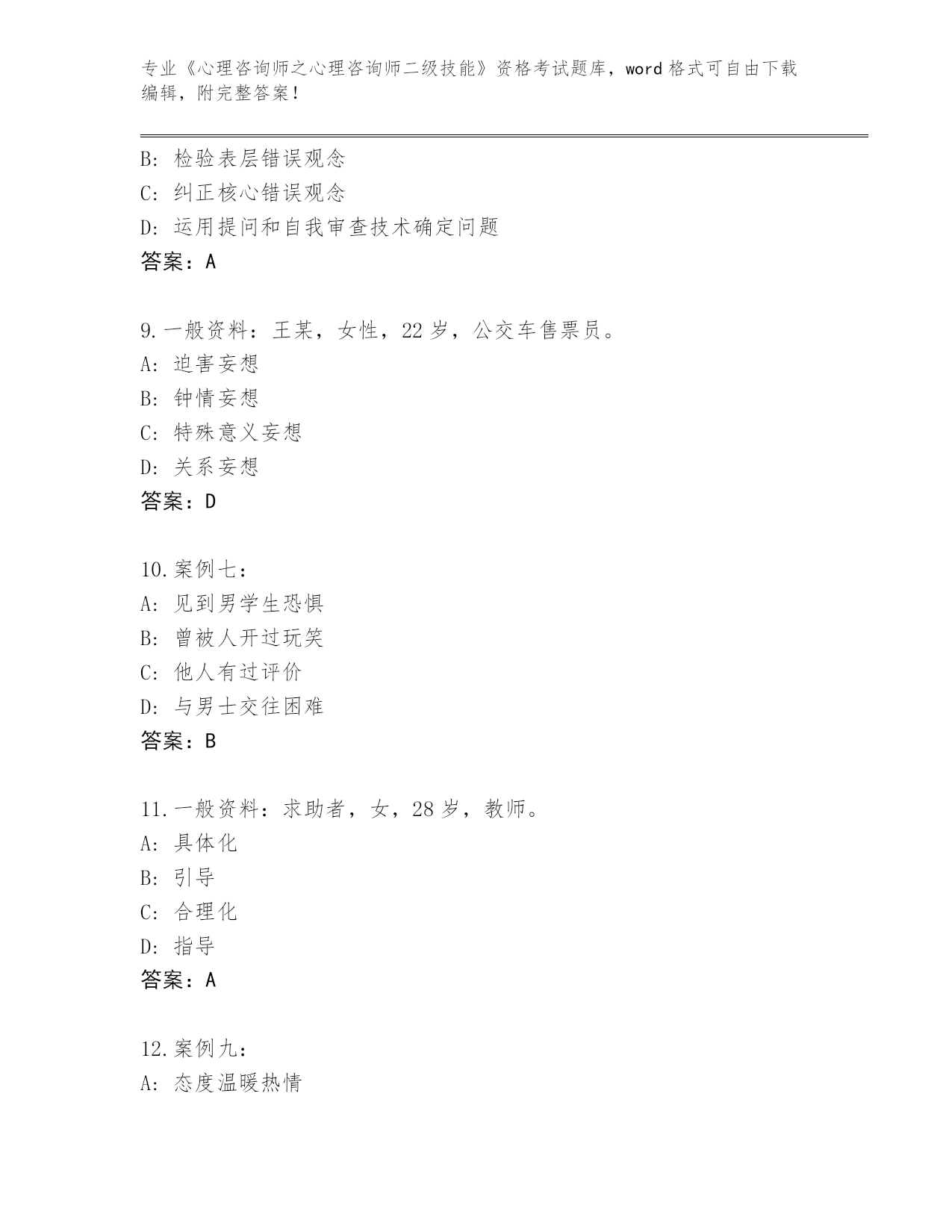 浙江省天台县2024年《心理咨询师之心理咨询师二级技能》资格考试必背200题通关秘籍题库含答案(培优B卷)