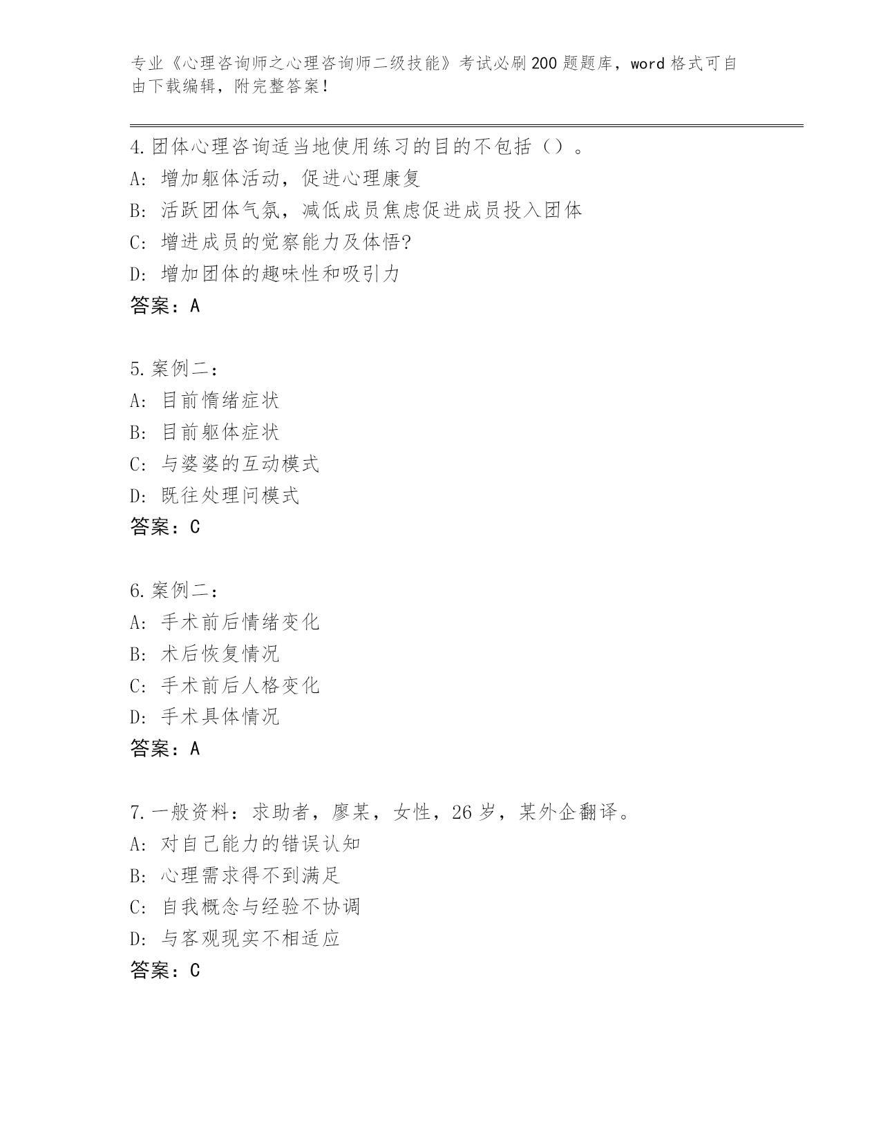 山东省《心理咨询师之心理咨询师二级技能》考试必刷200题题库大全附答案(基础题)