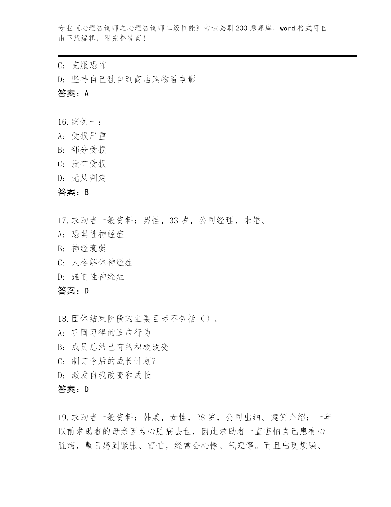 山东省历年《心理咨询师之心理咨询师二级技能》资格考试必刷200题题库大全附答案【典型题】