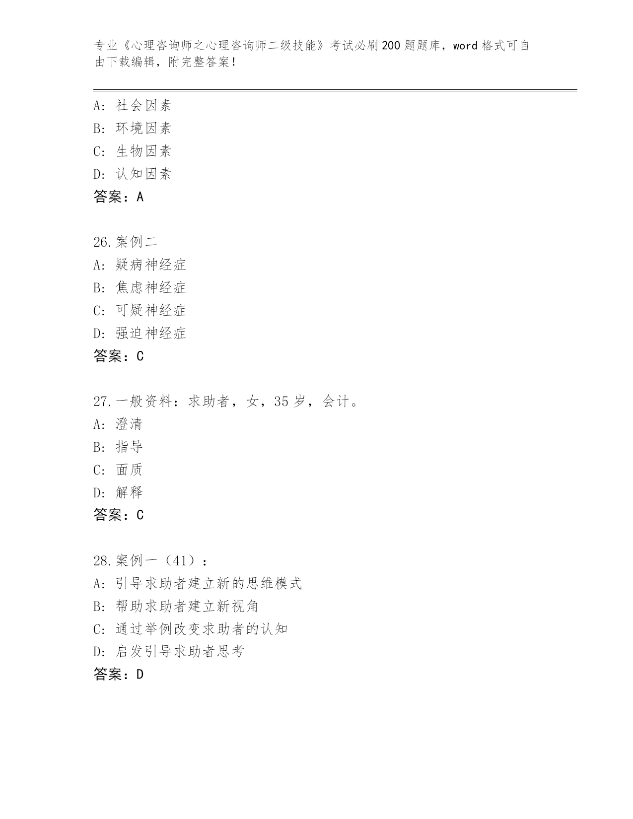 2024河北省双滦区《心理咨询师之心理咨询师二级技能》考试必刷200题题库附答案【典型题】