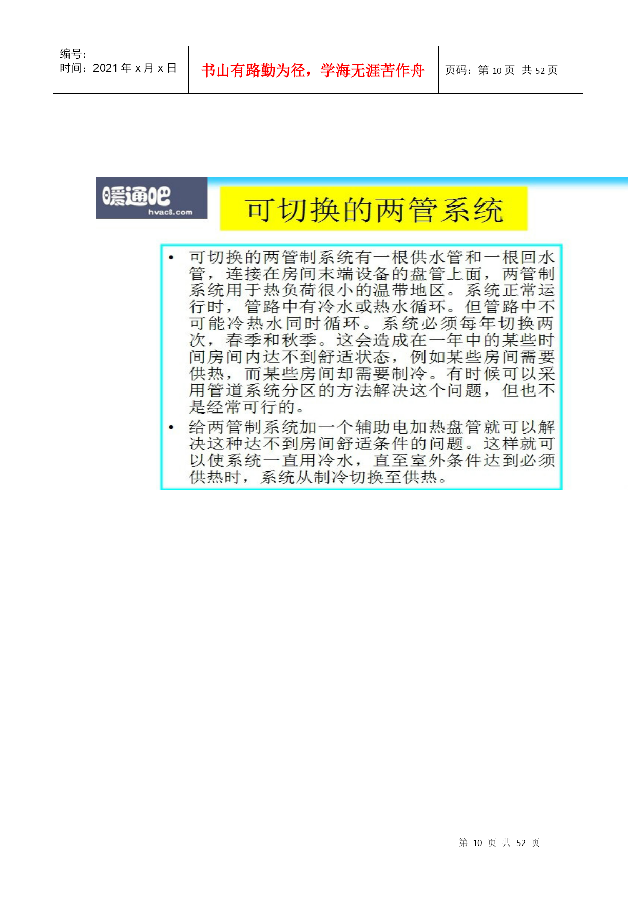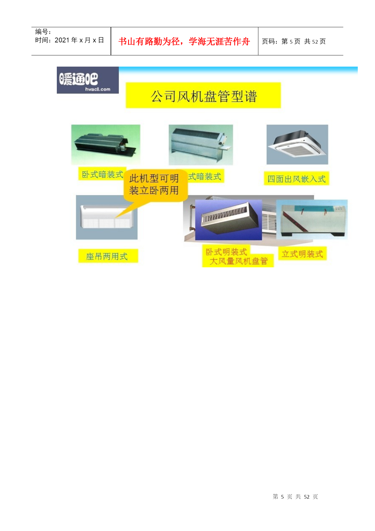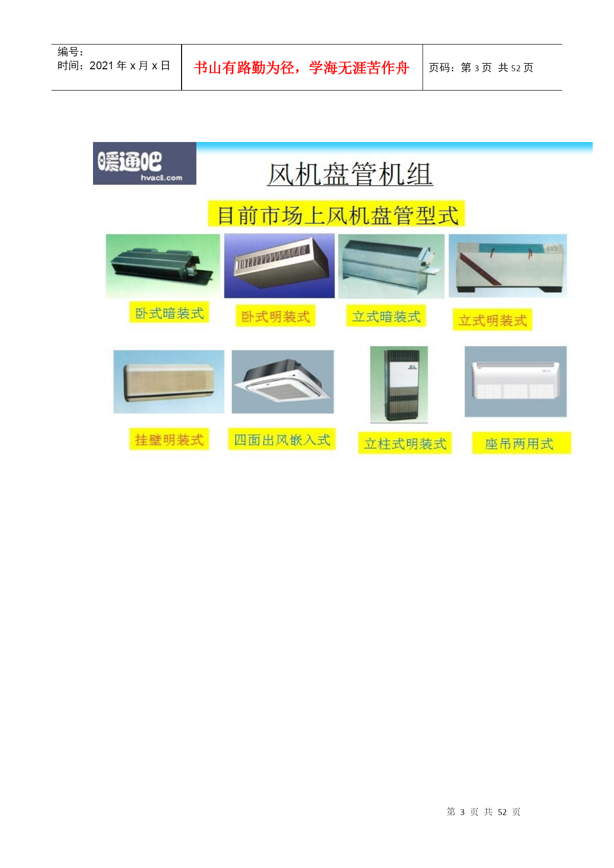 编号:时间:2021年x月x日书山有路勤为径,学海无涯苦作舟页码:第PAGE52页共NUMPAGES52页第PAGE\*MERGEFORMAT52页共NUMPAGES\*MERGEFORMAT52页中央空调末端设备选型教程HYPERLINK"http://mp.weixin.qq.com/javascript:void(0);"暖通吧一、风机盘管机组产品介绍及应用二、空气处理机组产品介绍及应用三、组合式空气处理机组产品介绍及应用四、末端产品售后问题的讨论