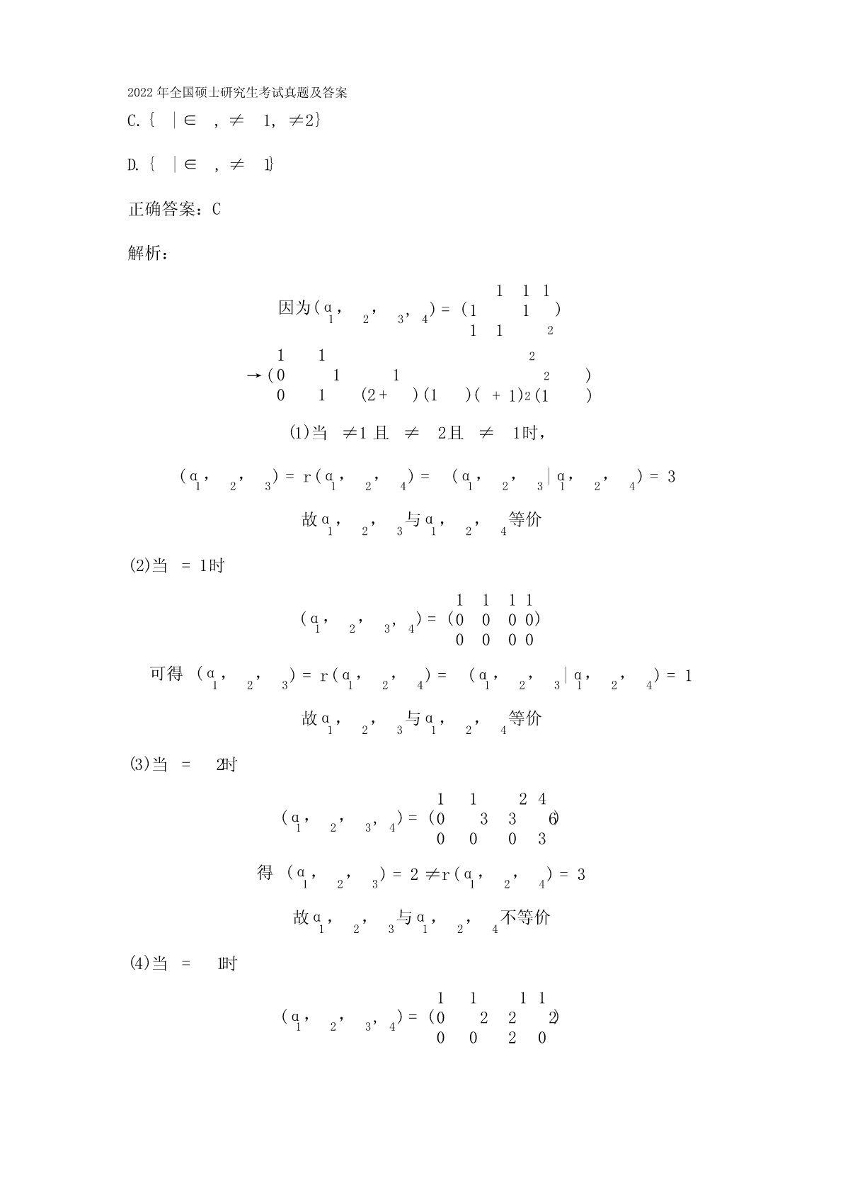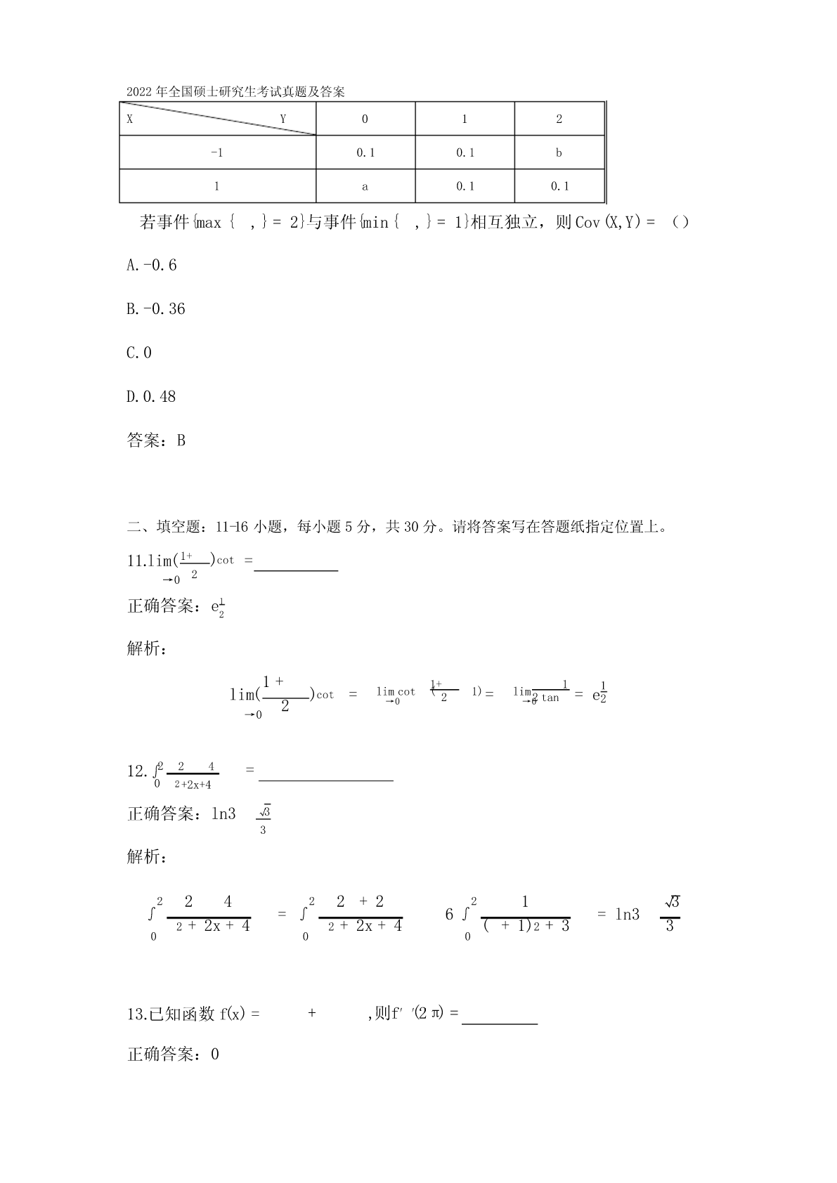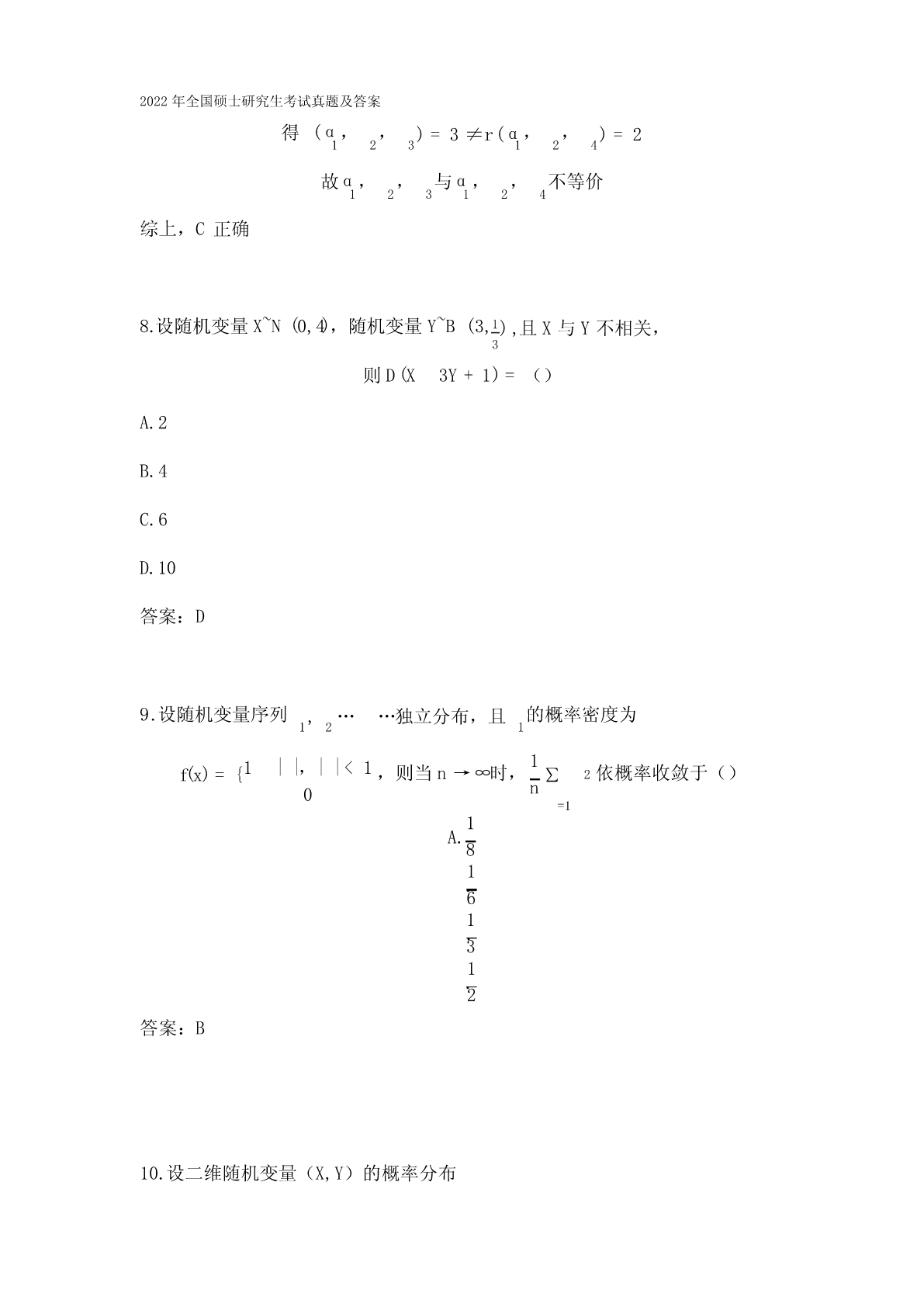 2022年全国硕士研究生招生考试真题及答案(数学三)