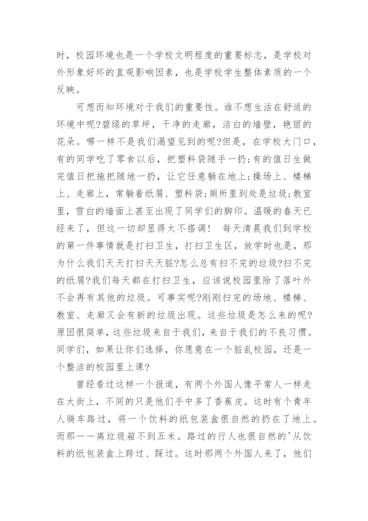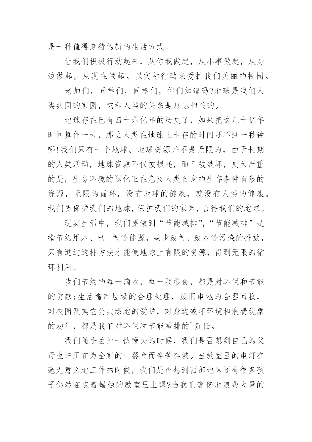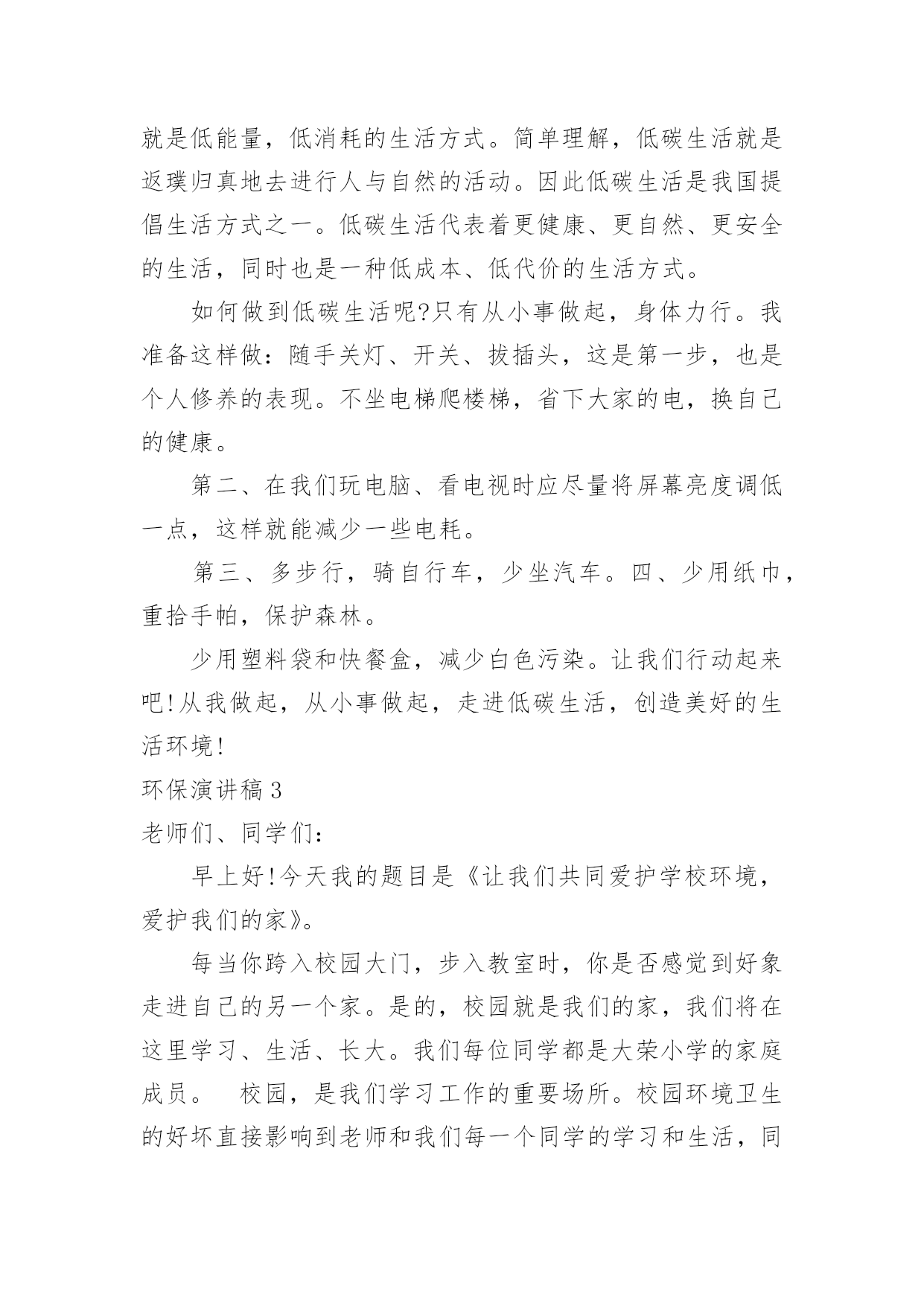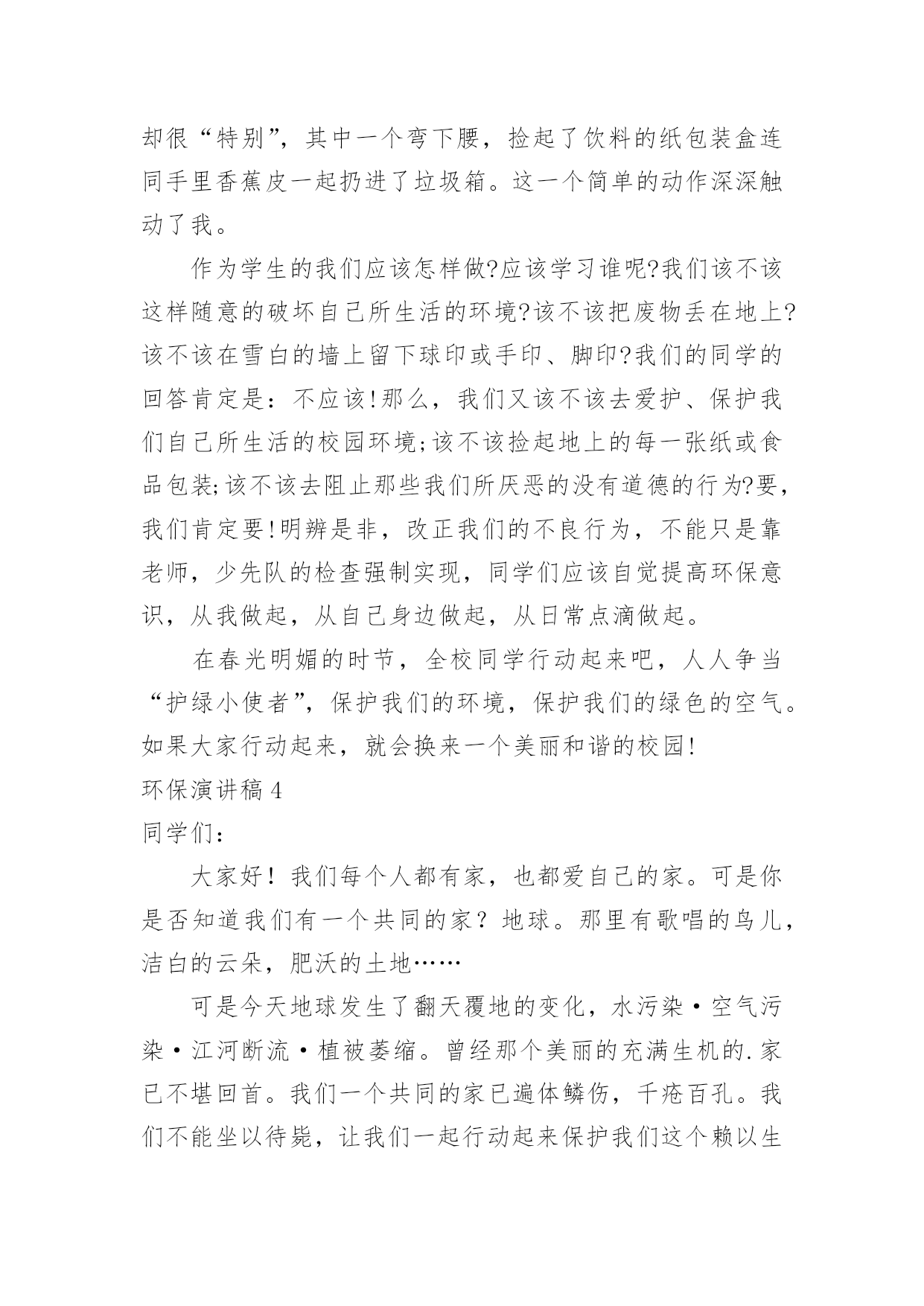 环保演讲稿环保演讲稿【汇总15篇】演讲稿是为了在会议或重要活动上表达自己意见、看法或汇报思想工作情况而事先准备好的文稿。在现在的社会生活中,我们使用上演讲稿的情况与日俱增,怎么写演讲稿才能避免踩雷呢?以下是小编为大家整理的环保演讲稿,欢迎阅读,希望大家能够喜欢。环保演讲稿1所有少先队员:大家好。中国改革XX年后,生活越来越富裕。然而,我们的环境遭受了无尽的破坏。频繁的沙尘暴、严重的沙漠化、污水泛滥、空气污染、森林砍伐……这些都让我们想起了人类。地球虽然寂静,但地球环境的恶化给人们带来了报复和惩罚。面对各种灾难,我们不得不承认,面对自然,人类是极其渺小的。我们在调查原因的时候,往往忘记了这是人类破坏环境造成的恶果。所有的灾难都在提醒人类,人类正在毁灭地球的进步,毁灭自己。地球只有一个,我们不能移动到其他星球。尊重地球意味着尊重我们自己的生命,拯救地球意味着拯救未来。所以,善待自然资源就是善待自己。因此,我提出一些建议:1、不要乱砍滥伐,即使需要树木,在砍树之后,也要种树,这样,才能使生态平衡。2、我们不丢一粒米,白米,很香。我们吃饭时不会忘记农民。得到每一粒米都不容易。是黄豆粒的汗水。优秀的`孩子一定要珍惜。3、不要在树上乱涂乱画。看,你在树上乱涂乱画,小树流出来的水就像眼泪,小树苗在哭。4、有很多种树。春天,我种了一棵小树,我永远不会忘记它。因为是和我一起长大的,所以开了小花,和我一起拍照。除此之外,它还产生了甜的水果让我品尝。又好吃又甜!我种了一棵小树苗,但每年都有回报,所以我们应该多种些树。5、不要乱扔垃圾。乱扔垃圾不仅影响市容,而且污染环境。6、如果你需要开车上班,不妨骑自行车出门!自行车省钱,不省钱。污染空气而且,长时间骑车还可以煅炼身体,增强体质,灰尘也小。7、节约用水,如果全世界的水都没有了,最后一滴水就是人类的眼泪,所以我们要节约用水。8、节约用电。如果没有电,人们在夜晚就会生活在黑暗的世界里,有了电,我们大家才可以工作,学习呀。9、节约用木质东西。大家可能都知道,做木质的东西一定要用到树木,而那些人把树砍后又不植树,最后使树木大量被砍。10、护花草。花草可以净化空气,美化环境。保护环境是人人有责的,让我们一起来保护地球吧!为了我们的未来,一定要保护好地球。环保演讲稿2尊敬的老师们,亲爱的同学们:大家好!走进江寺公园,舞台上“青山绿水,就是金山银山”映入眼帘,世界环境日,我们小记者聚集在一起,为环境保护献出一点小小的力量。舞台上,悦耳动听的歌声飘起来了;公园地面,长长的白色横幅摊开了;领了报纸的.小报童纷纷行动起来了。我也领了环保袋,在一个角落里坐了下来,静静地构思起来。袋子一面,我用蓝色画笔写上两个端端正正的空心字——环保;另一面,我画了两棵树,大的是爸爸,小的是我,我们枝叶交错,现在蓝天白云之下,共同守护我们的家园。等我去交环保袋时,已经有不少小记者都完成了,我仔细看了看大家的图画,发现每个小记者都把自己美好的心愿画上去了——保护环境,从我做起!这一刻,我望望身边的小记者,几乎都是陌生面孔,可我分明觉得,我们的心是相通的,也许我们的力量微不足道,但我们依然努力行动,为我们的地球,我们的家园做一点事!绿色环保演讲稿15亲爱的同学们:我们经常在网上、电视、报纸上看到“低碳生活”这个词语。什么是低碳生活?低碳,意指较低的温室气体排放。就是低能量,低消耗的生活方式。简单理解,低碳生活就是返璞归真地去进行人与自然的活动。因此低碳生活是我国提倡生活方式之一。低碳生活代表着更健康、更自然、更安全的生活,同时也是一种低成本、低代价的生活方式。如何做到低碳生活呢?只有从小事做起,身体力行。我准备这样做:随手关灯、开关、拔插头,这是第一步,也是个人修养的表现。不坐电梯爬楼梯,省下大家的电,换自己的健康。第二、在我们玩电脑、看电视时应尽量将屏幕亮度调低一点,这样就能减少一些电耗。第三、多步行,骑自行车,少坐汽车。四、少用纸巾,重拾手帕,保护森林。少用塑料袋和快餐盒,减少白色污染。让我们行动起来吧!从我做起,从小事做起,走进低碳生活,创造美好的生活环境!环保演讲稿3老师们、同学们:早上好!今天我的题目是《让我们共同爱护学校环境,爱护我们的家》。每当你跨入校园大门,步入教室时,你是否感觉到好象走进自己的另一个家。是的,校园就是我们的家,我们将在这里学习、生活、长大。我们每位同学都是大荣小学的家庭成员。校园,是我们学习工作的重要场所。校园环境卫生的好坏直接影响到老师和我们每一个同学的学习和生活,同时,校园环境也是一个学校文明程度的重要标志,是学校对外形象好坏的直观影响因素,也是学校学生整体素质的一个反映。可想而知环境对于我们的重要性。谁不想生活在舒适的环境中呢?碧绿的草坪,干净的走廊,洁白的墙壁,艳丽的花朵。哪一样不是我们渴望见到的