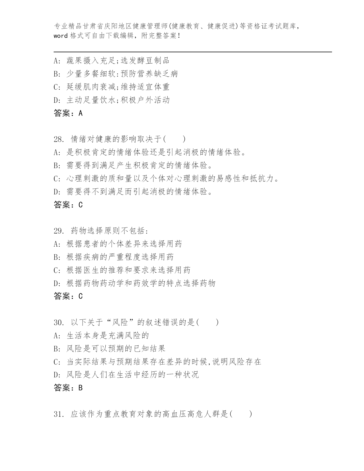 精品甘肃省庆阳地区健康管理师(健康教育、健康促进)等资格证考试附答案(典型题)