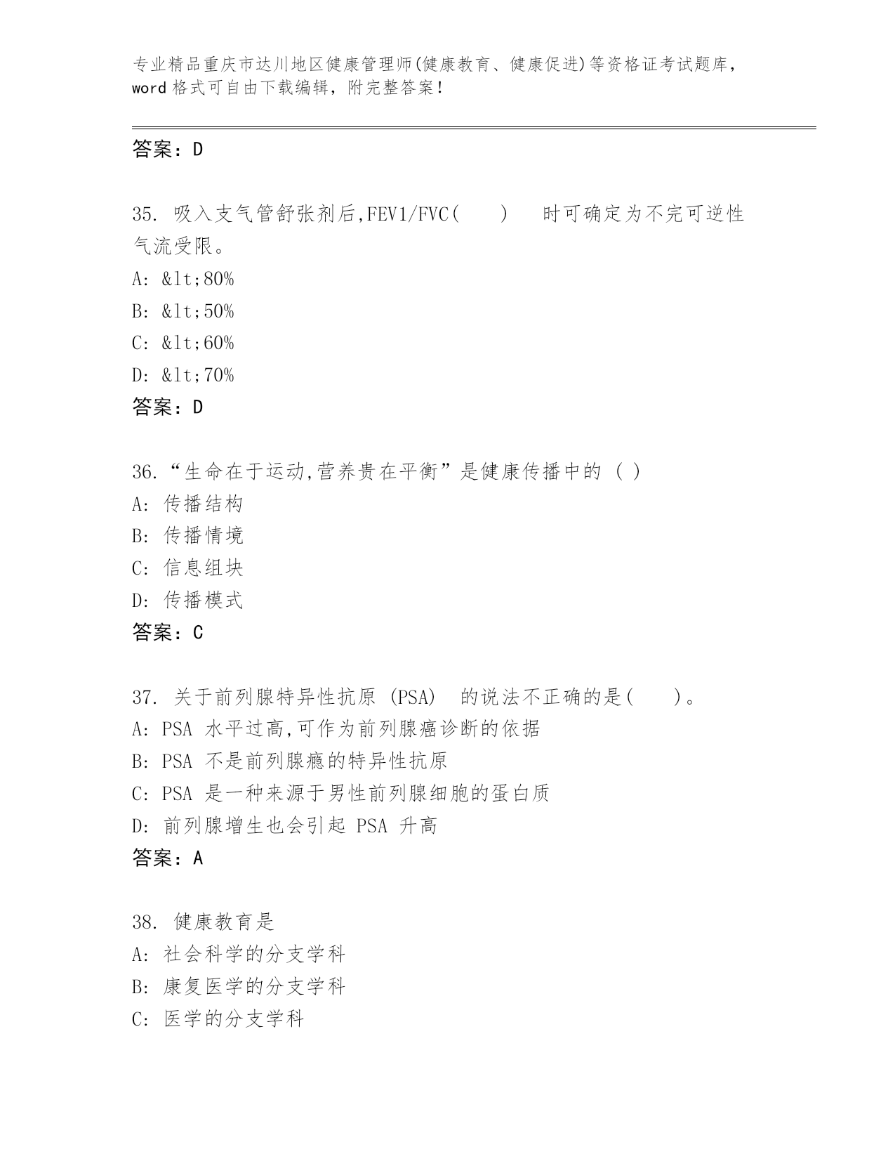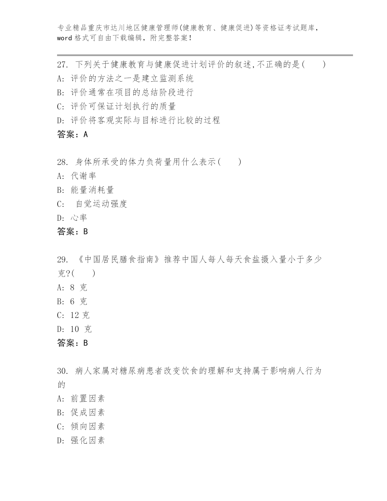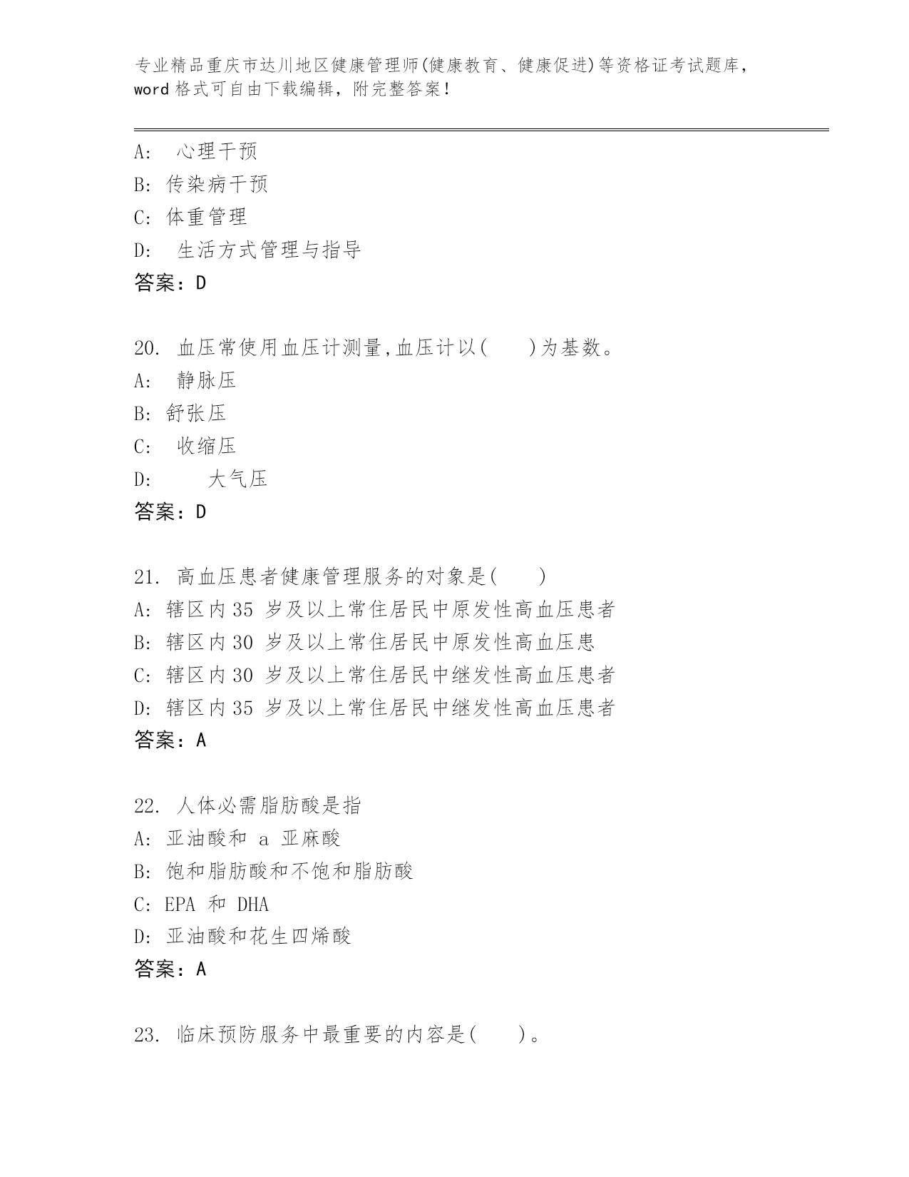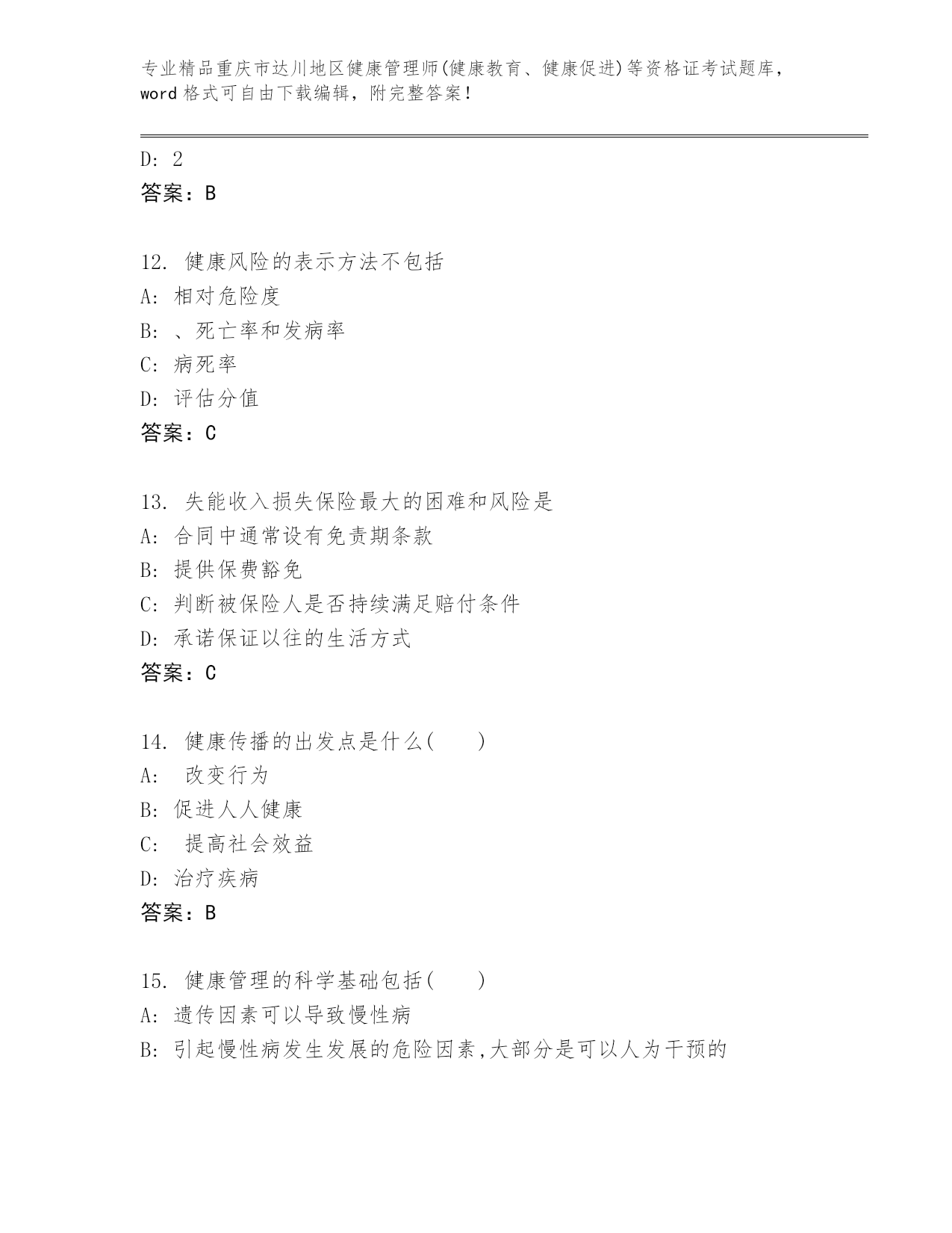 历年重庆市达川地区健康管理师(健康教育、健康促进)等资格证考试完整题库(培优A卷).docx