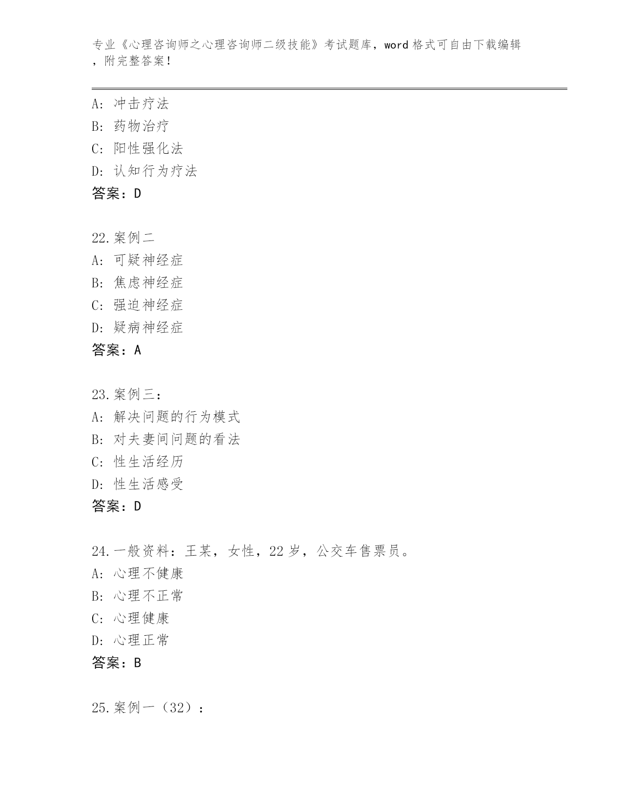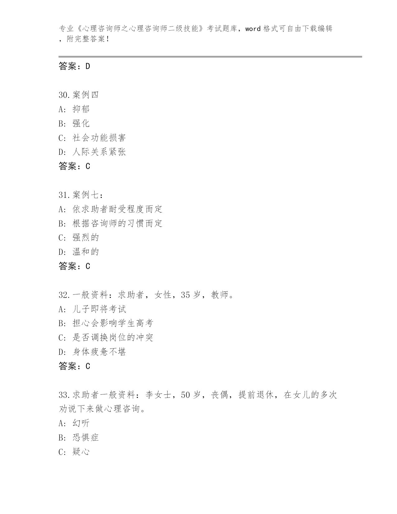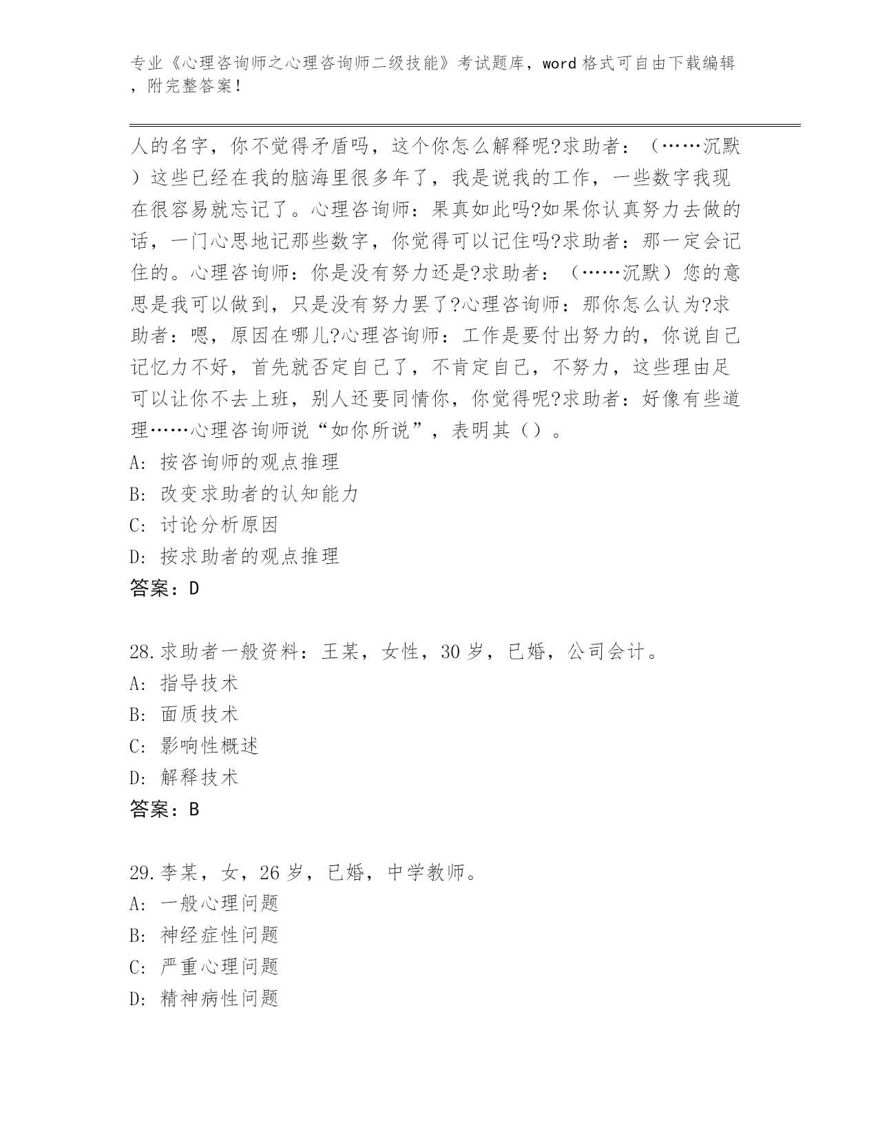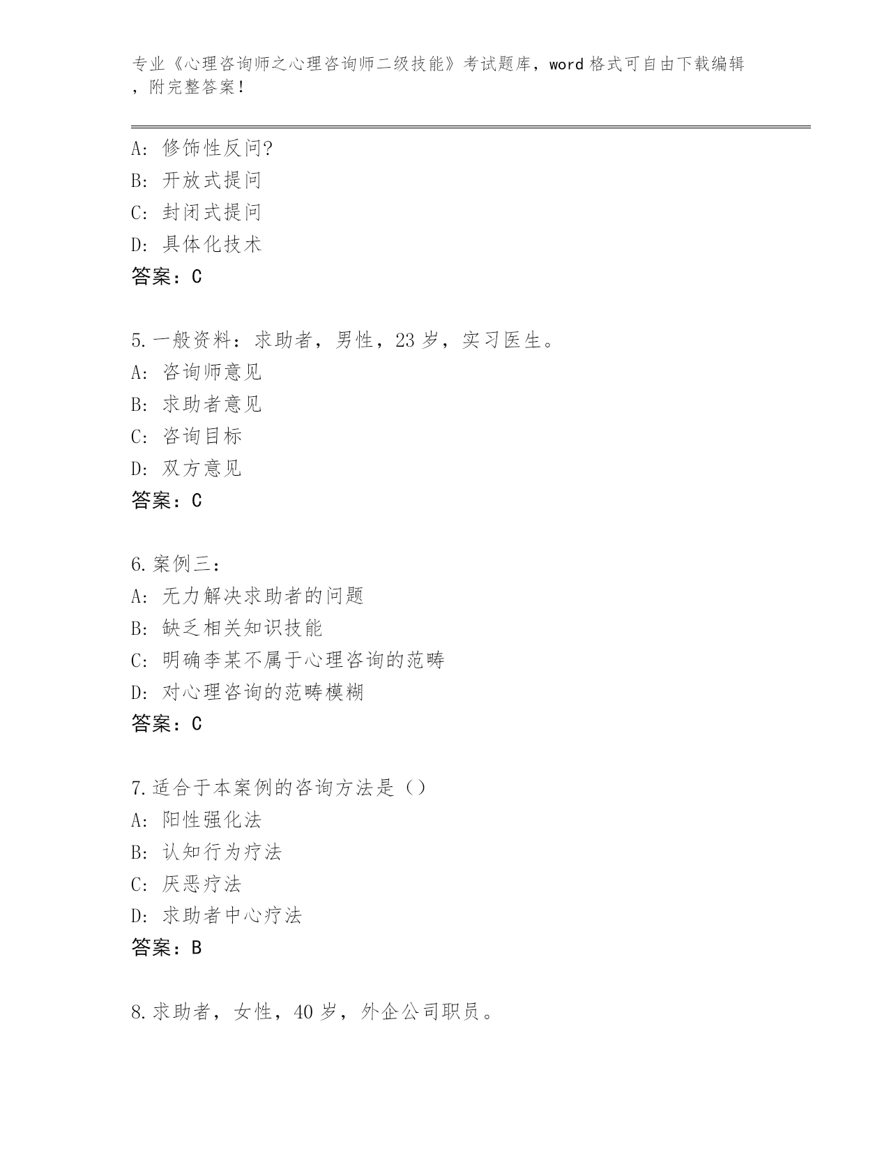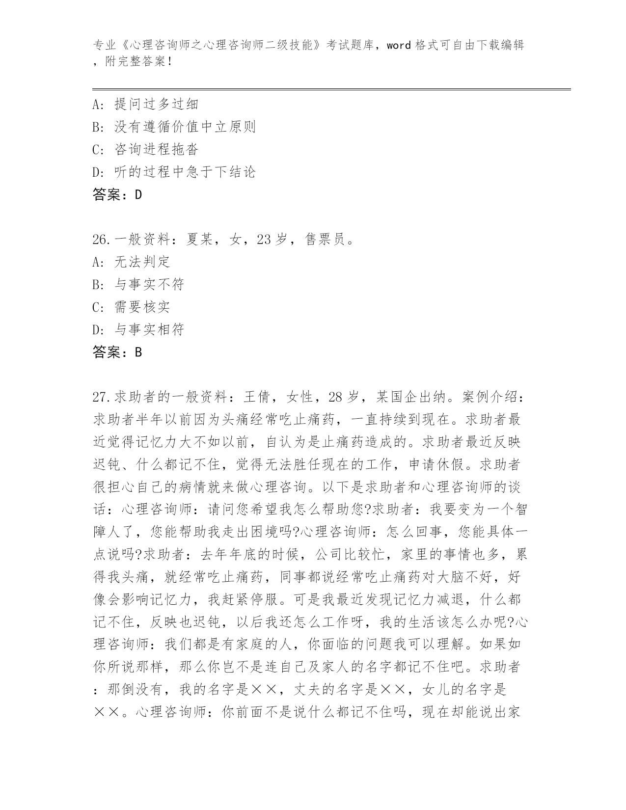 河南省完整版《心理咨询师之心理咨询师二级技能》资格考试大全含答案(名师推荐)