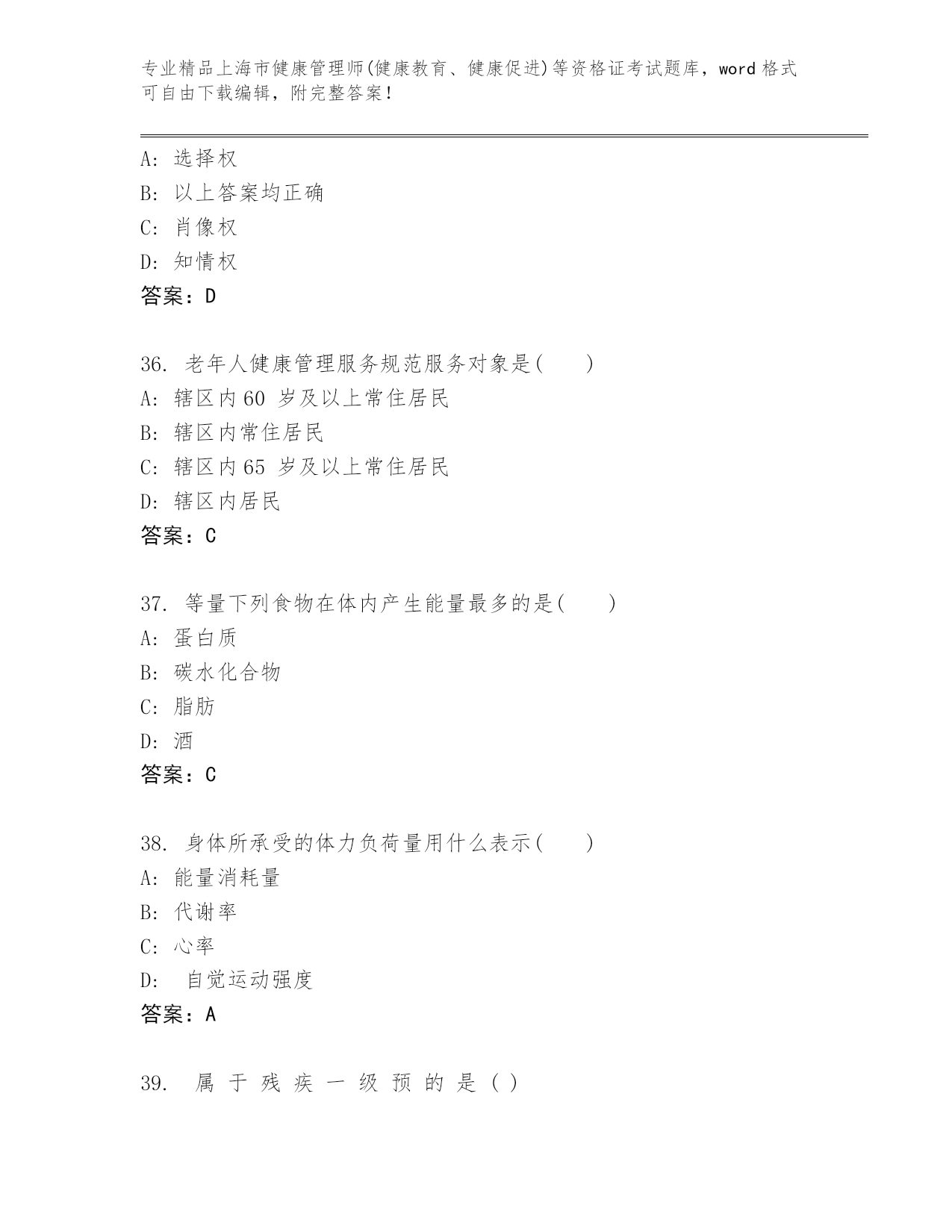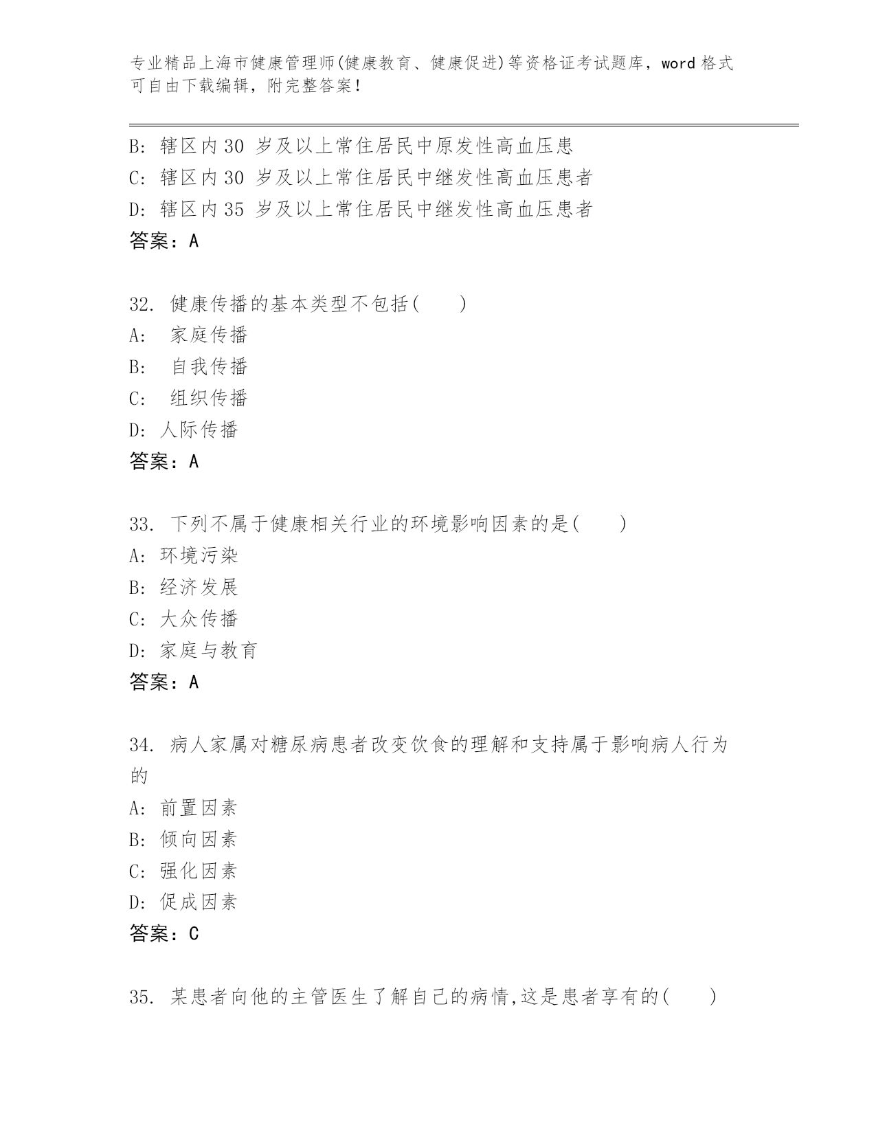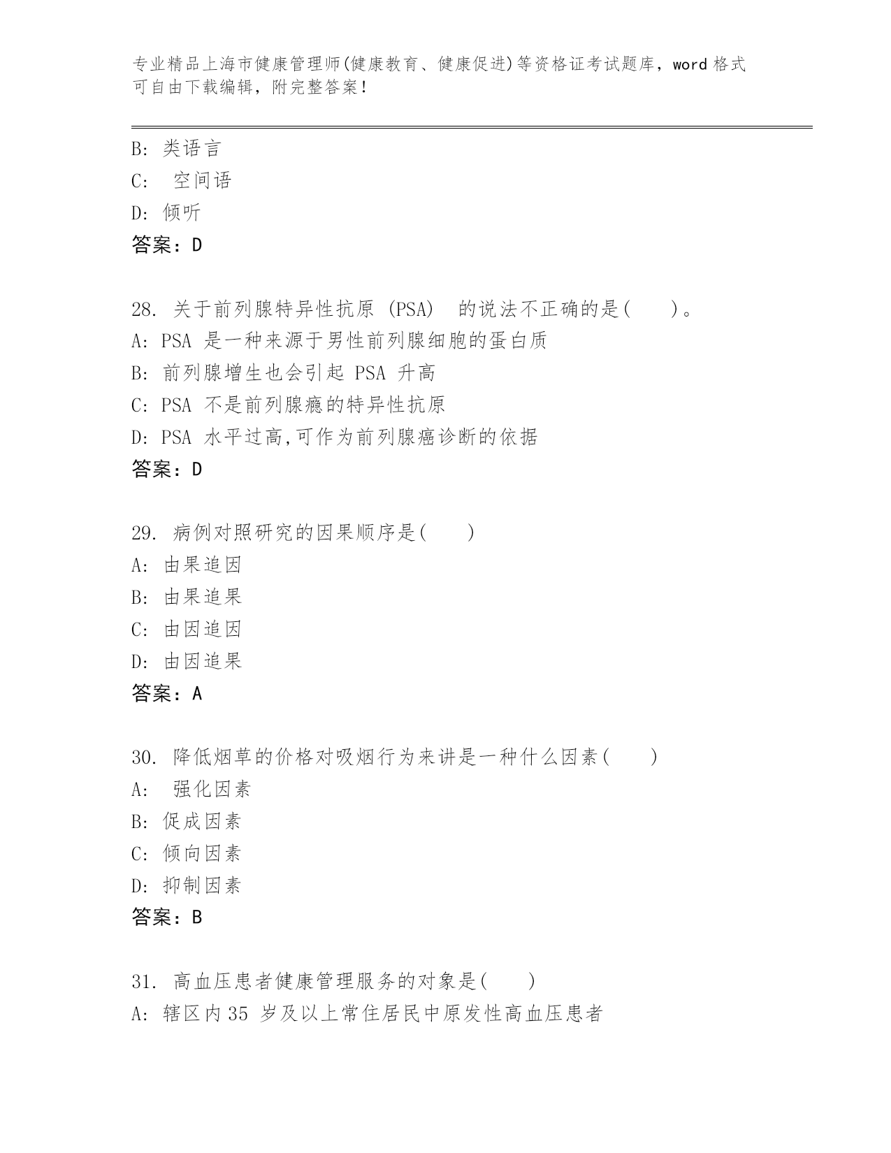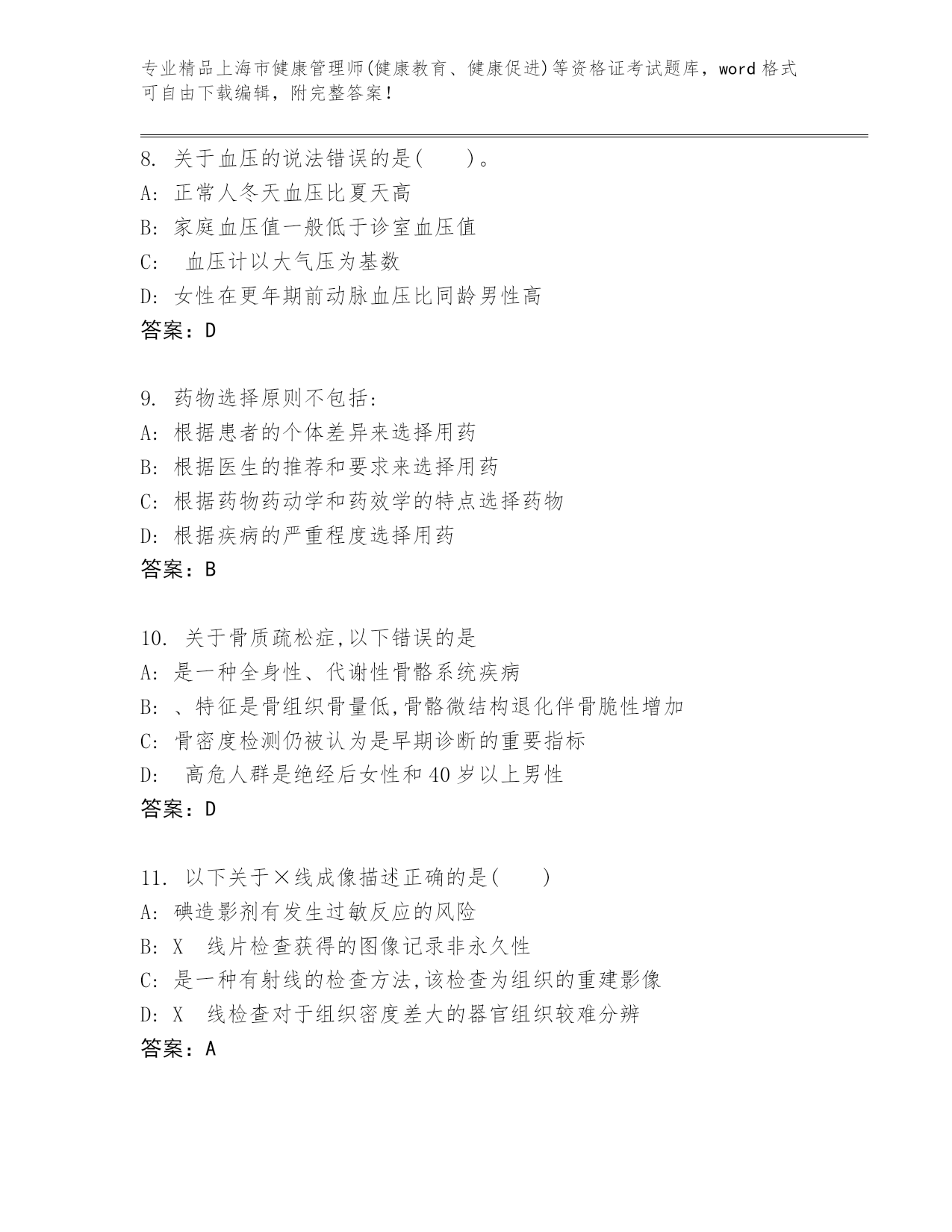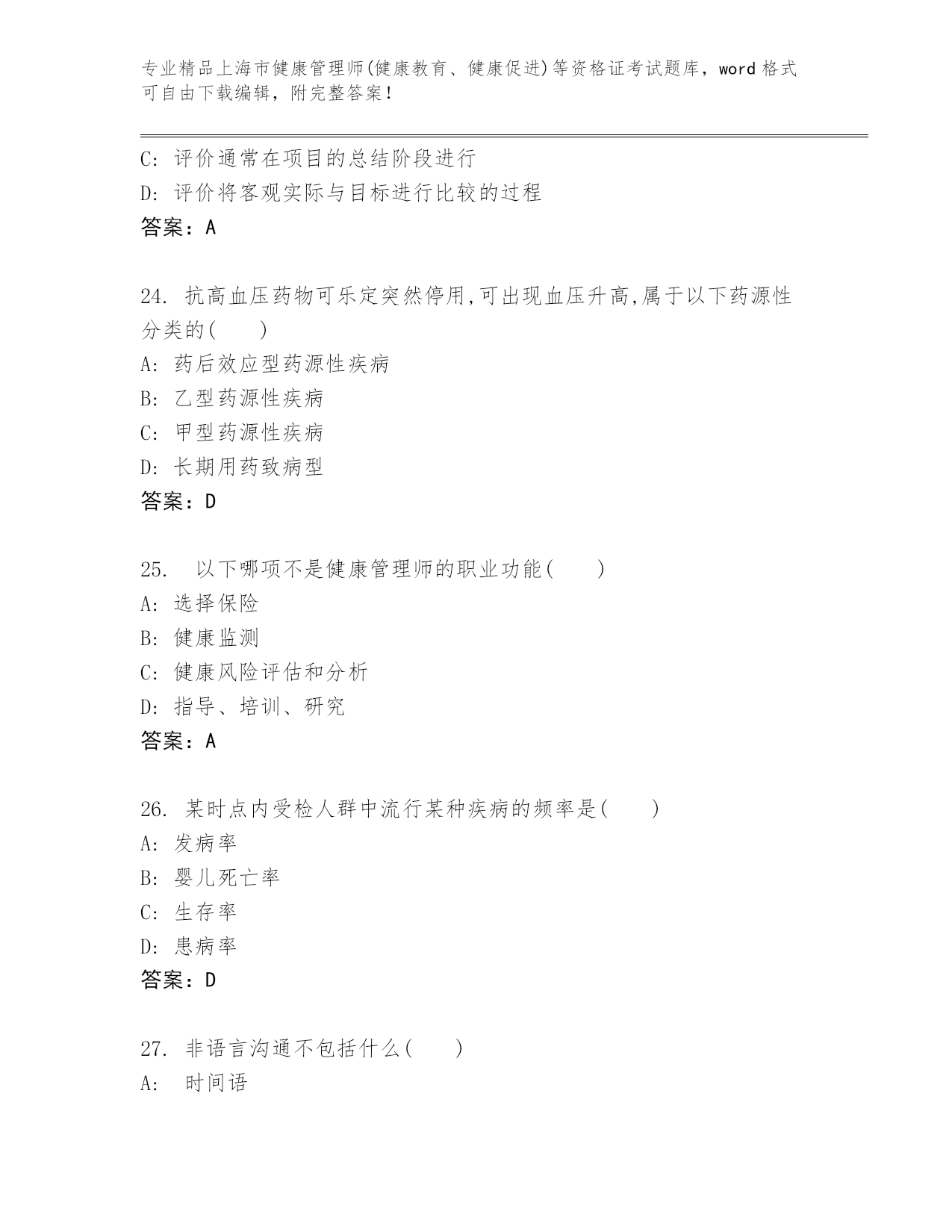 精心整理上海市健康管理师(健康教育、健康促进)等资格证考试精选题库【能力提升】
