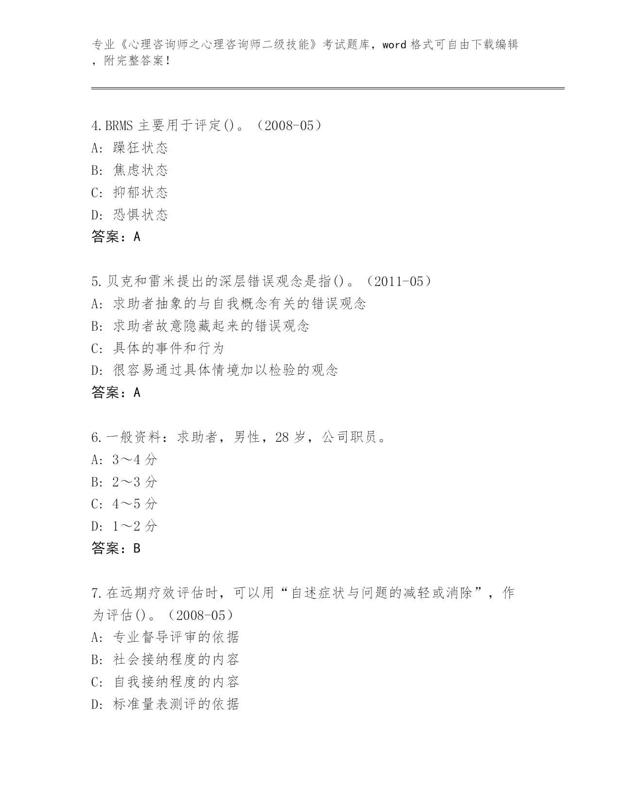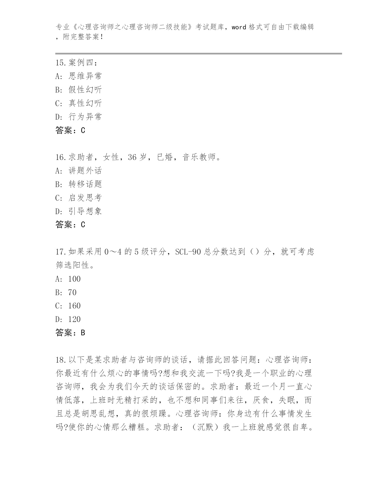 完整版湖南省《心理咨询师之心理咨询师二级技能》考试完整题库及参考答案(突破训练)