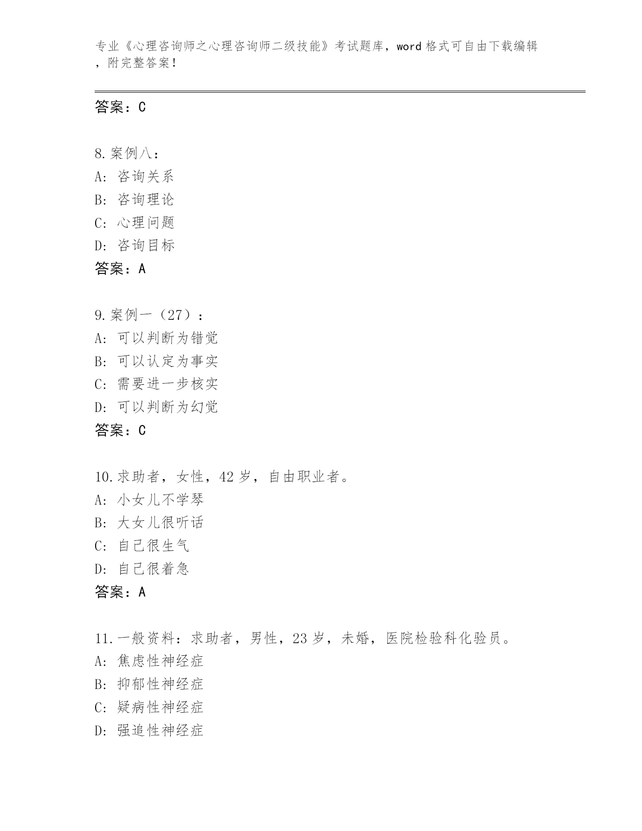 湖北省完整版《心理咨询师之心理咨询师二级技能》考试必考200题题库(突破训练)