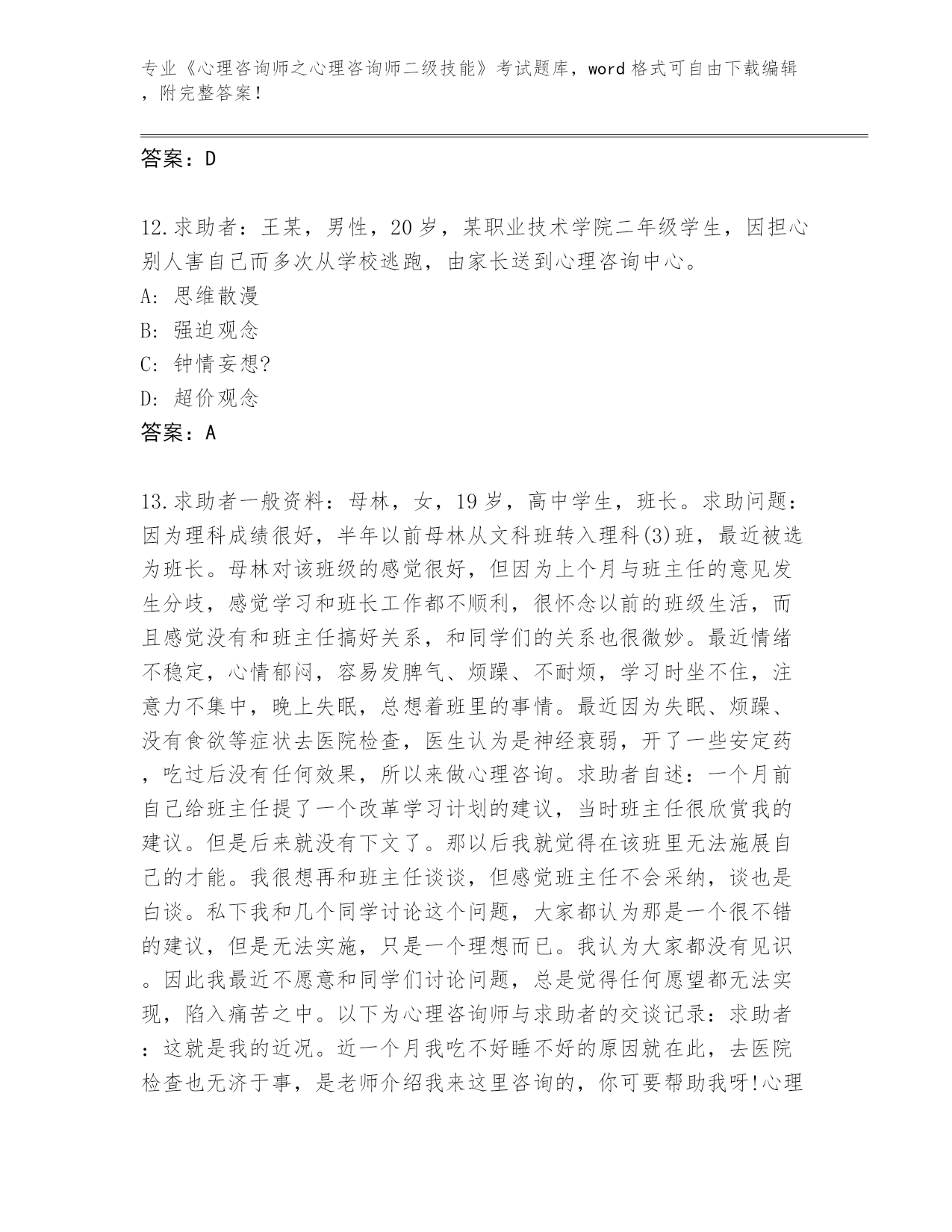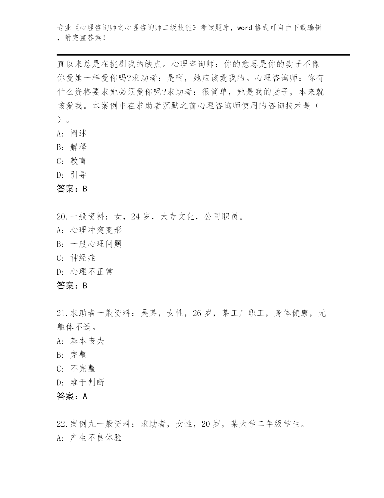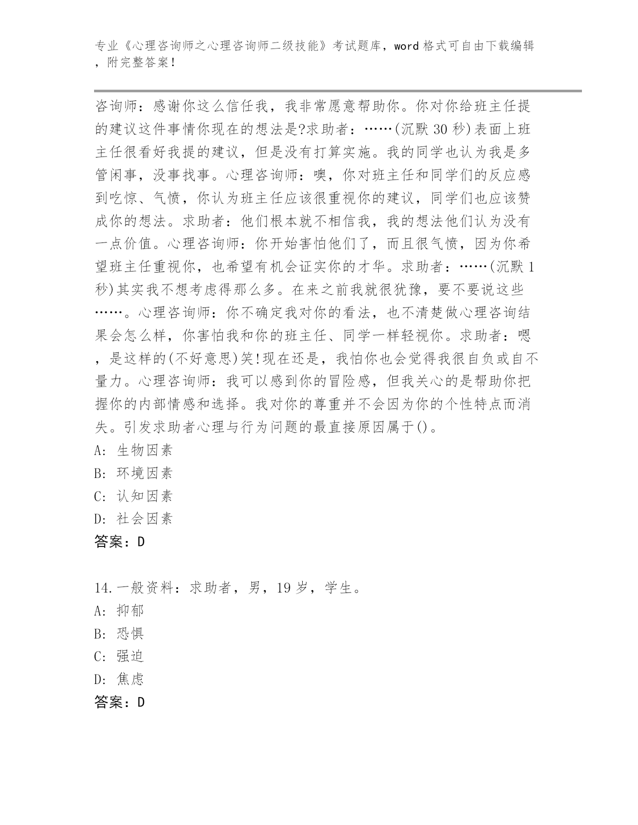 安徽省2024年《心理咨询师之心理咨询师二级技能》考试王牌题库及参考答案(突破训练)