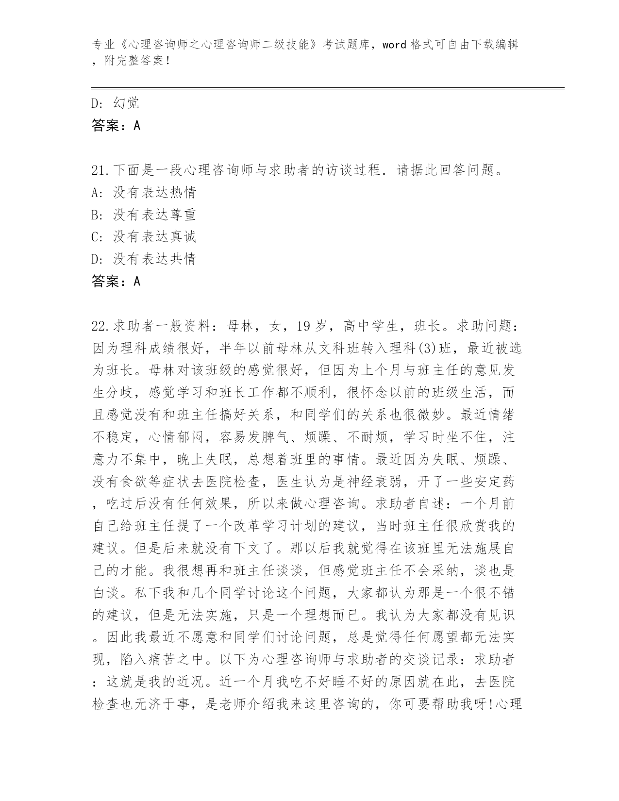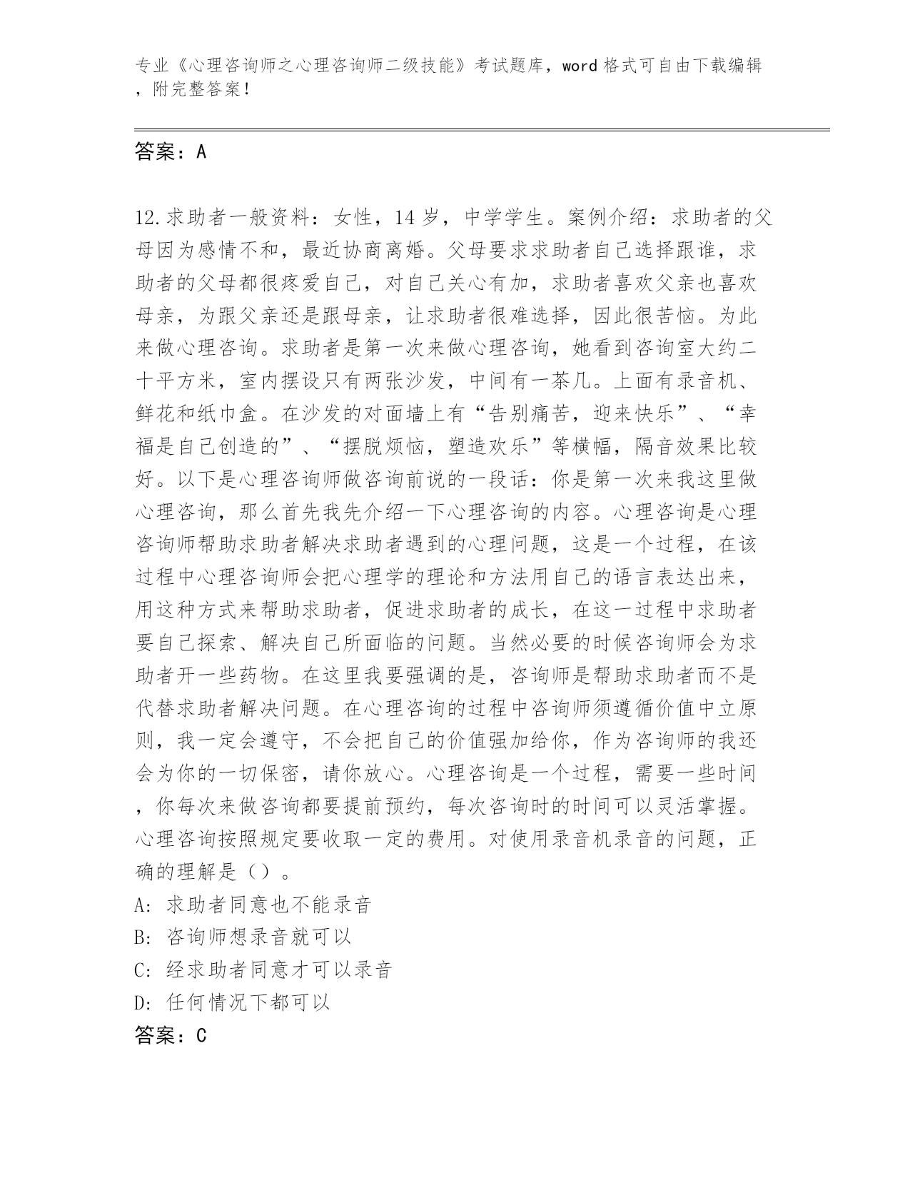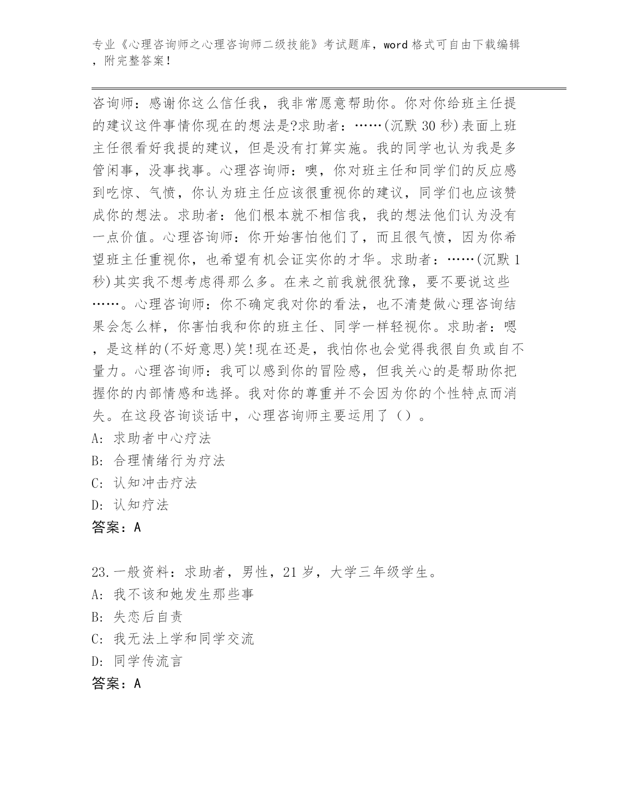 江苏省泉山区完整版《心理咨询师之心理咨询师二级技能》考试完整题库新版.docx