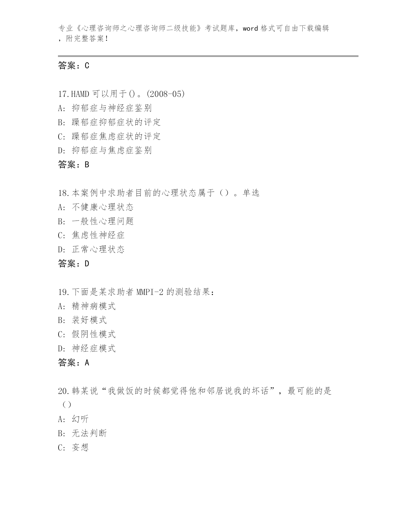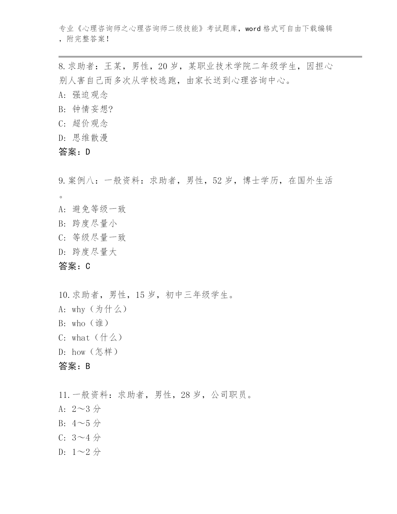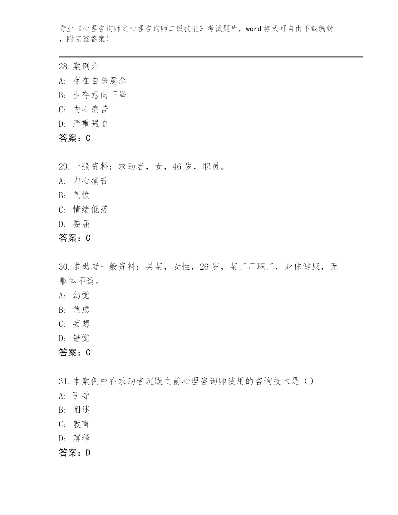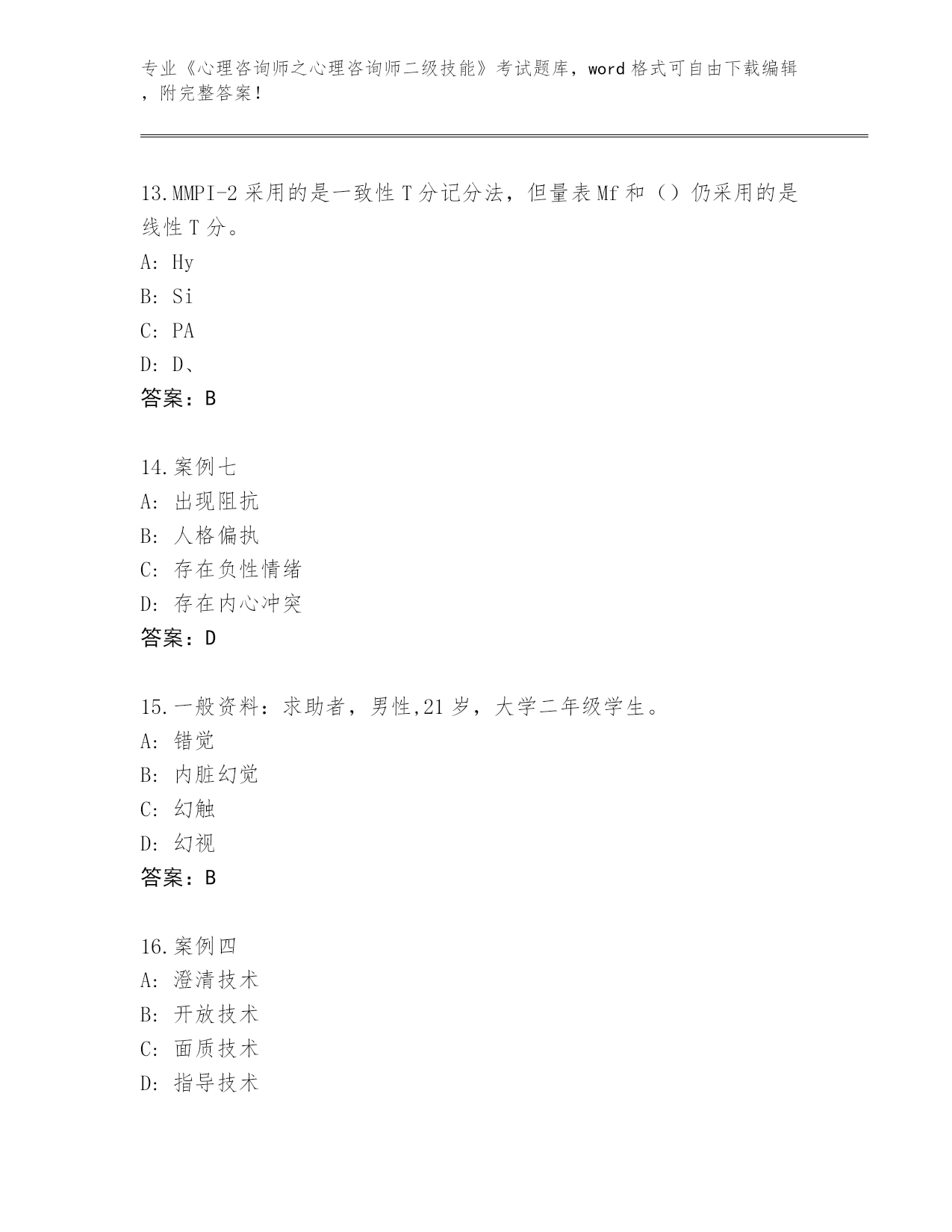 江苏省泉山区完整版《心理咨询师之心理咨询师二级技能》考试完整题库新版.docx